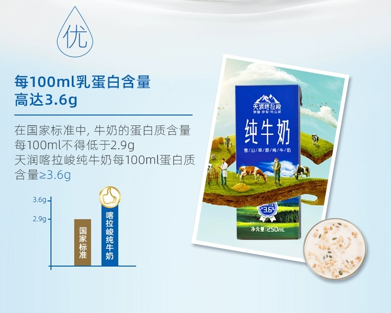 喀拉峻纯牛奶 250ml*12盒 新疆天润纯奶 营养早餐奶