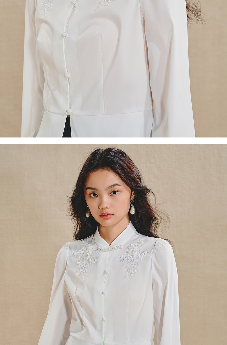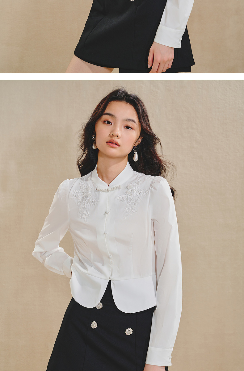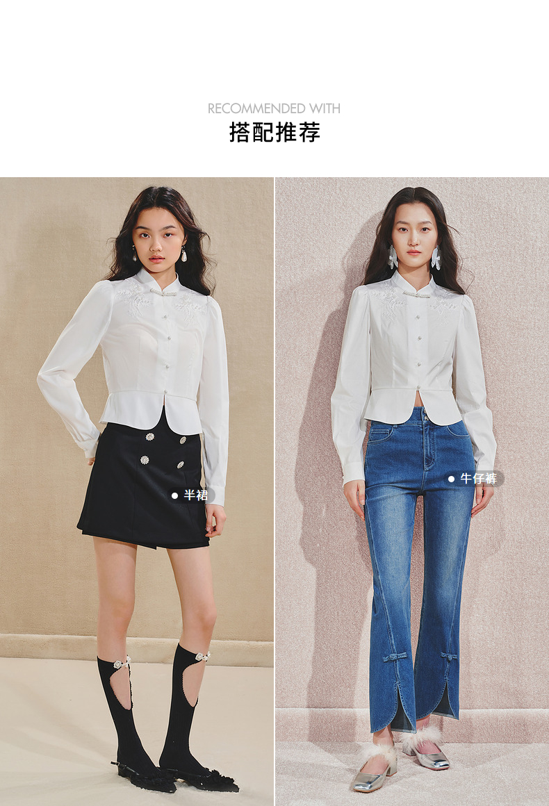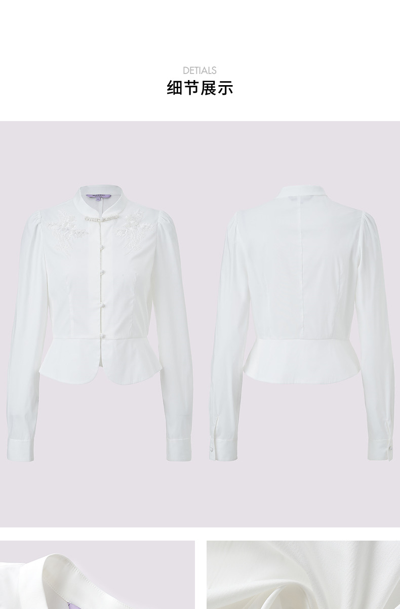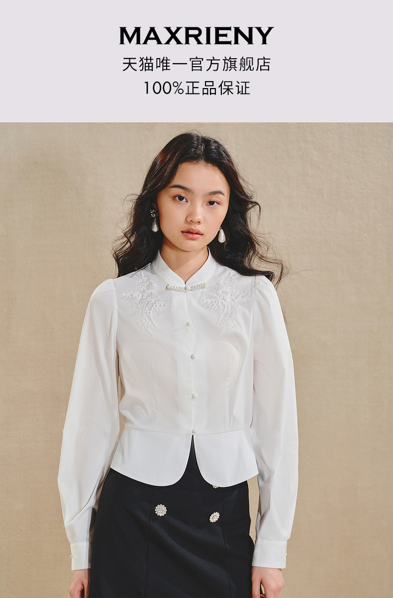 【商场同款】MAXRIENY清新中式衬衫女刺绣编织带上衣收腰开叉(货号:MS85TP515)