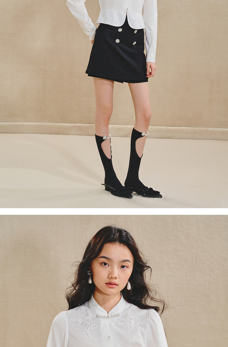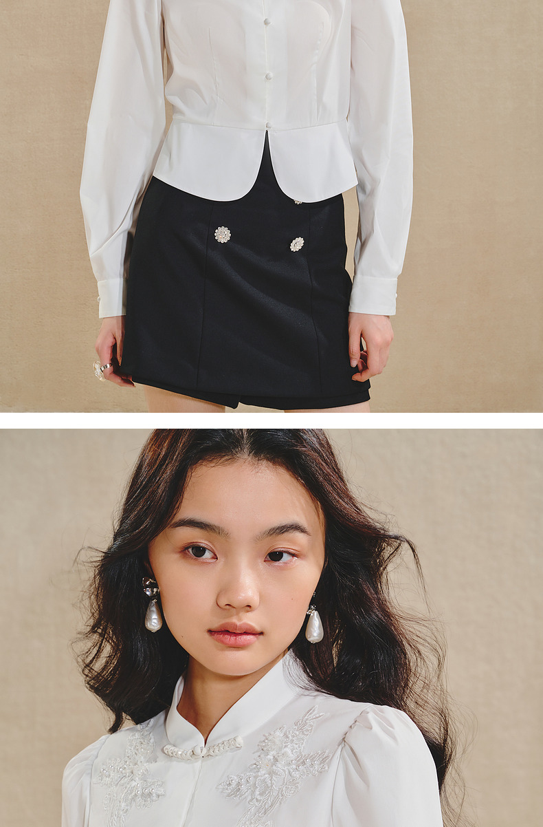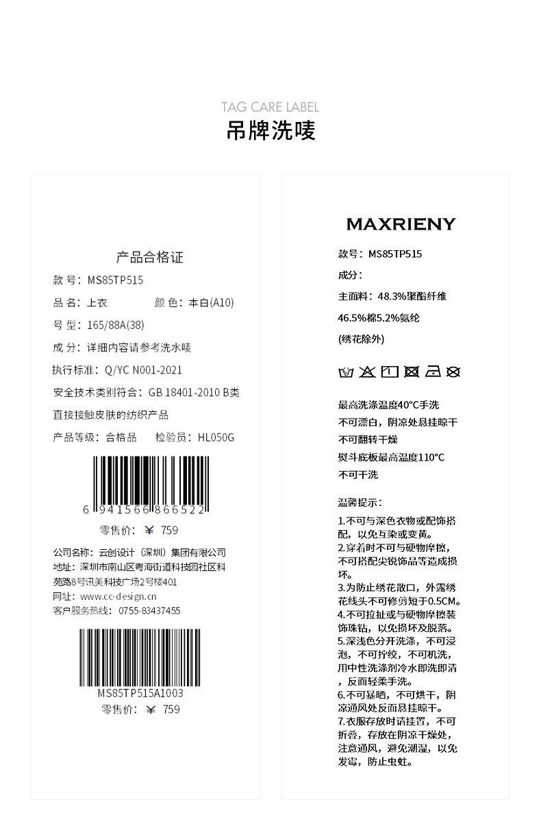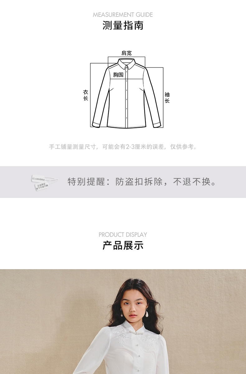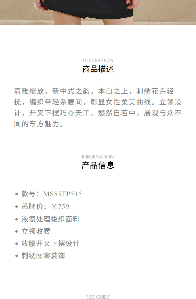 【商场同款】MAXRIENY清新中式衬衫女刺绣编织带上衣收腰开叉(货号:MS85TP515)