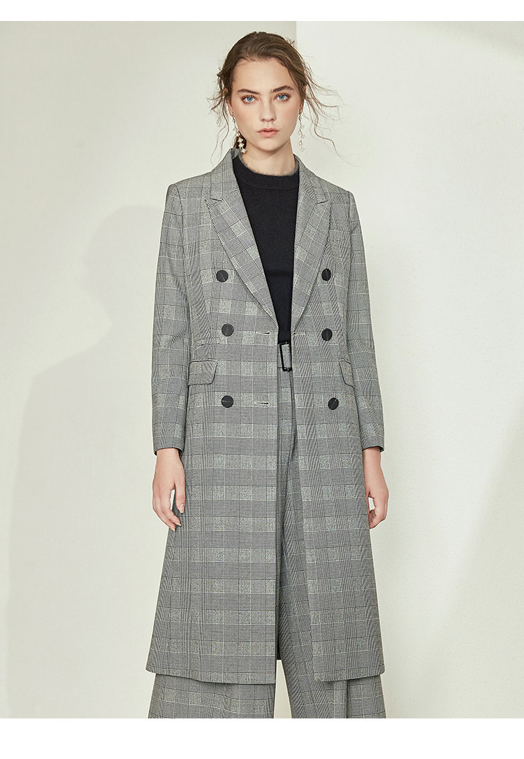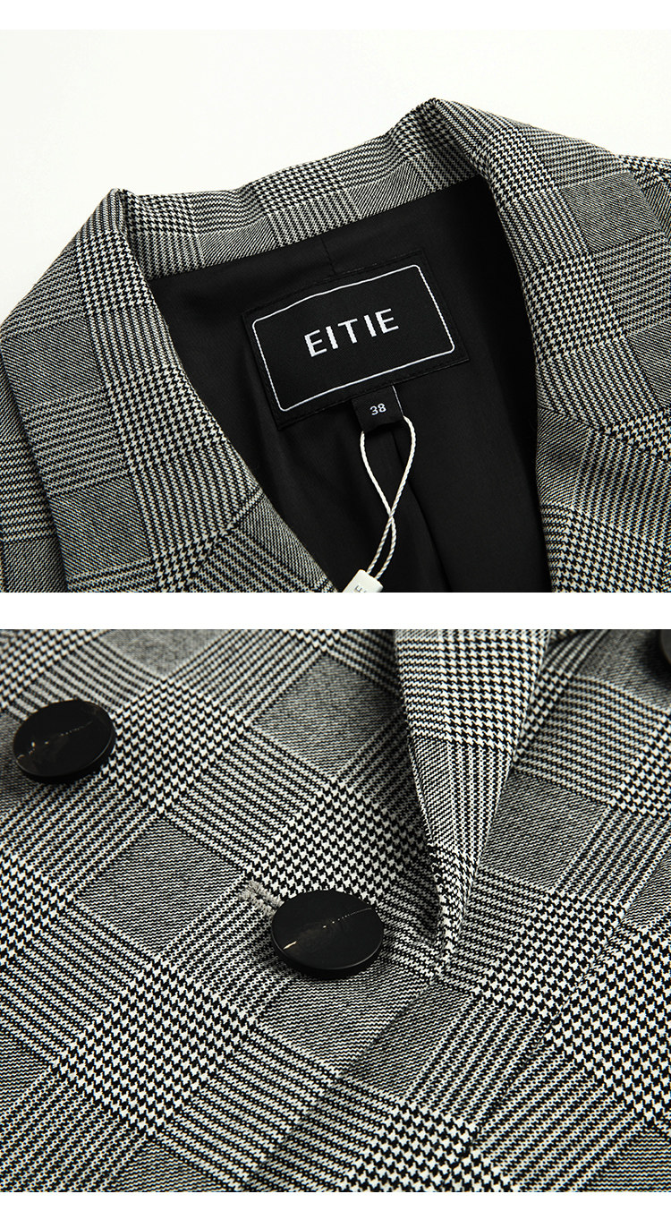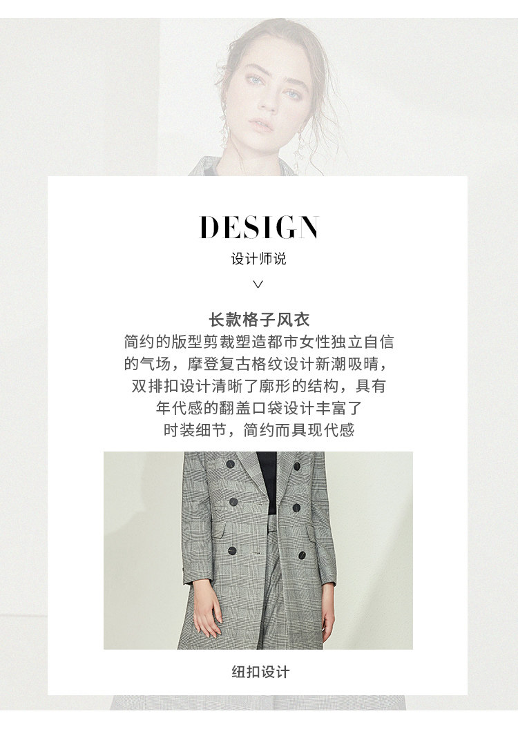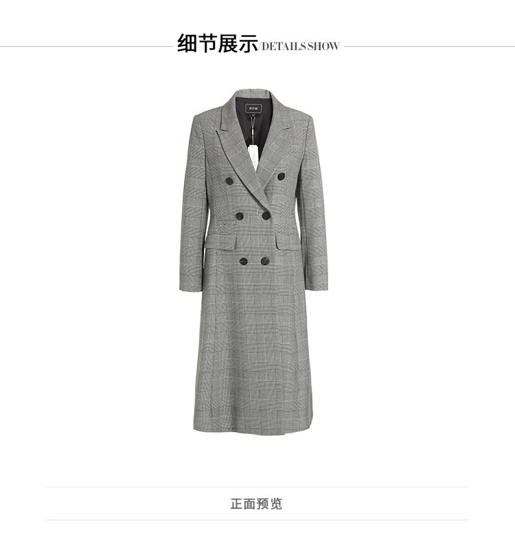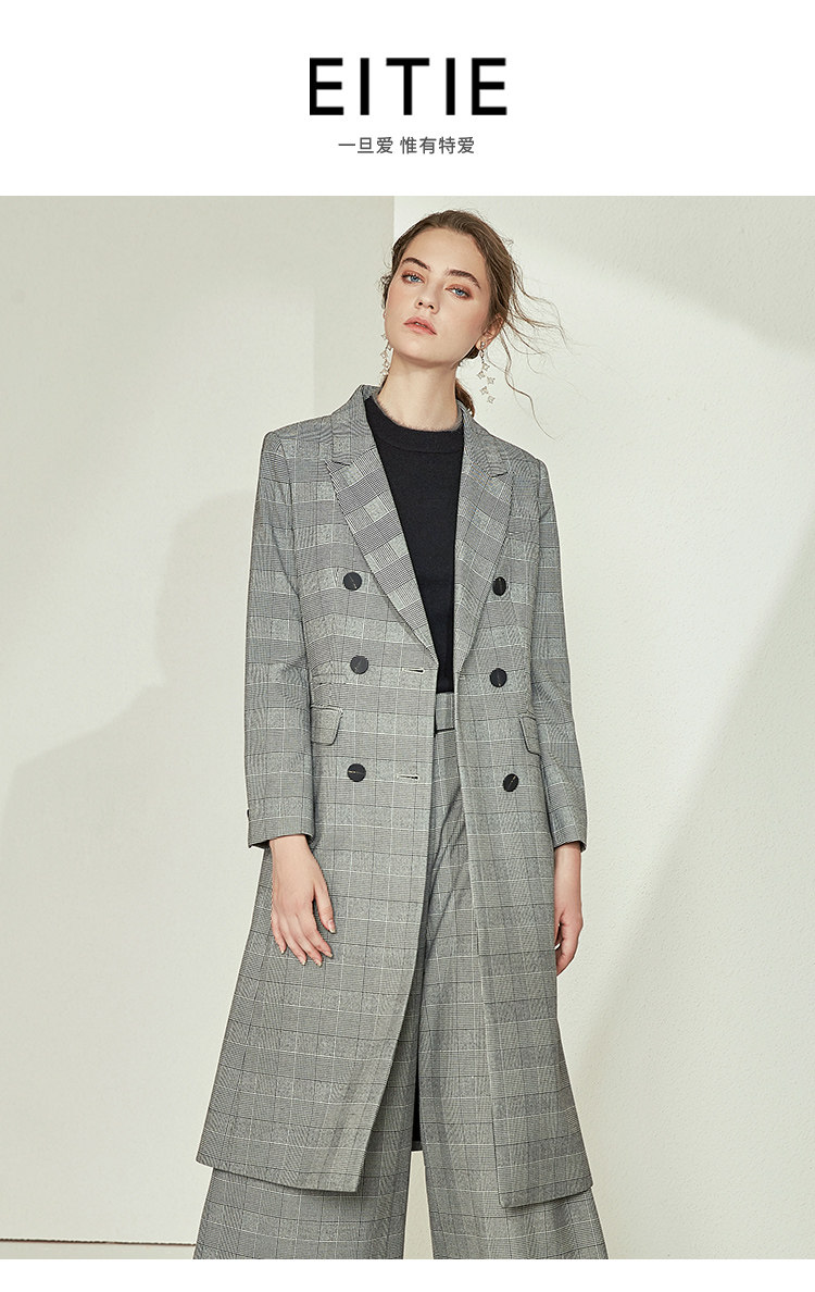 EITIE爱特爱女装春秋季新款时尚翻驳领复古英伦格纹长款风衣5804508