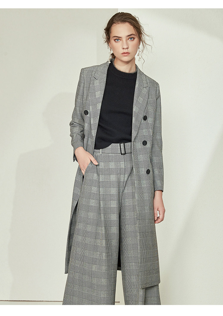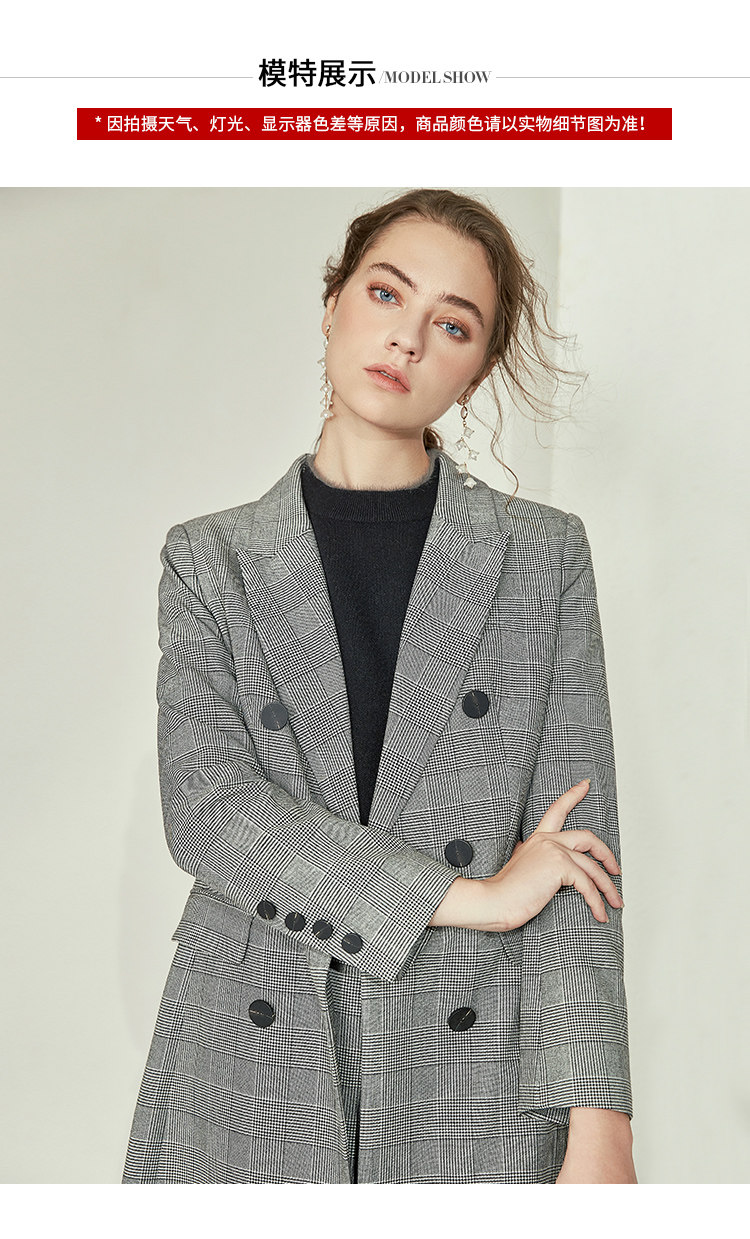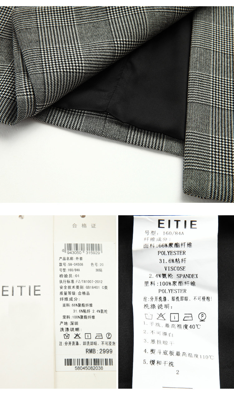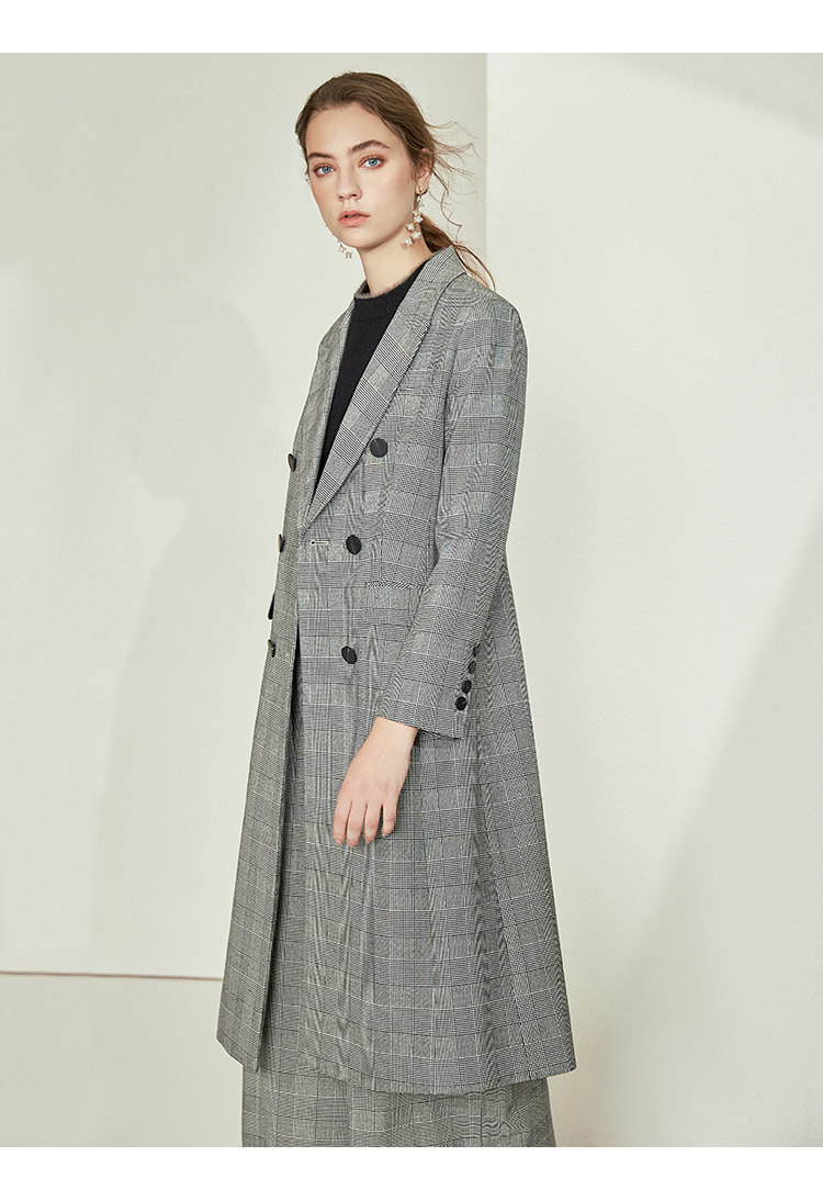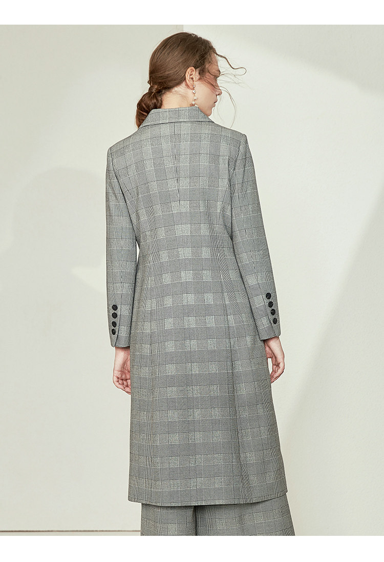 EITIE爱特爱女装春秋季新款时尚翻驳领复古英伦格纹长款风衣5804508