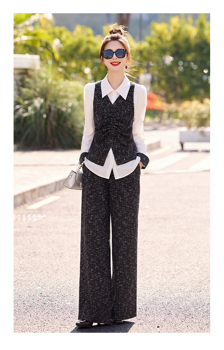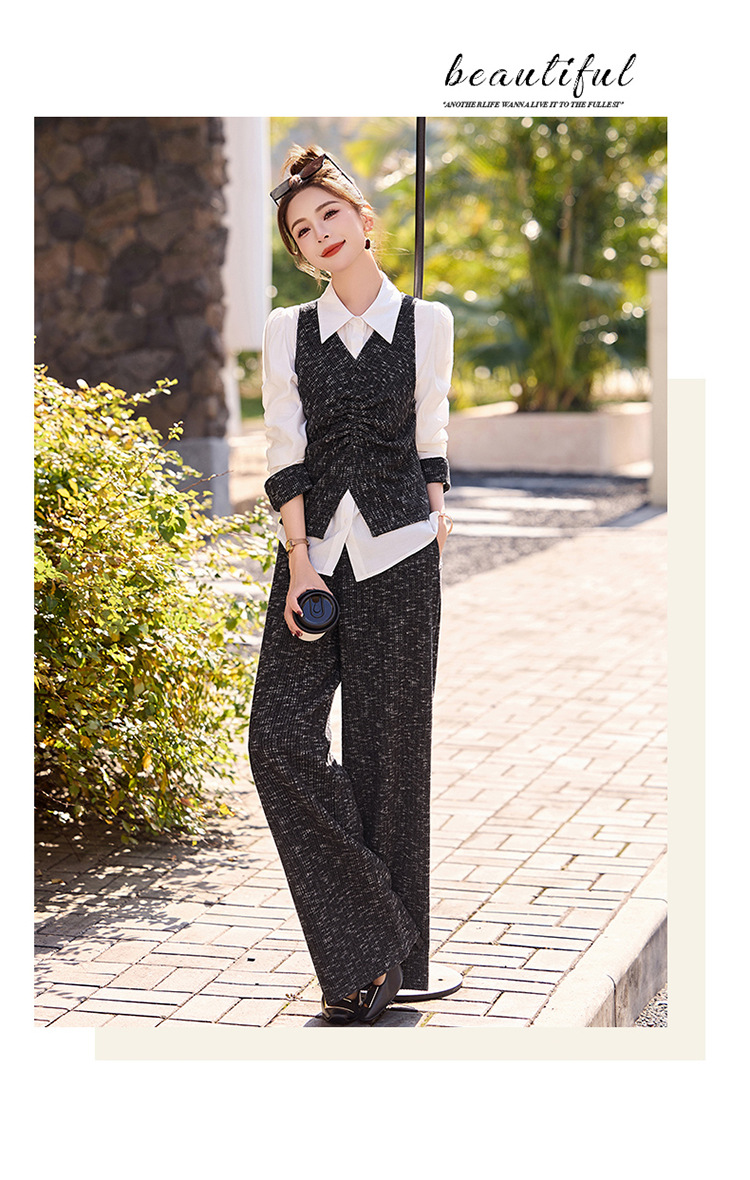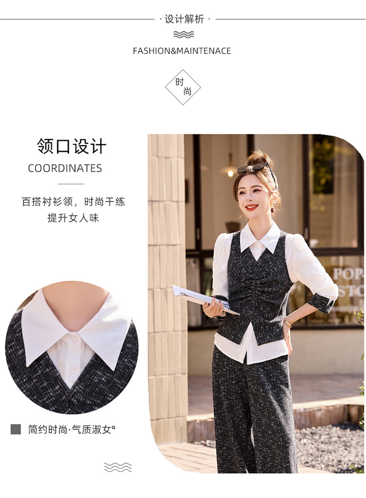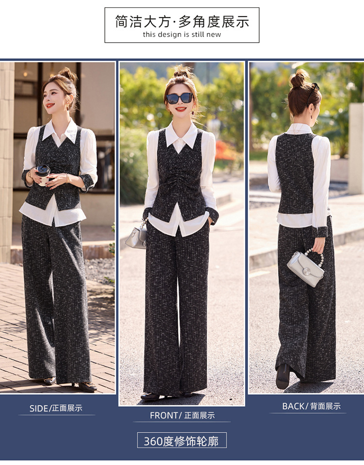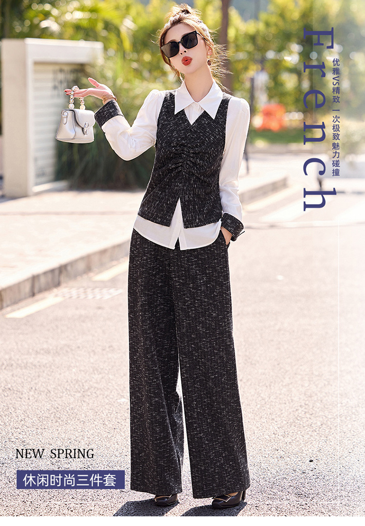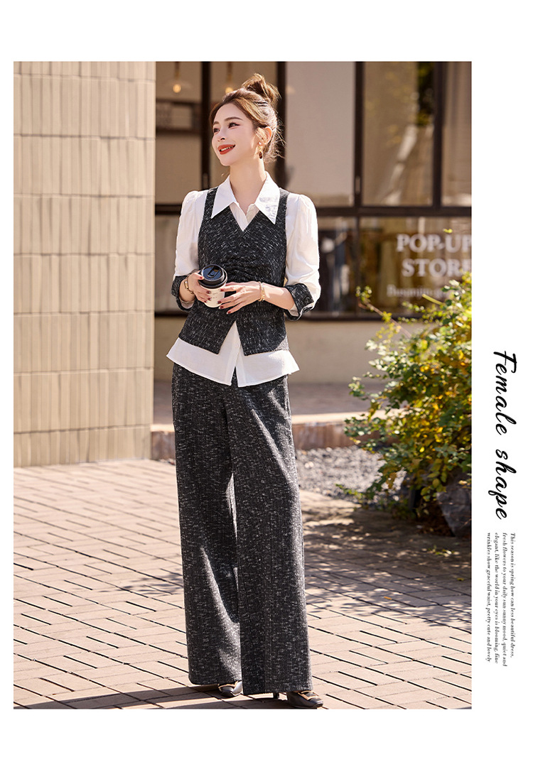 2025新款秋装简约时尚气质淑女百搭衬衫领时尚休闲三件套SNX3086