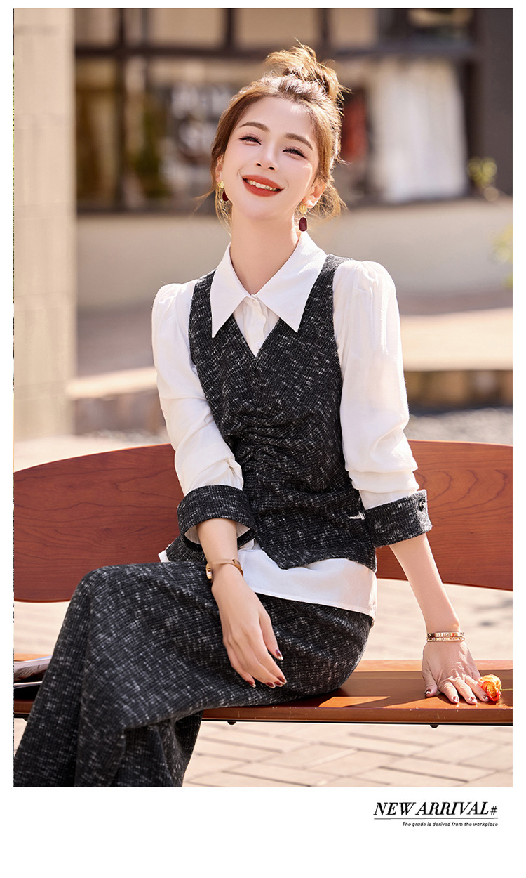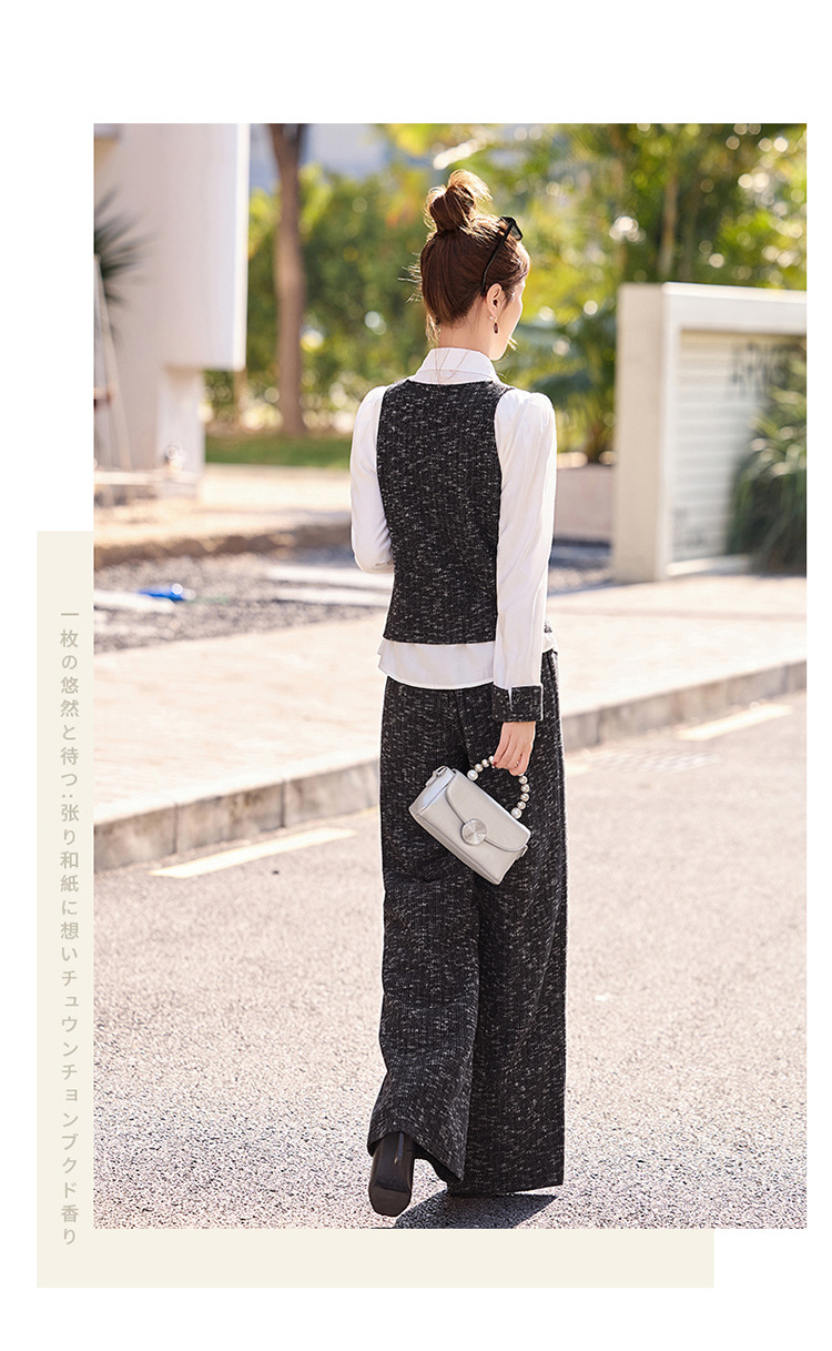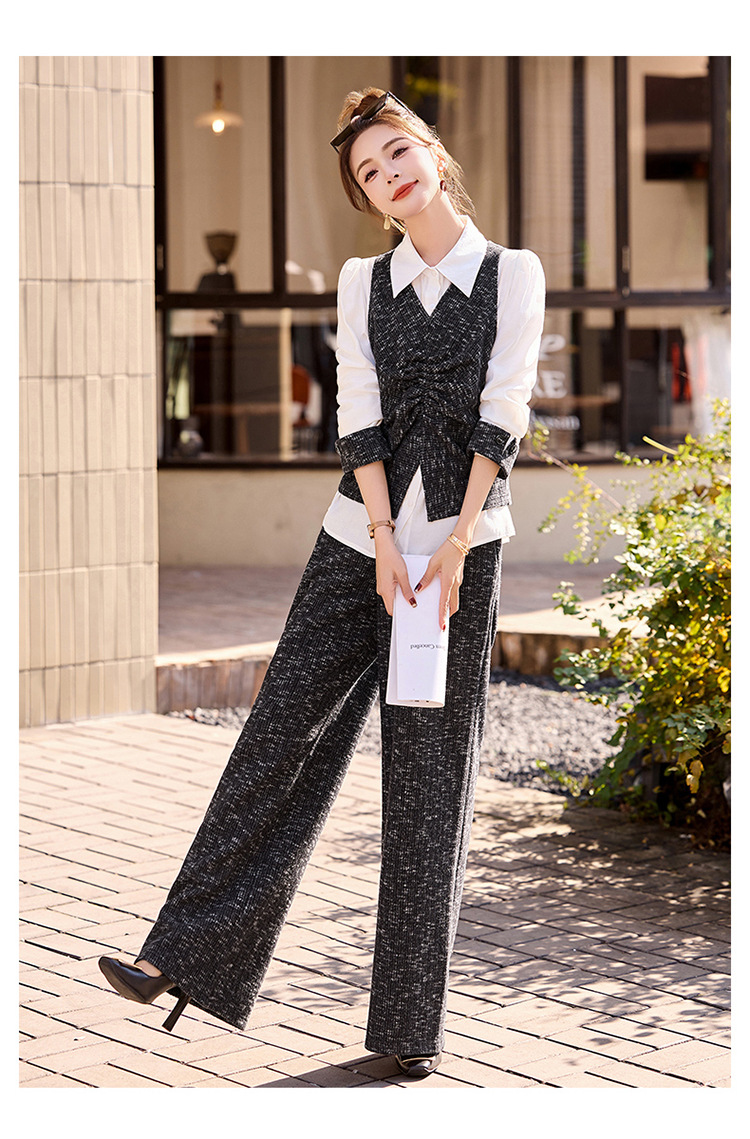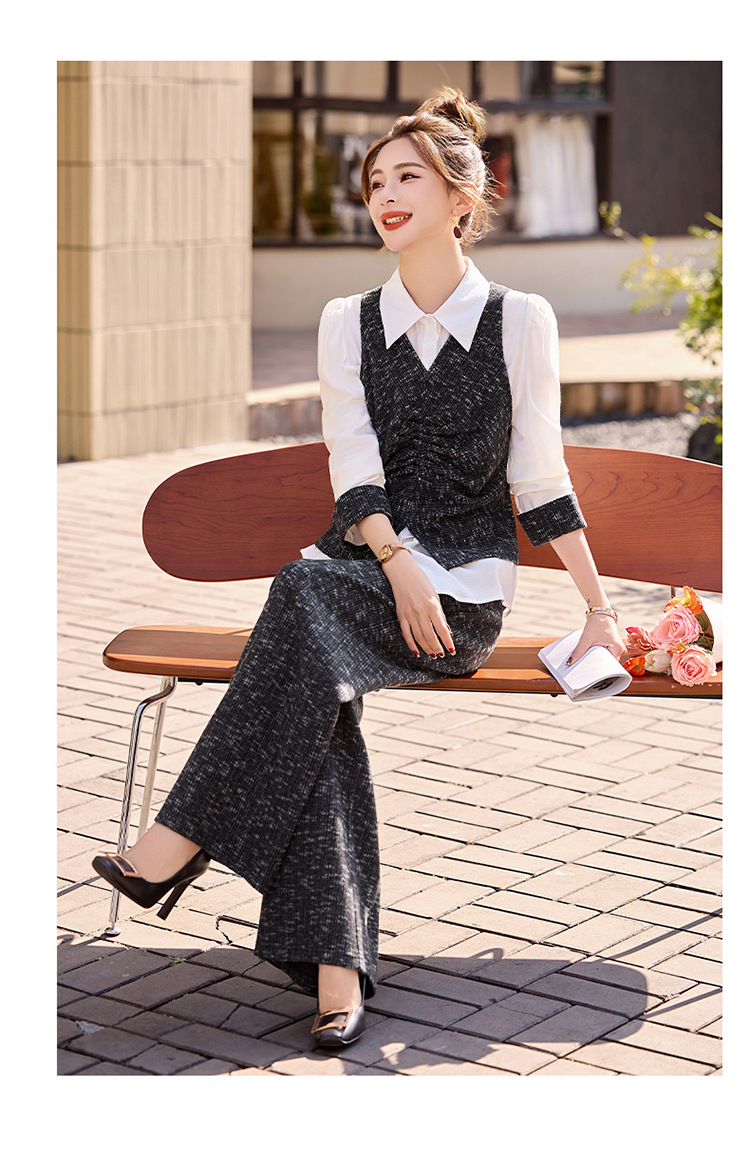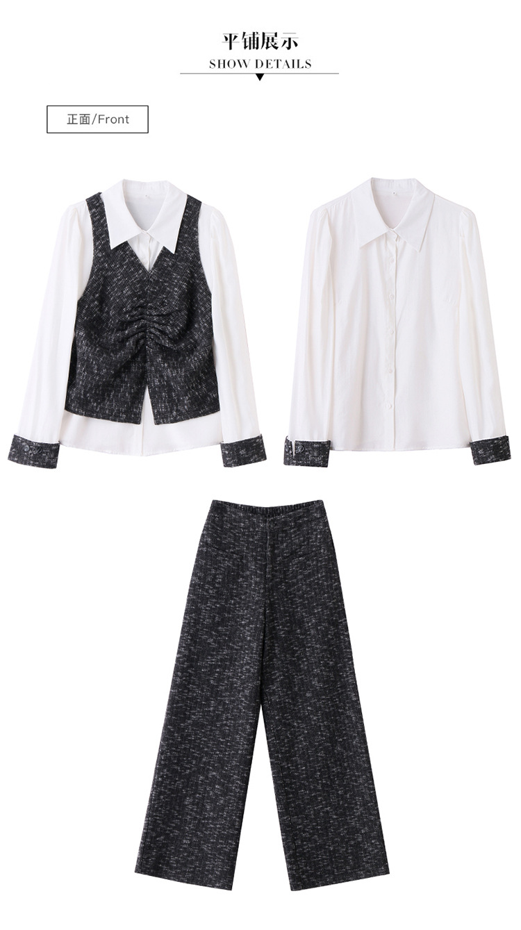 2025新款秋装简约时尚气质淑女百搭衬衫领时尚休闲三件套SNX3086