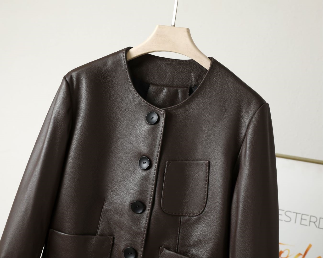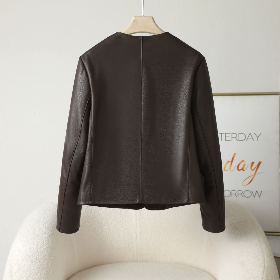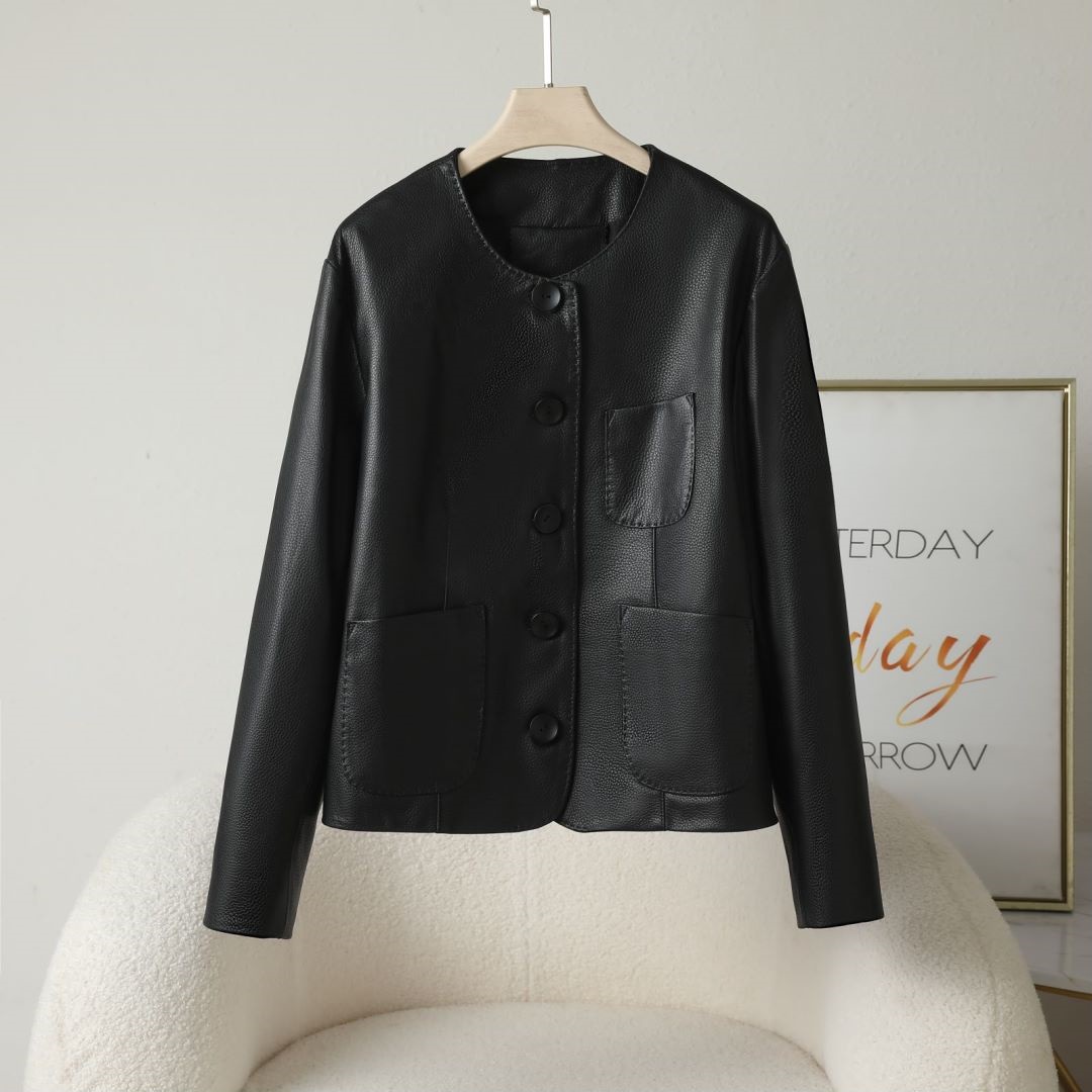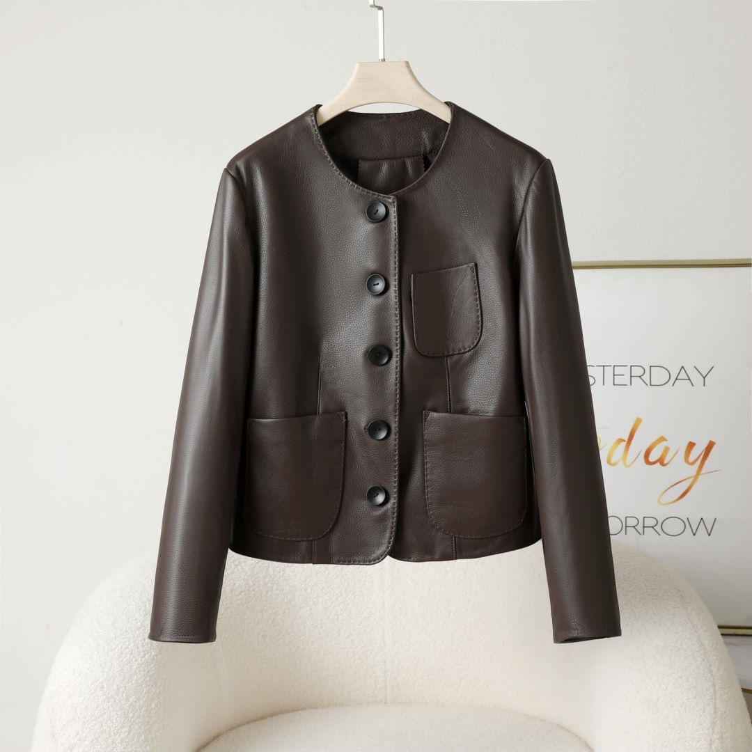 丁摩 海宁休闲真皮皮衣女短夹克山羊皮圆领外套x852
