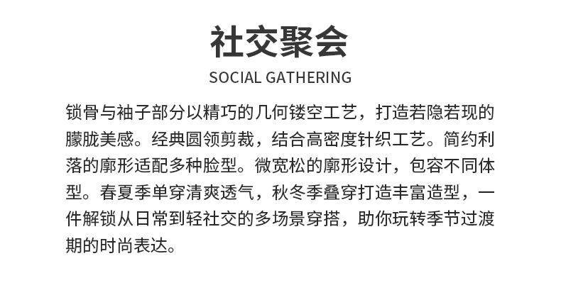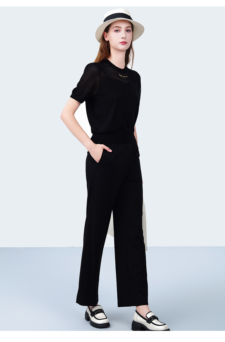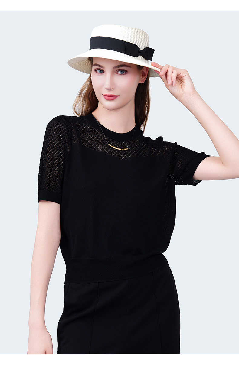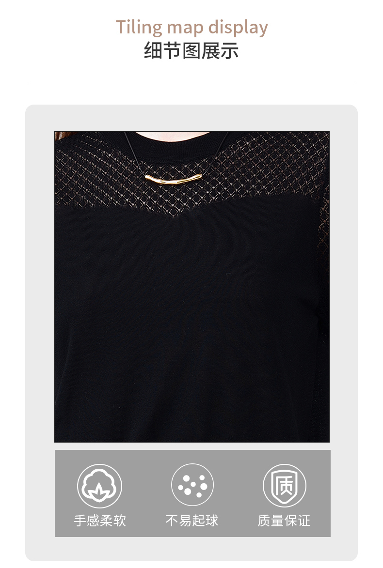乔万尼时尚新品百搭简约拼接镂空圆领上衣EZ2M119