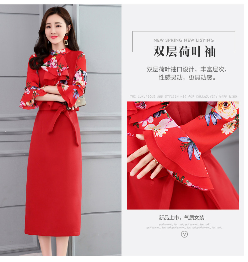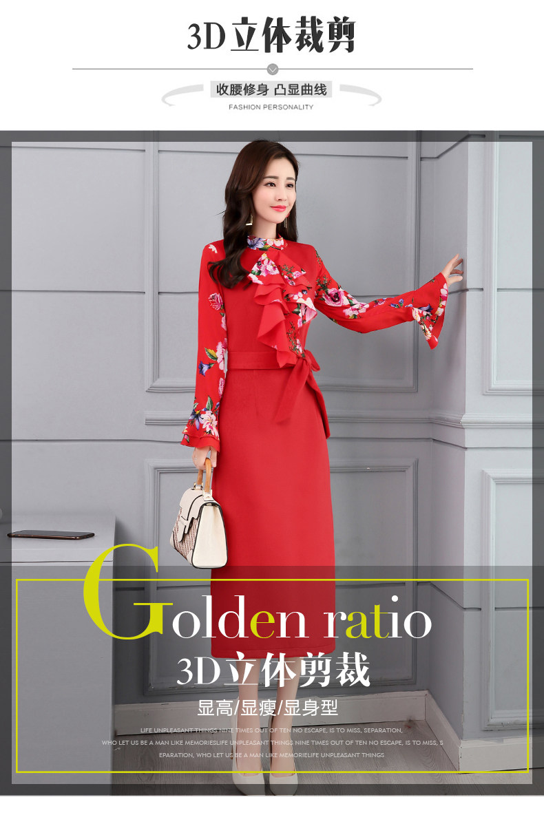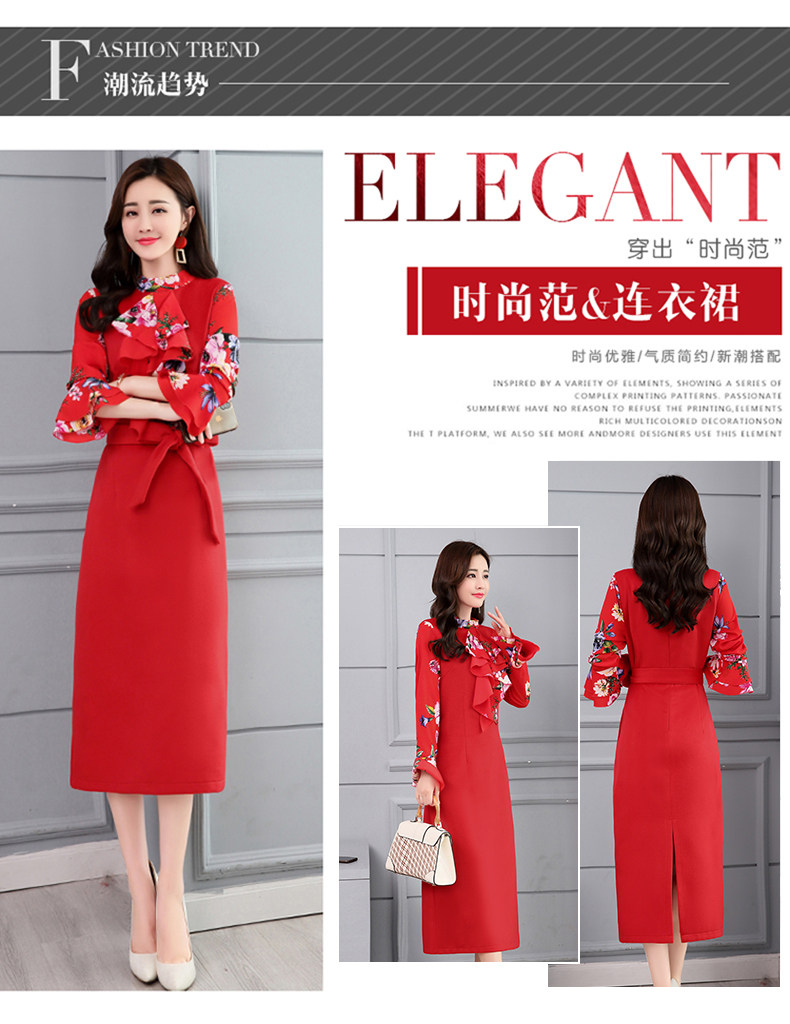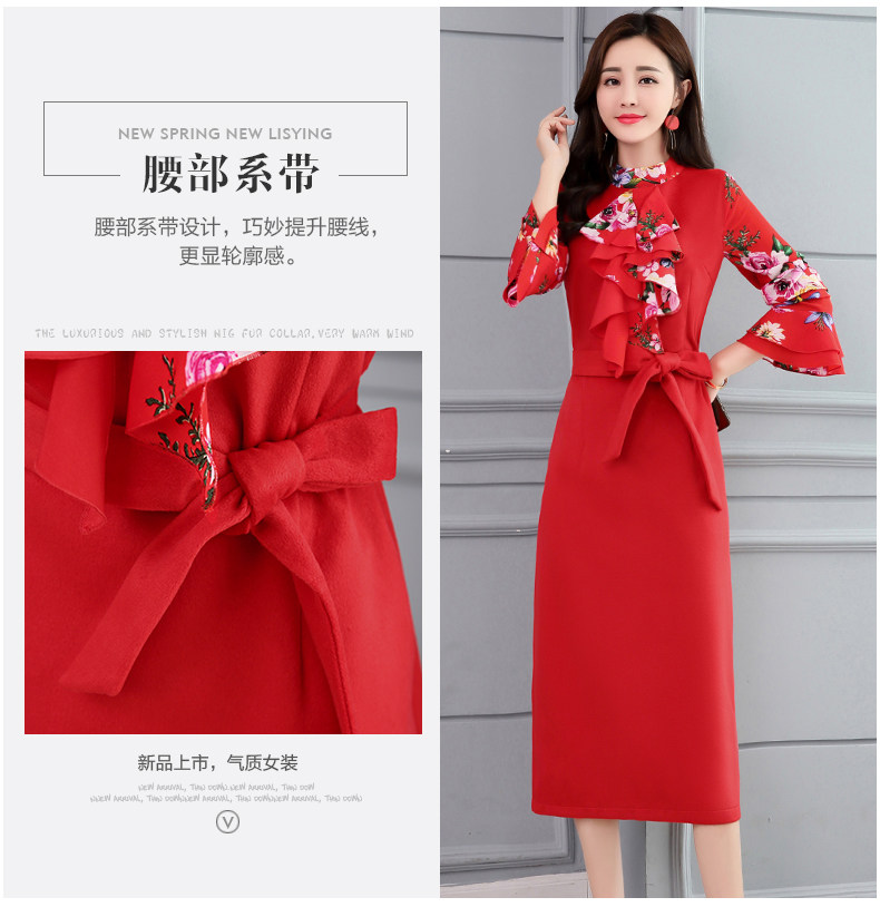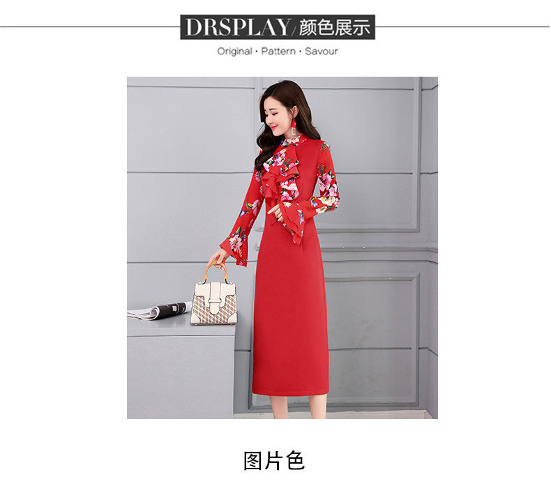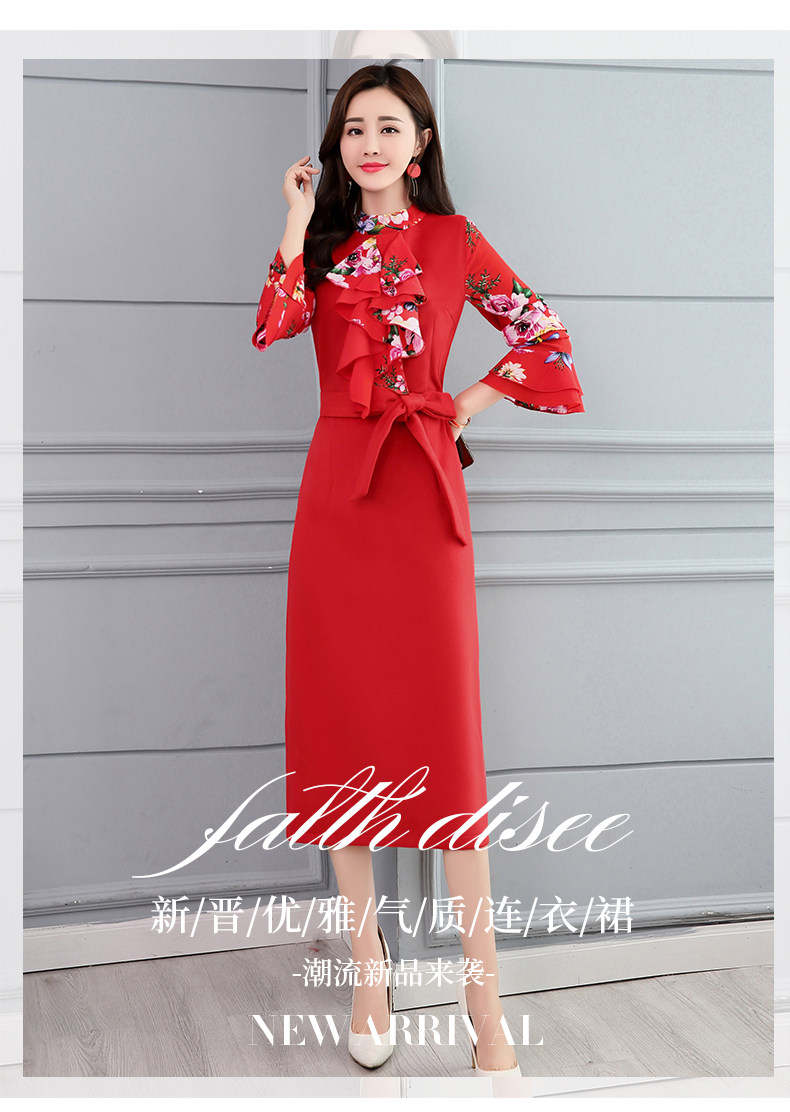 CQ-OKYZ1803冬季中长款单件百搭时尚气质荷叶袖连衣裙