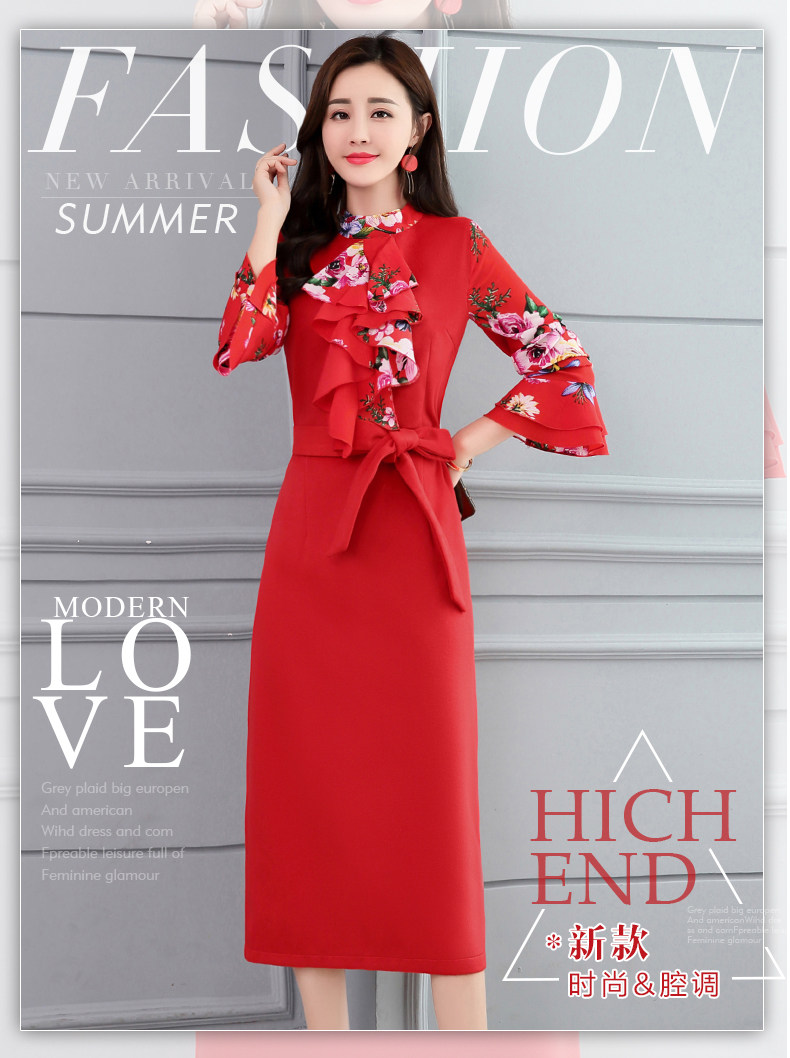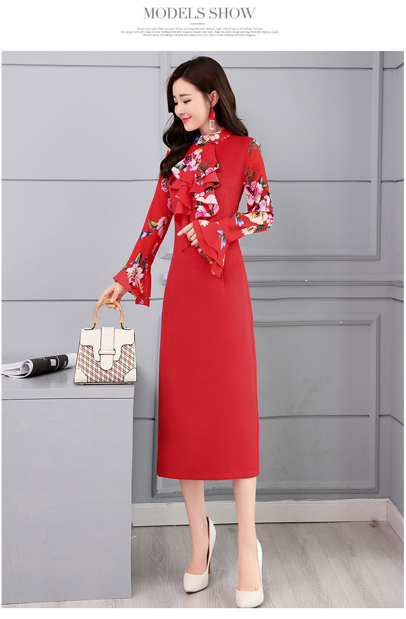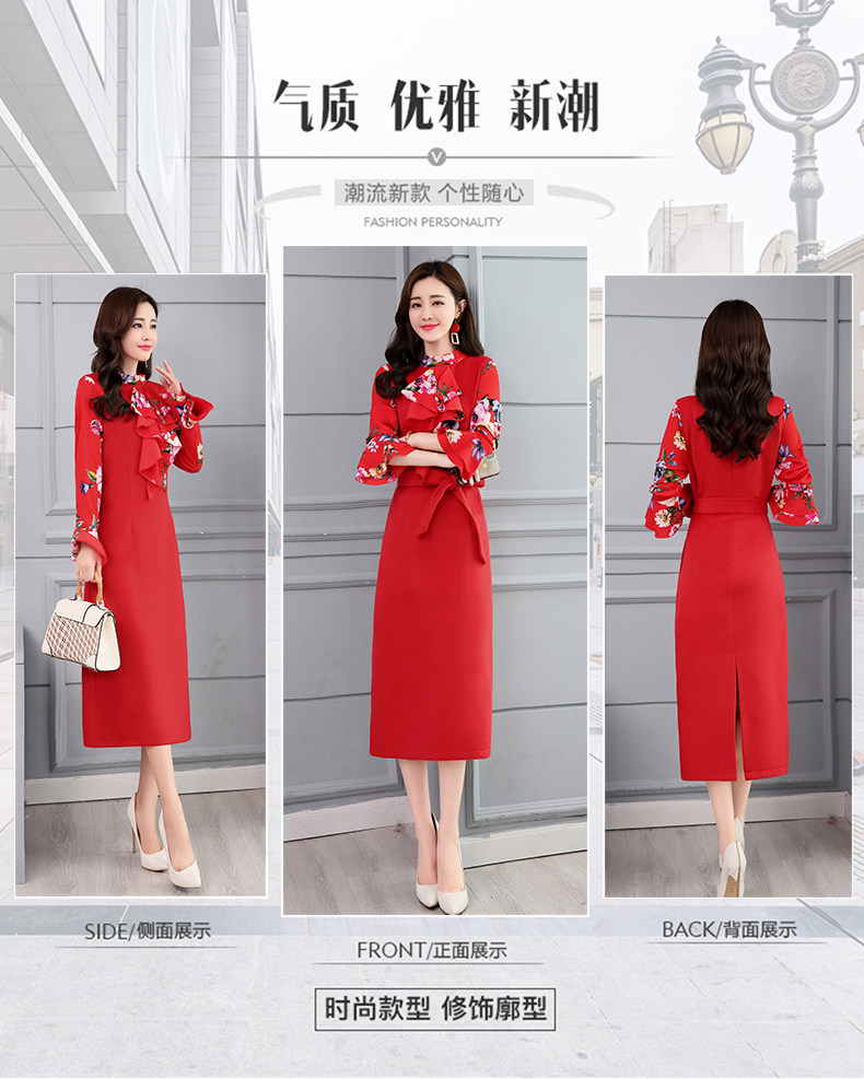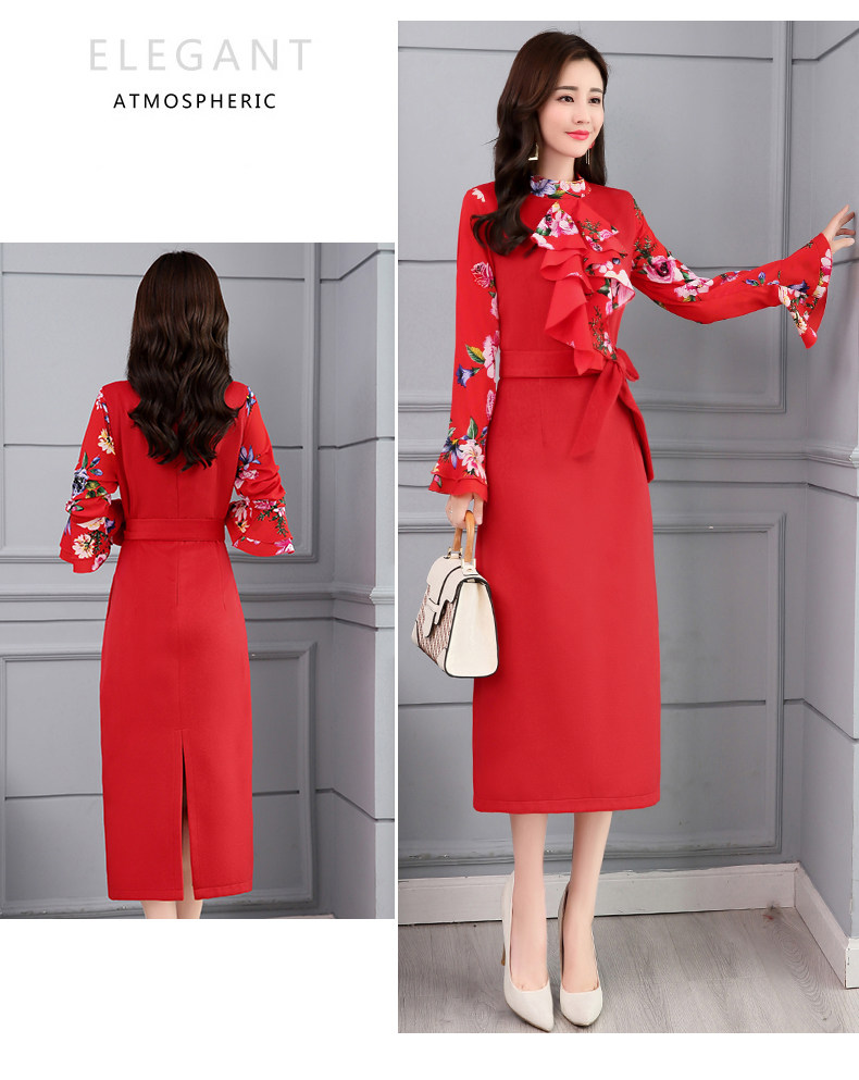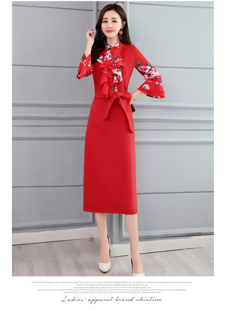 CQ-OKYZ1803冬季中长款单件百搭时尚气质荷叶袖连衣裙