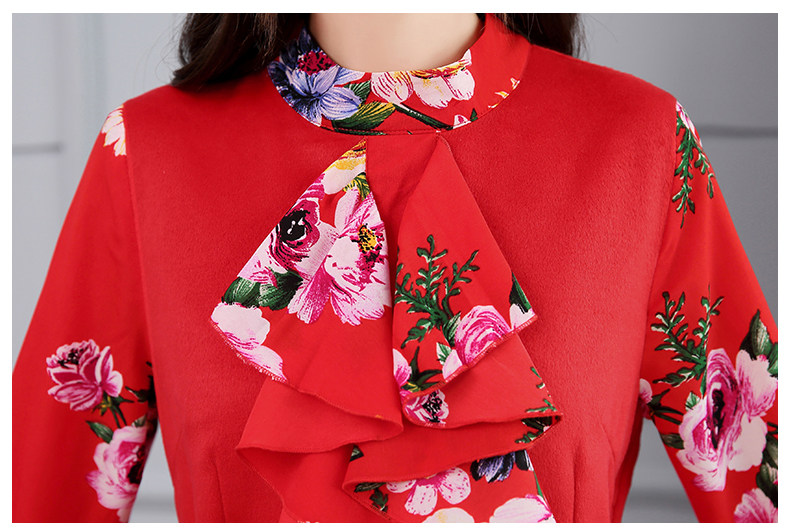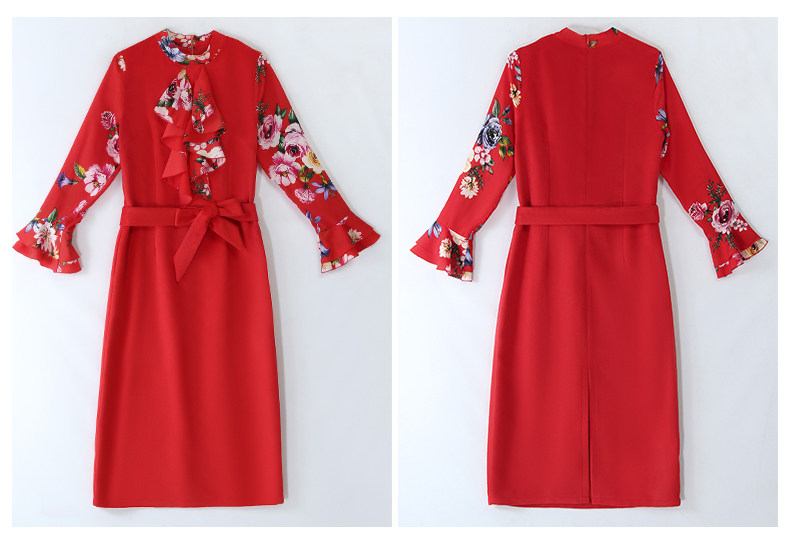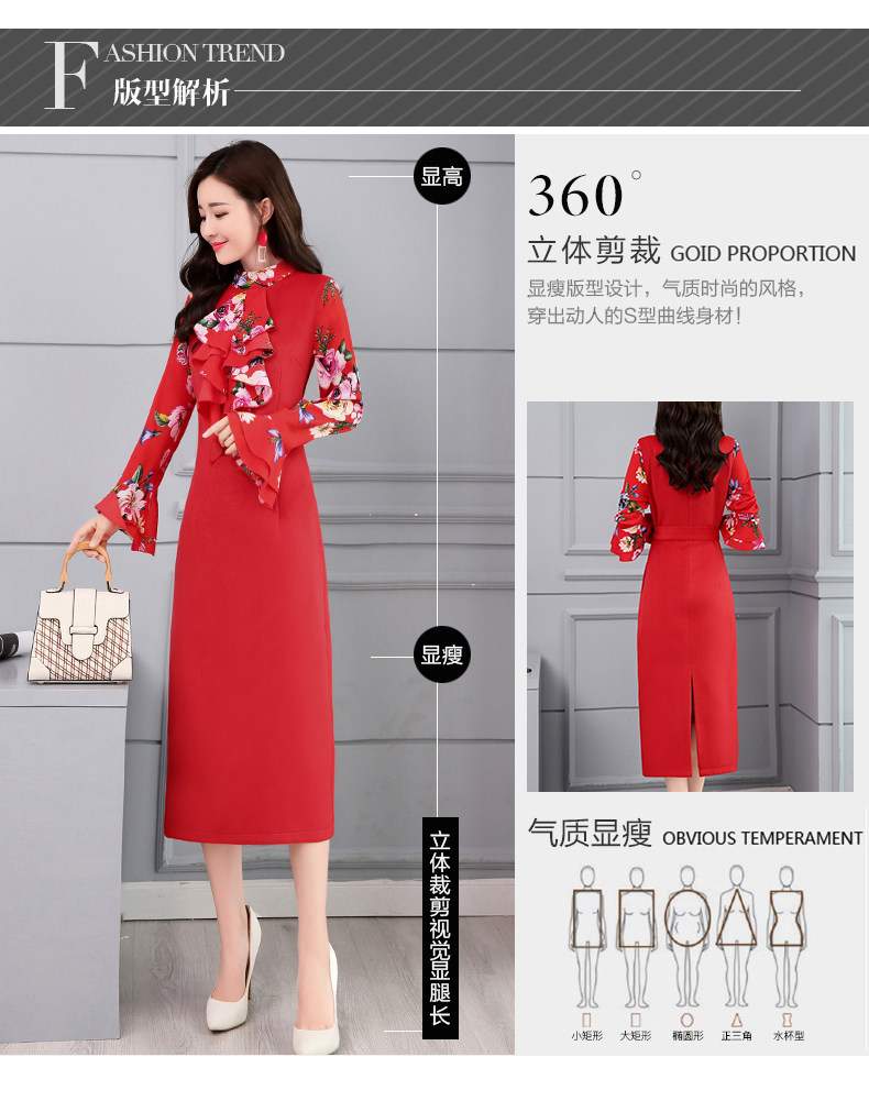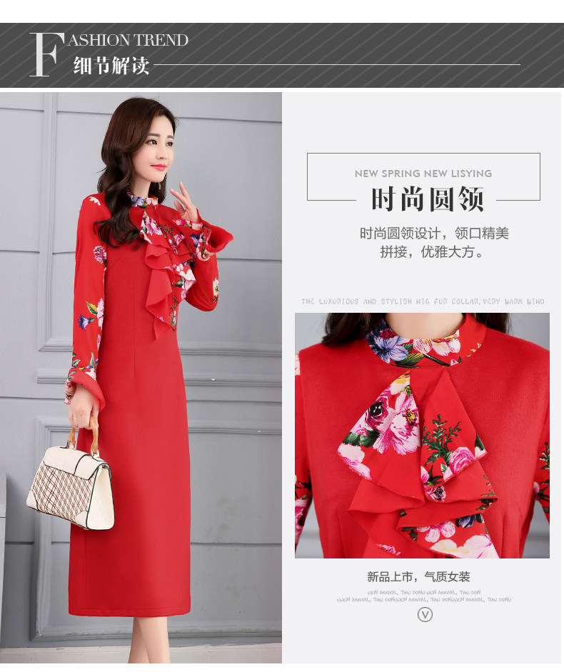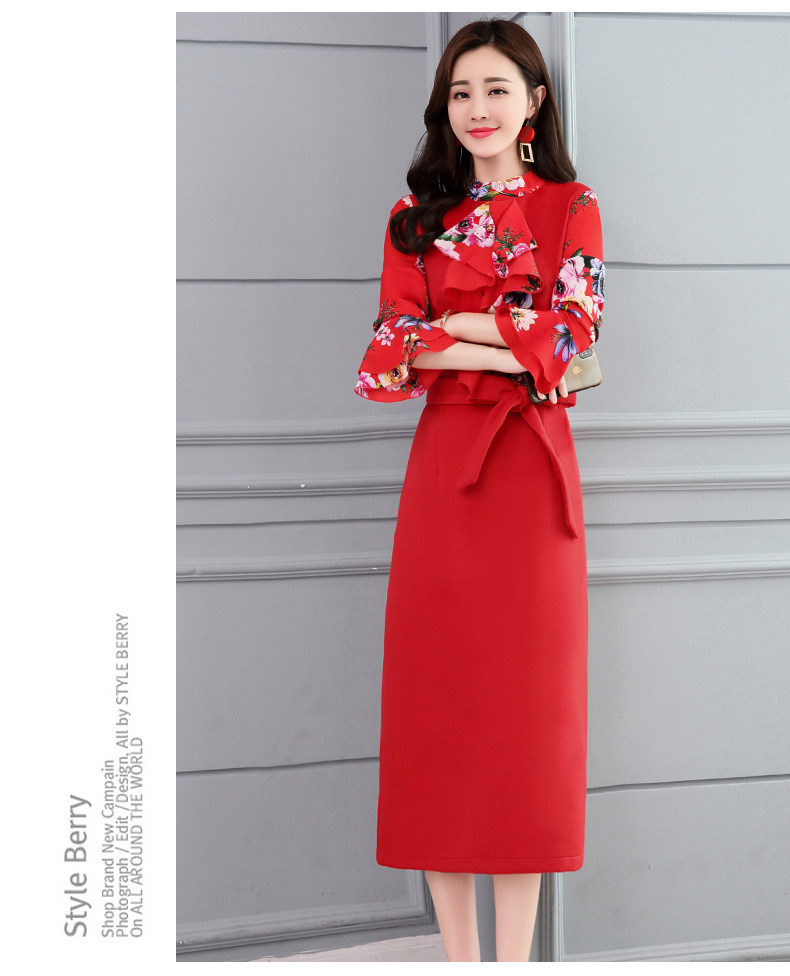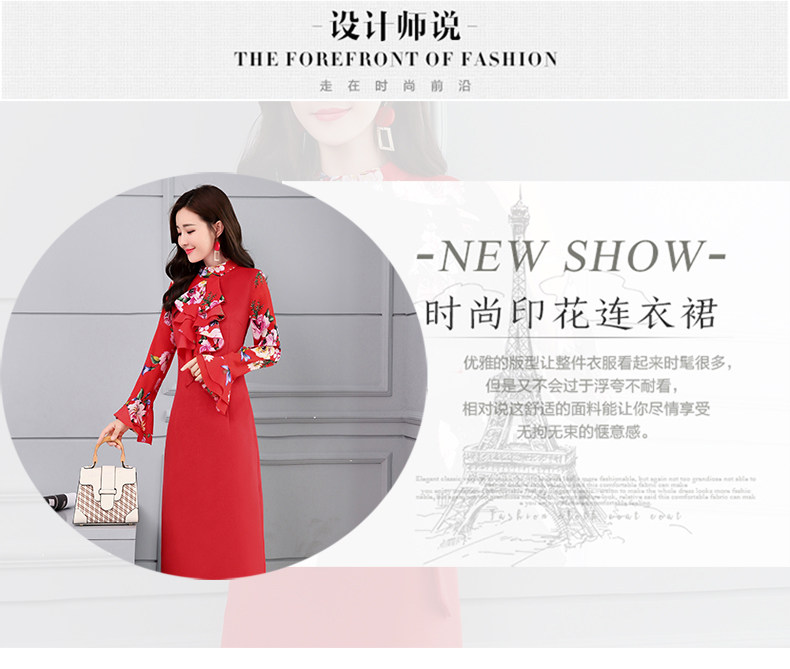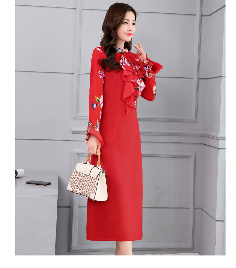 CQ-OKYZ1803冬季中长款单件百搭时尚气质荷叶袖连衣裙