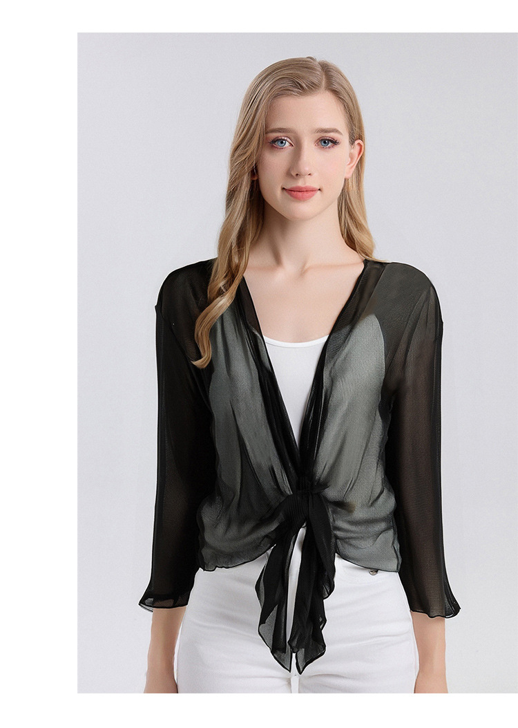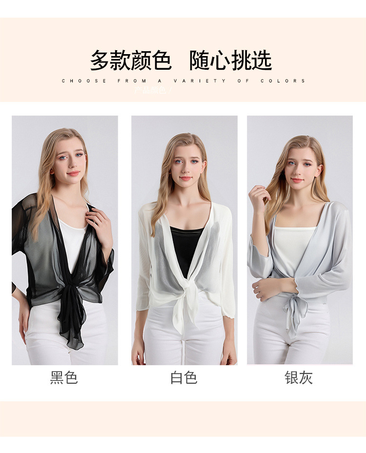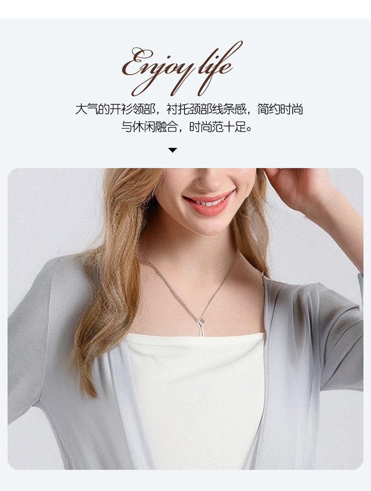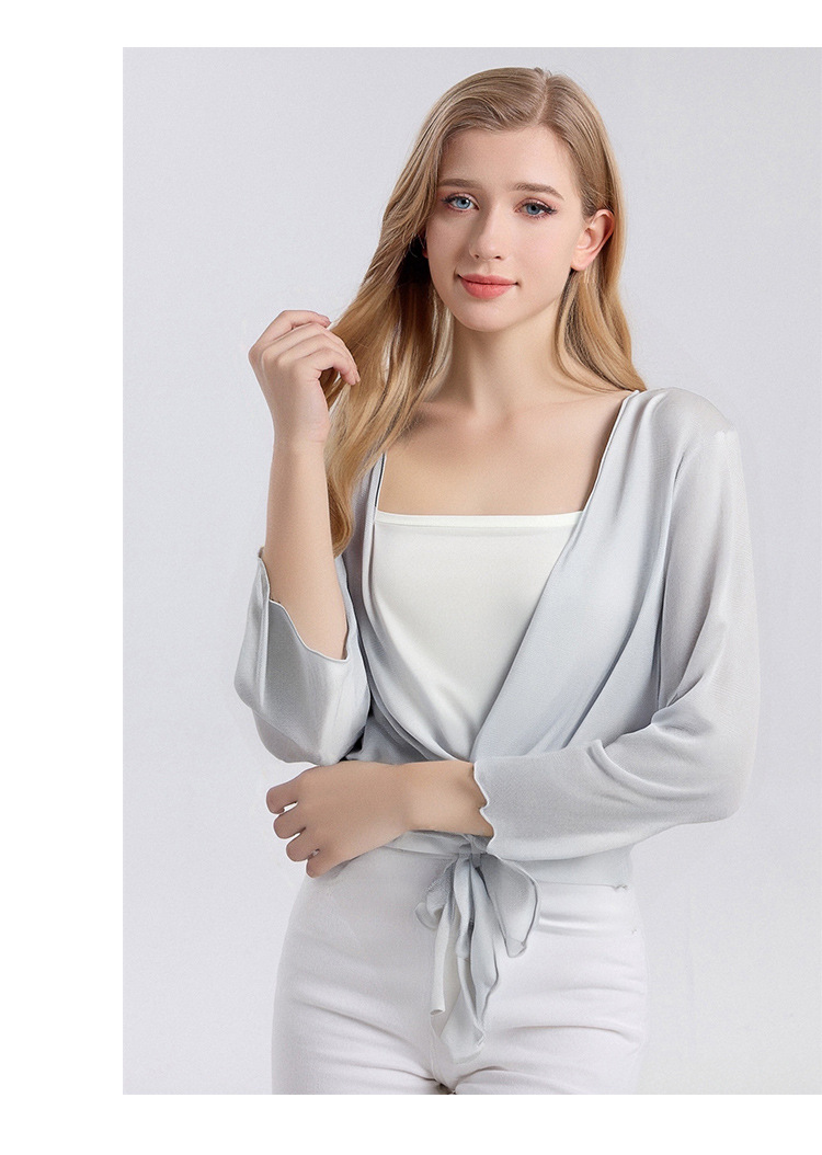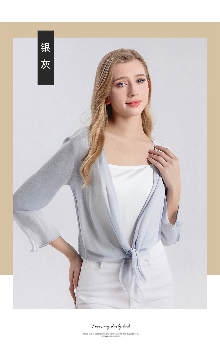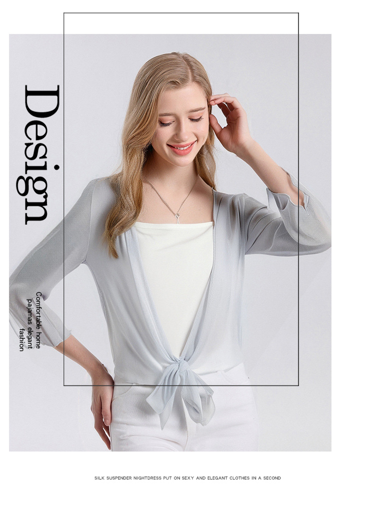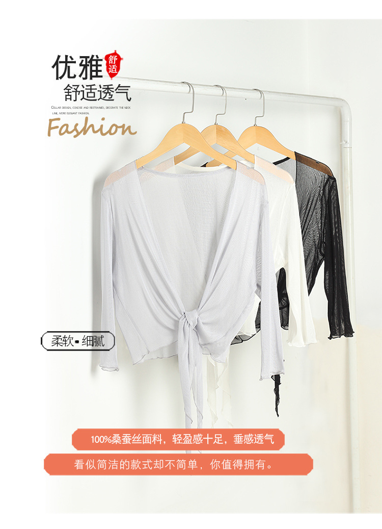 丁摩新款桑蚕丝网眼针织披肩防晒衣女真丝薄款七分袖外搭小外套夏AL25014