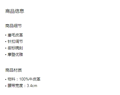 阿玛尼/EMPORIO ARMANI 男士磨毛牛皮革休闲商务针扣腰带 Y4S657YQ92X80001