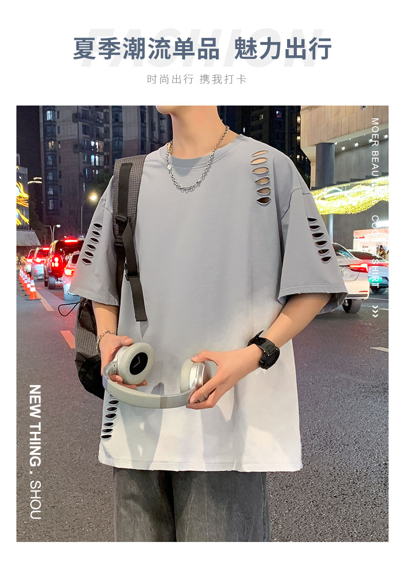 【棉质】【DYY】大依优型大码圆领短袖T恤夏季加肥加大肥佬休闲宽松透气弹力男装上衣潮款