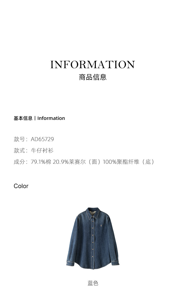 百媚生 天丝棉牛仔衬衫外套女秋冬加绒加厚复古叠穿上衣65729