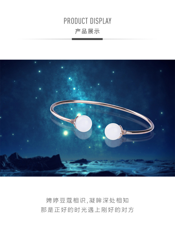 18k玫瑰金和田玉(白玉)玉珠手镯--心若相知·凝望