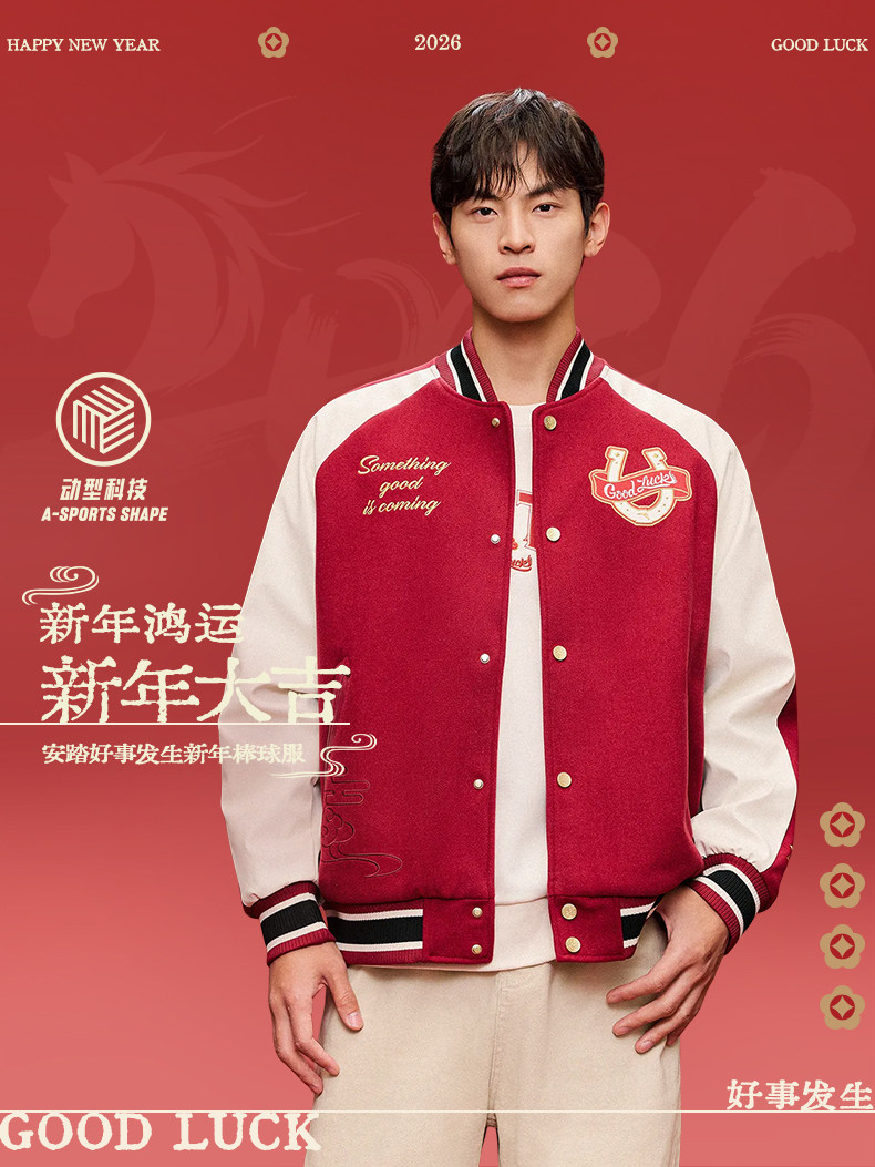安踏好事发生丨马年新年款红色棒球服夹克外套男女同款152618709S