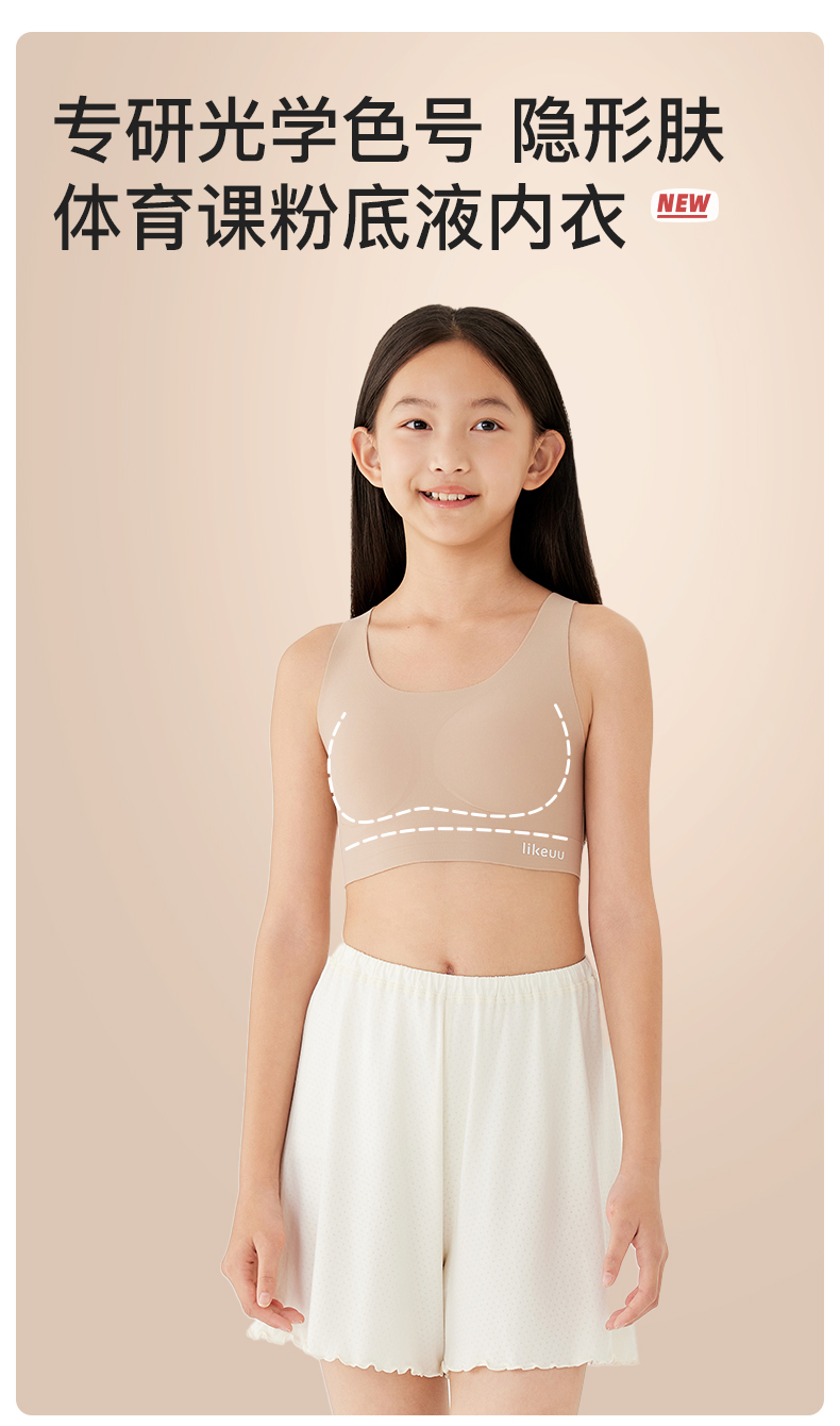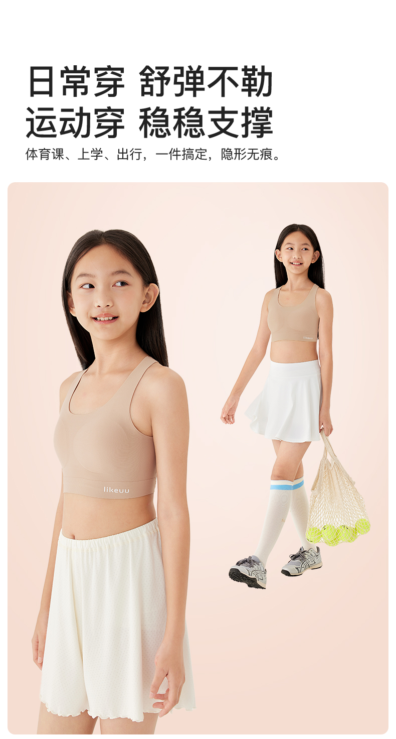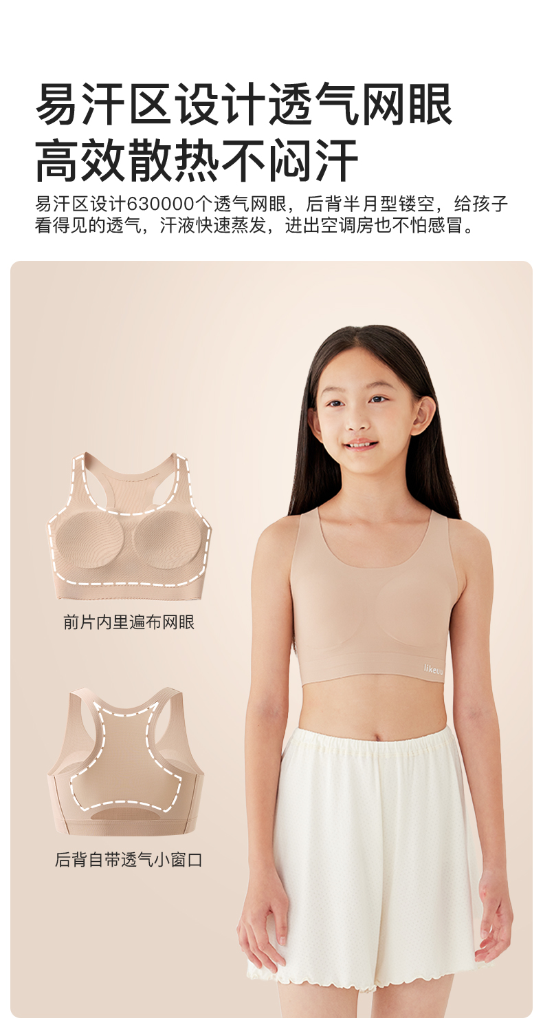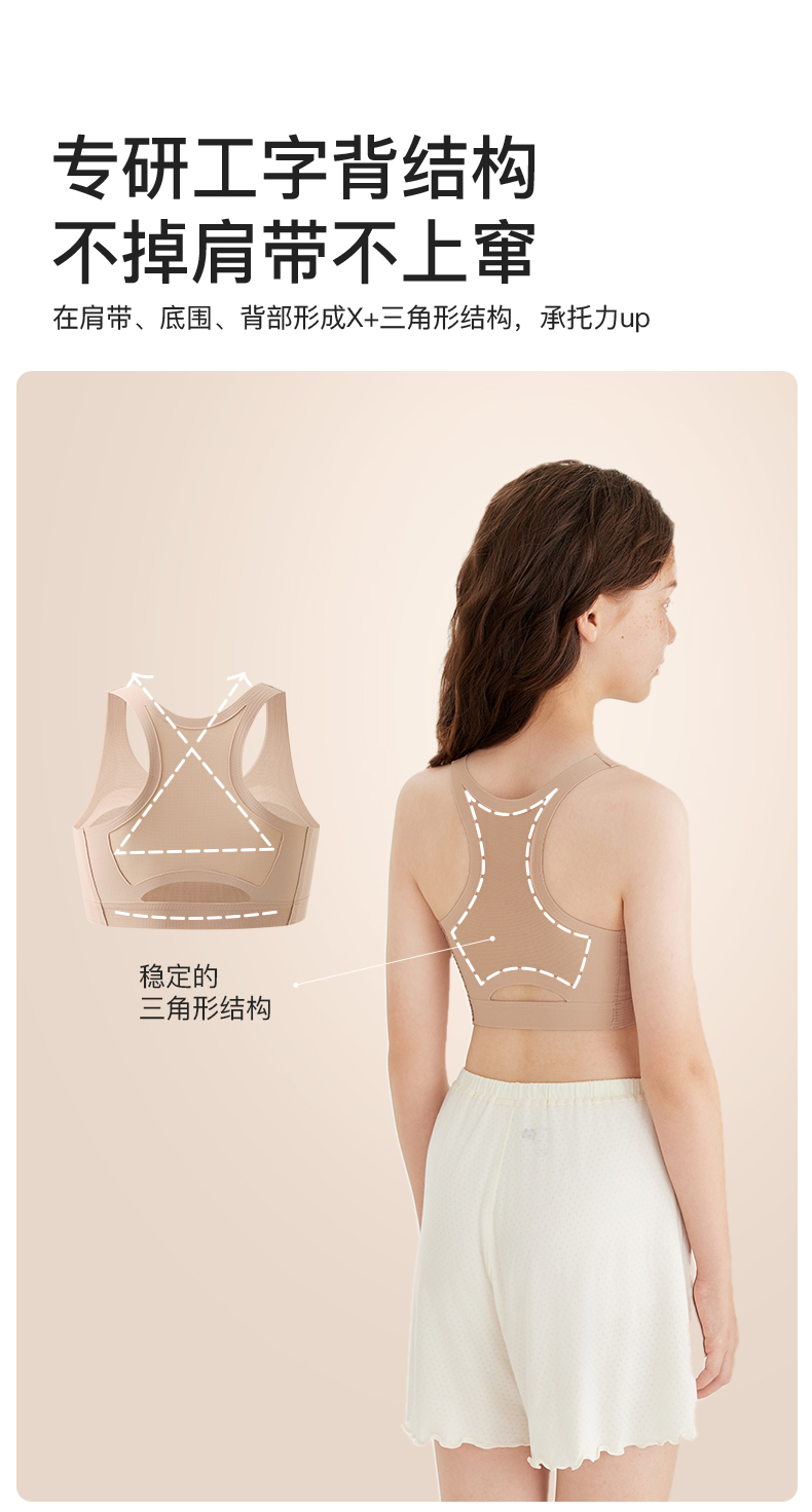 【E】likeuu少女运动内衣a类学生初高中粉底液隐形发育期儿童内衣背心体育课工字背LK9141032