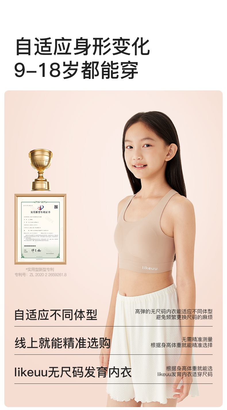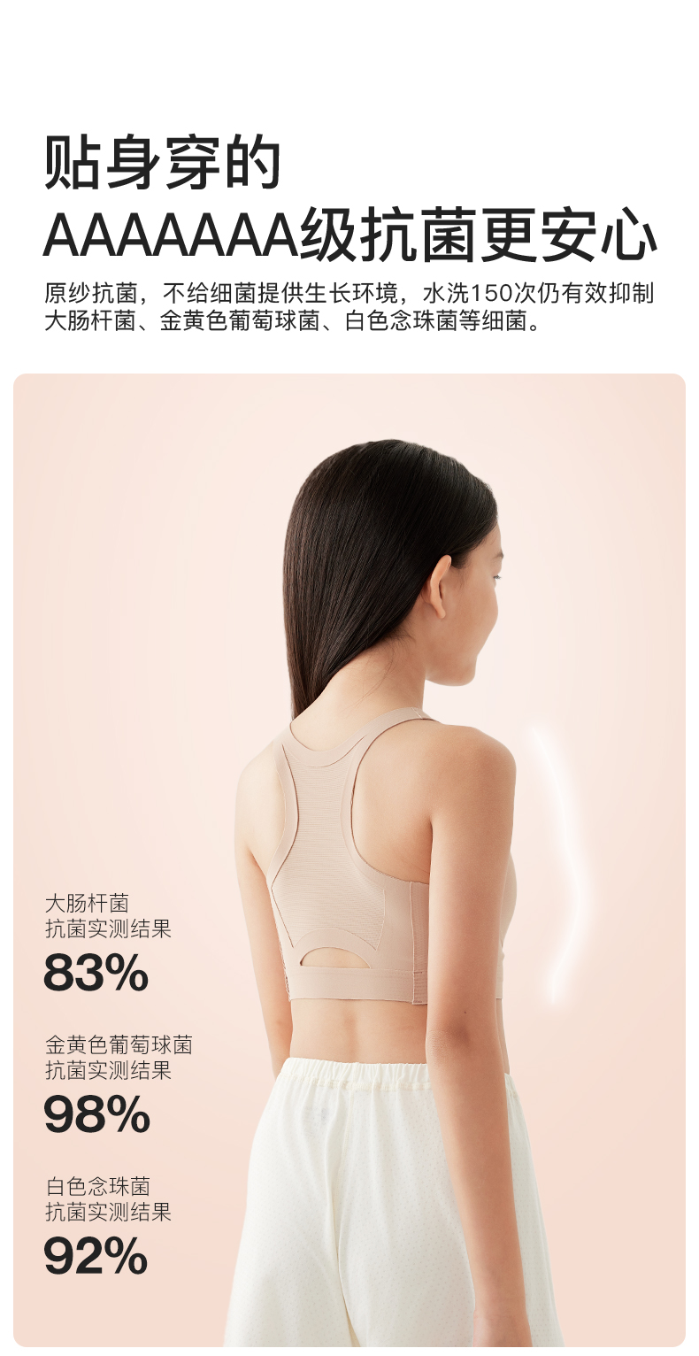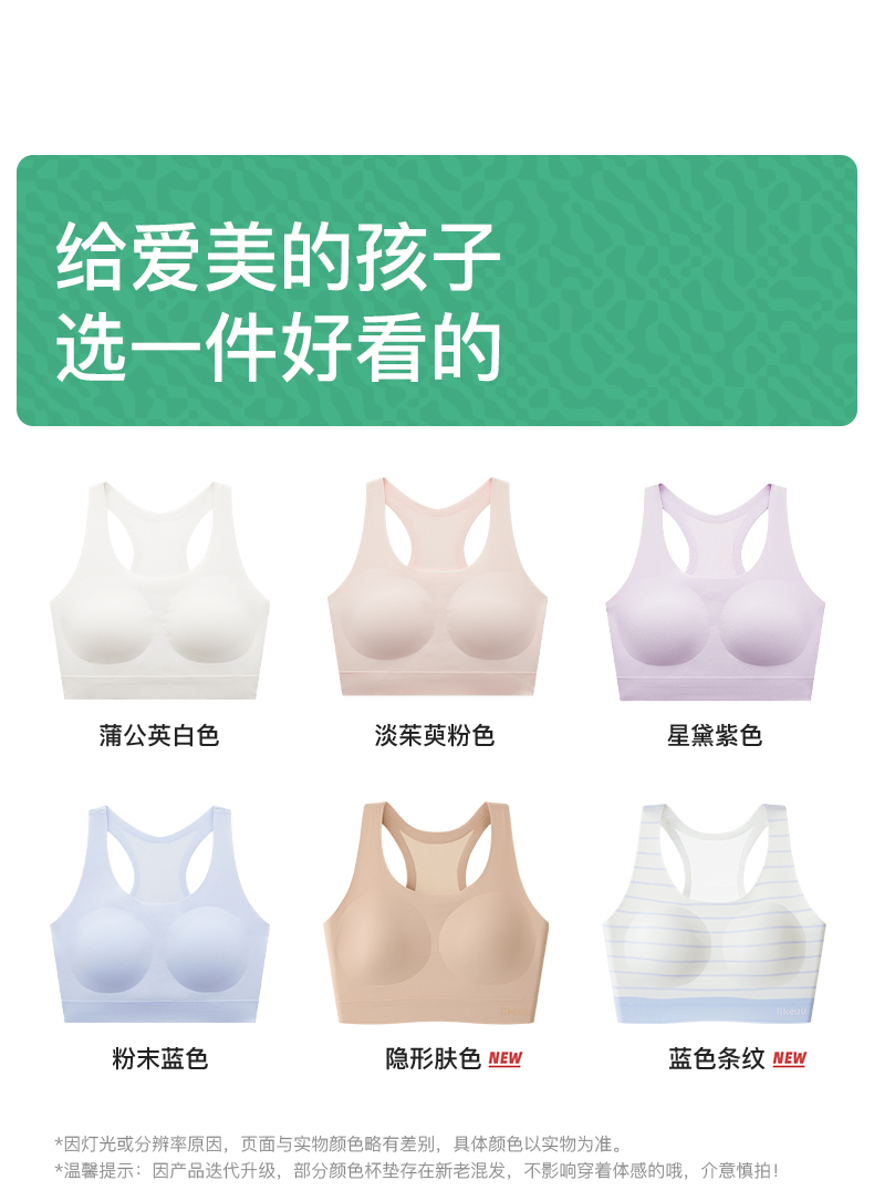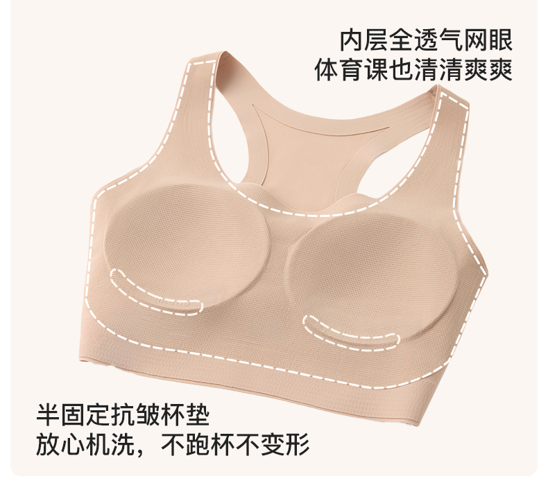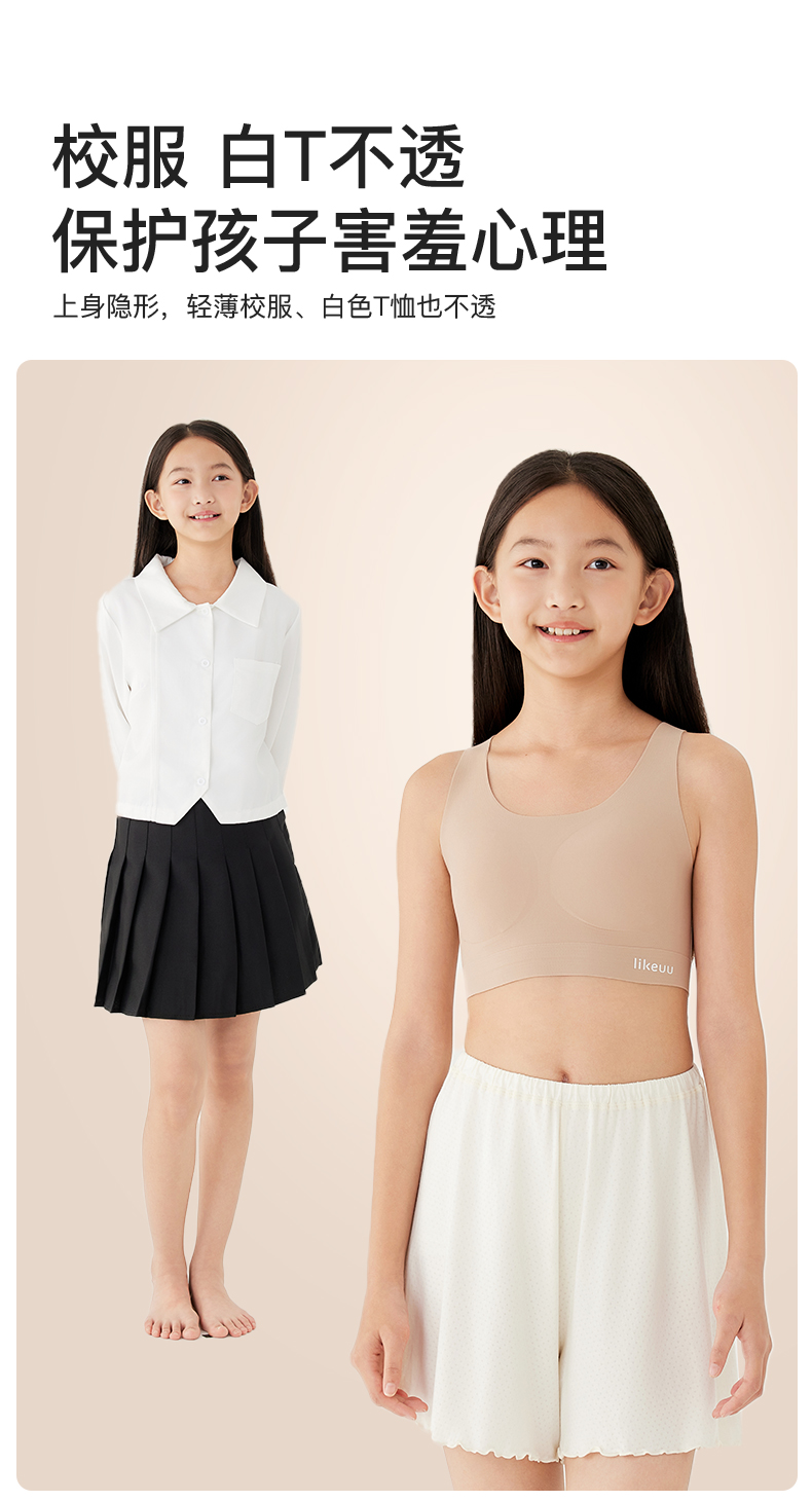 【E】likeuu少女运动内衣a类学生初高中粉底液隐形发育期儿童内衣背心体育课工字背LK9141032