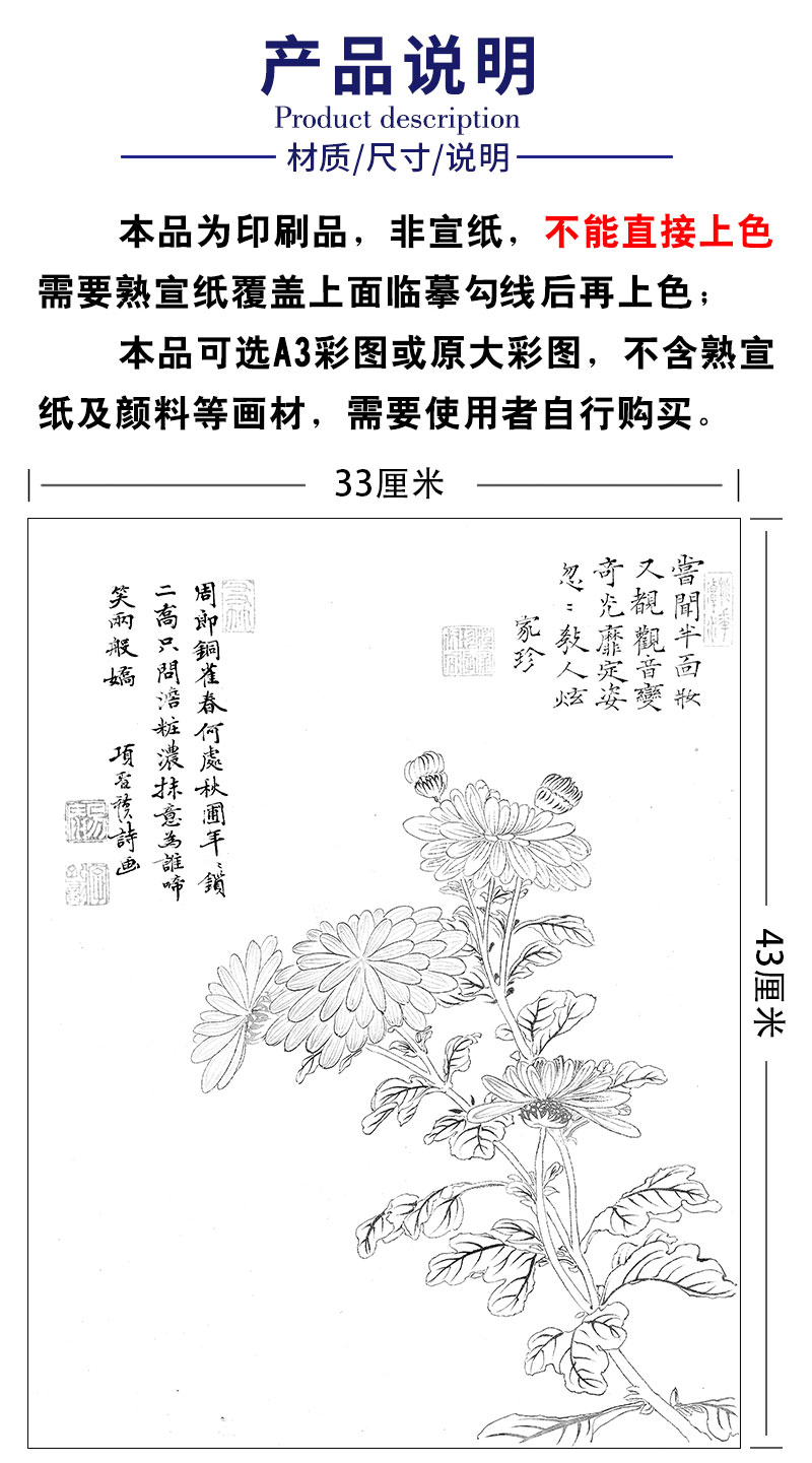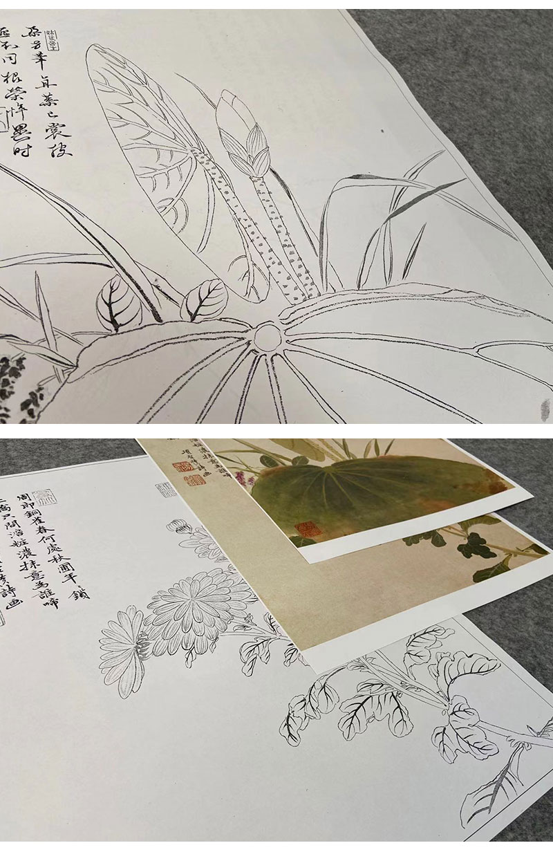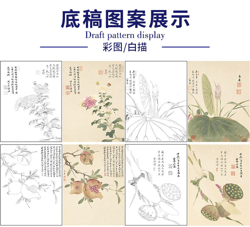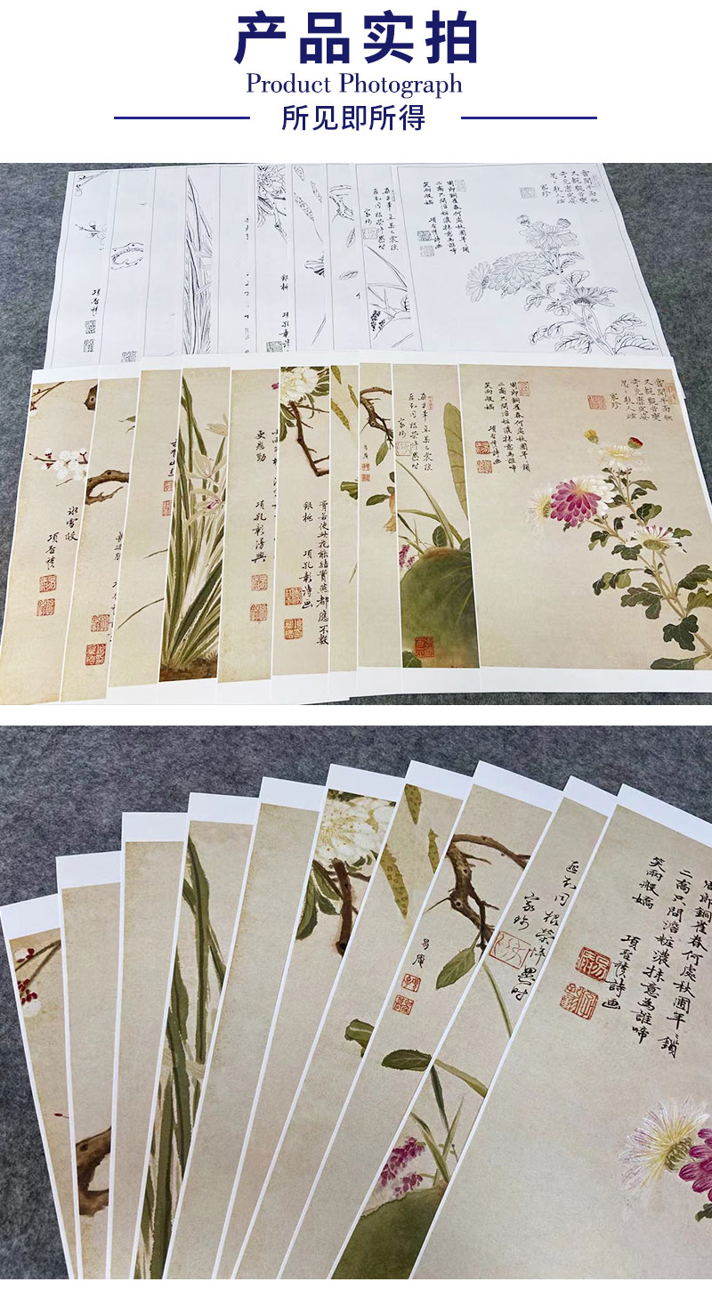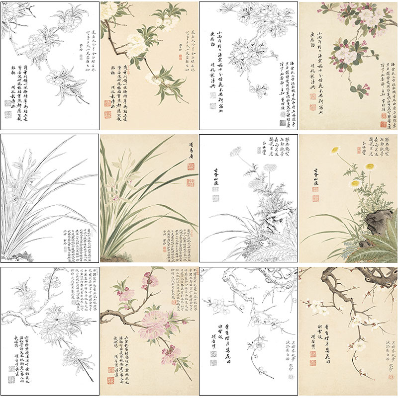 项圣谟工笔花鸟画白描底稿花卉十开图册小品一套十幅册页尺寸33*43厘米MT06