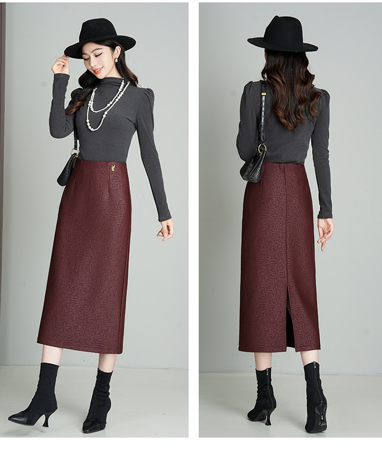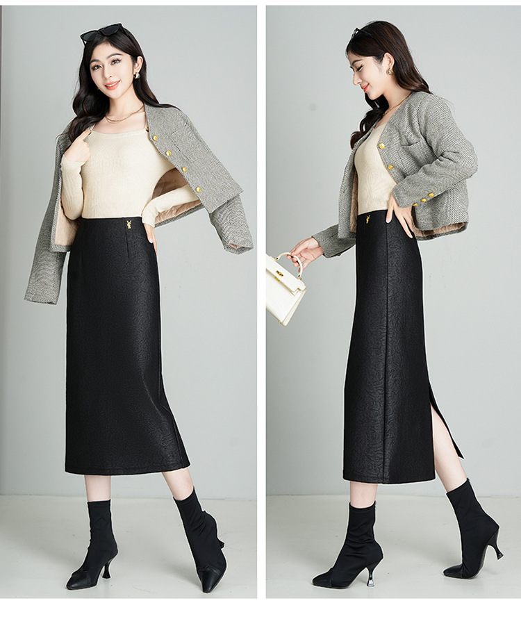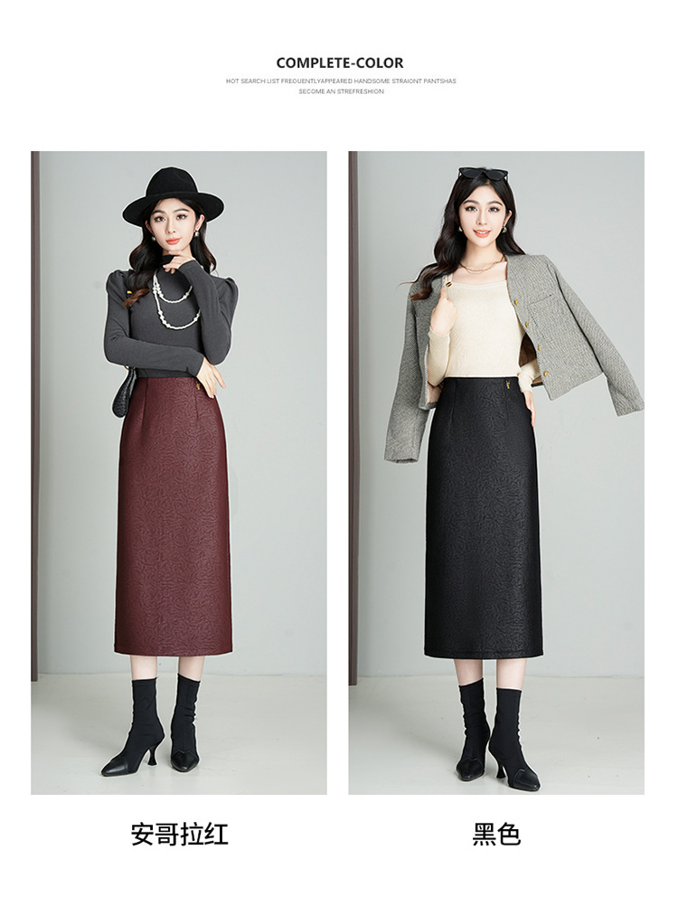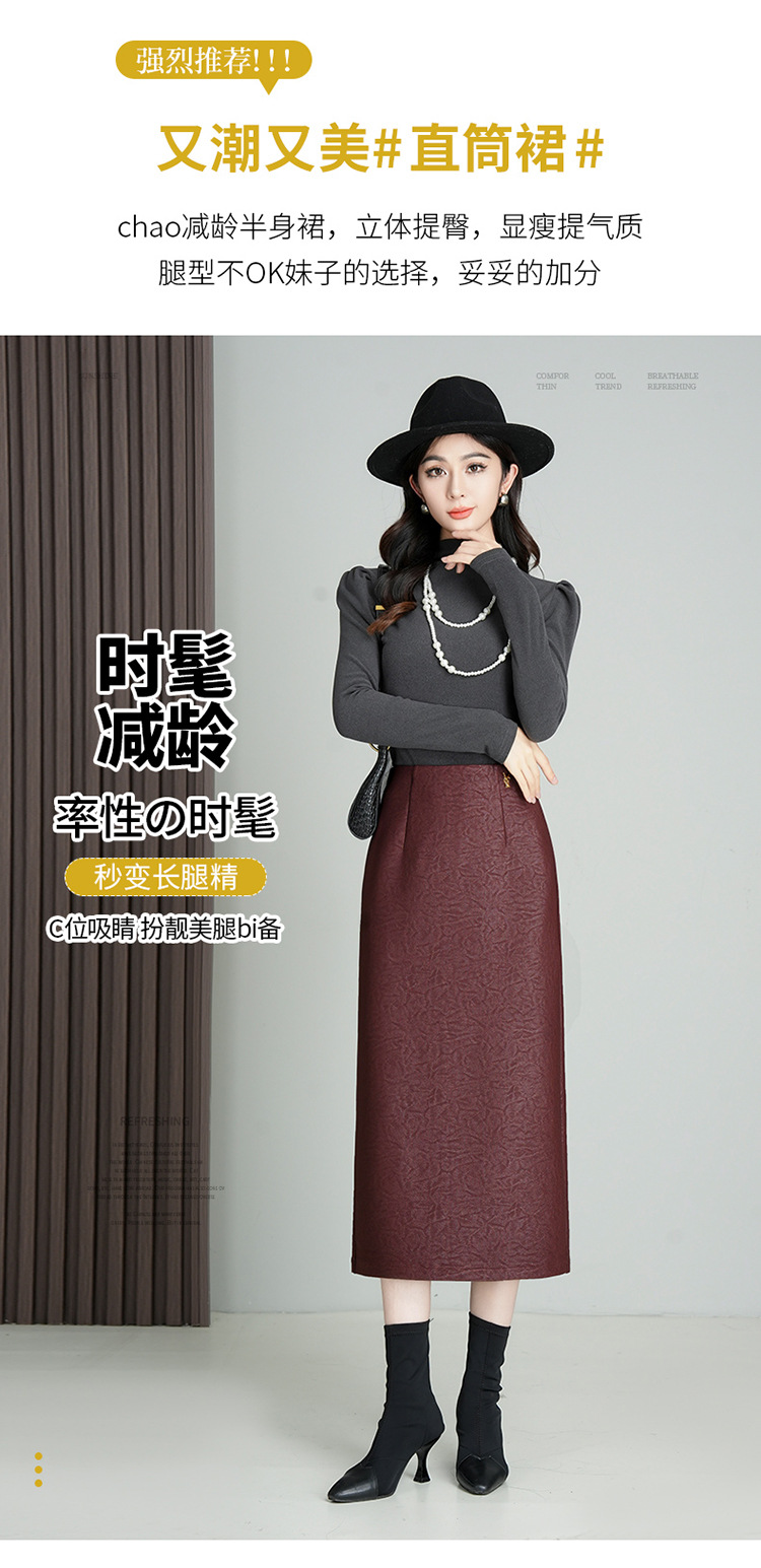 MYX-KDFY-S666-Y高腰直筒半身裙女秋冬季裙子2024年新款时尚开衩气质包臀一步裙