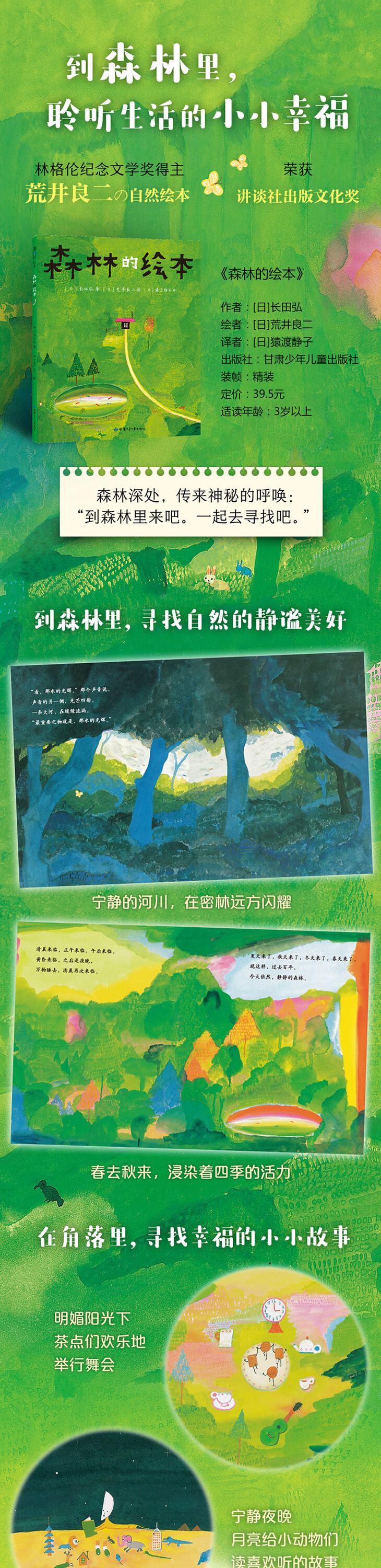 一个安宁和平的森林世界,自由、充满童稚的水彩画中流淌不可思议的静谧和诗意。发现美、懂得爱,一本会呼吸、能长久滋养孩子心灵的绘本。