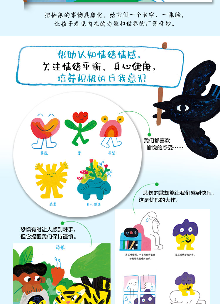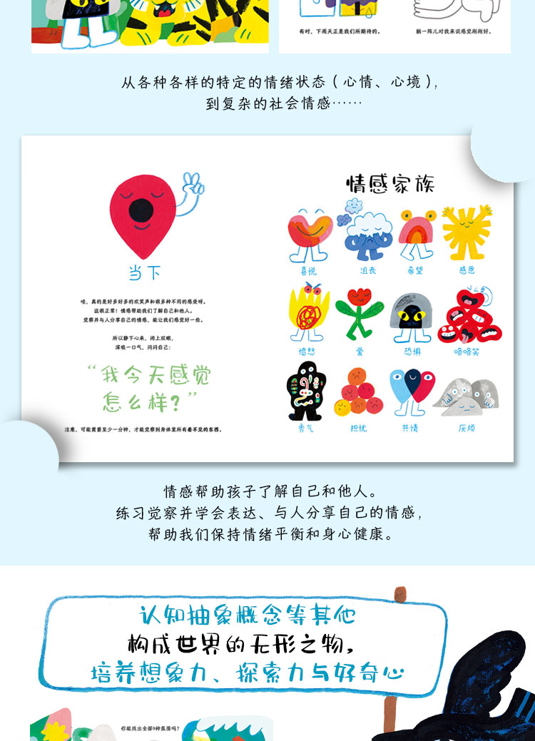 从各种各样的感受、特定的情绪状态(心情、心境),到复杂的社会情感……情感帮助孩子了解自己和他人。练习觉察并学会表达、与人分享自己的情感,帮助孩子保持情绪平衡和身心健康。