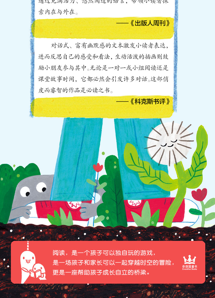l 对话式、富有幽默感的文本激发小读者表达,进而反思自己的感受和看法,生动活泼的插画则鼓励小朋友参与其中。无论是一对一或小组阅读还是课堂故事时间,它都必然会引发许多对话。这部俏皮而睿智的作品是必读之书。