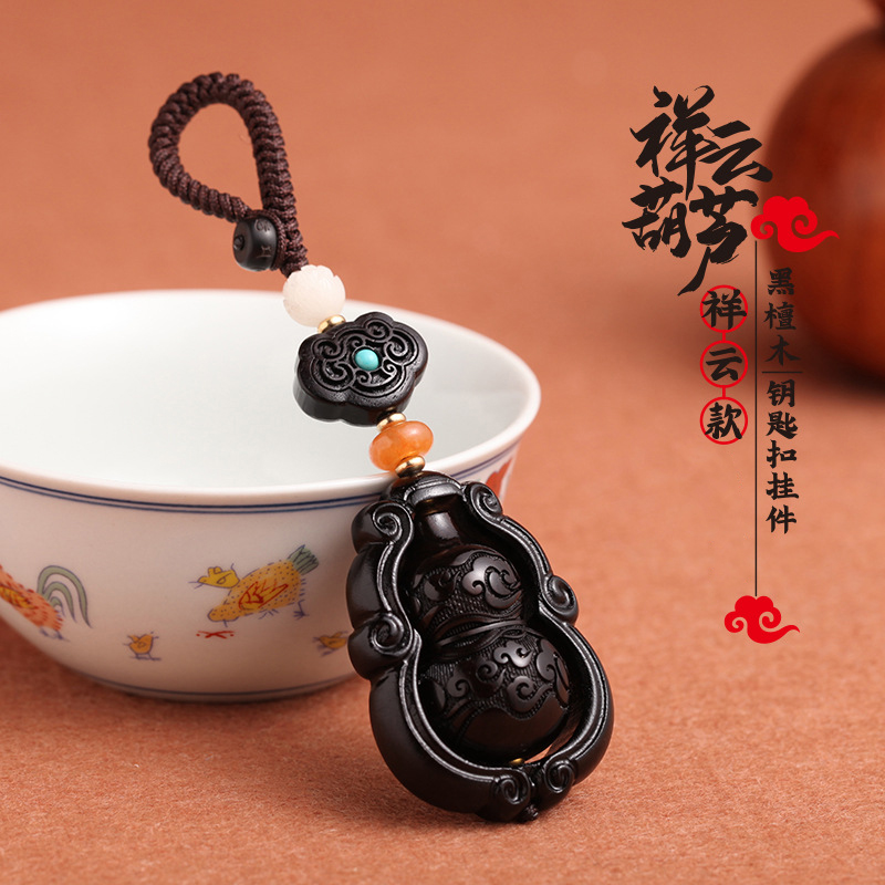 太清檀木祥云葫芦车钥匙挂件