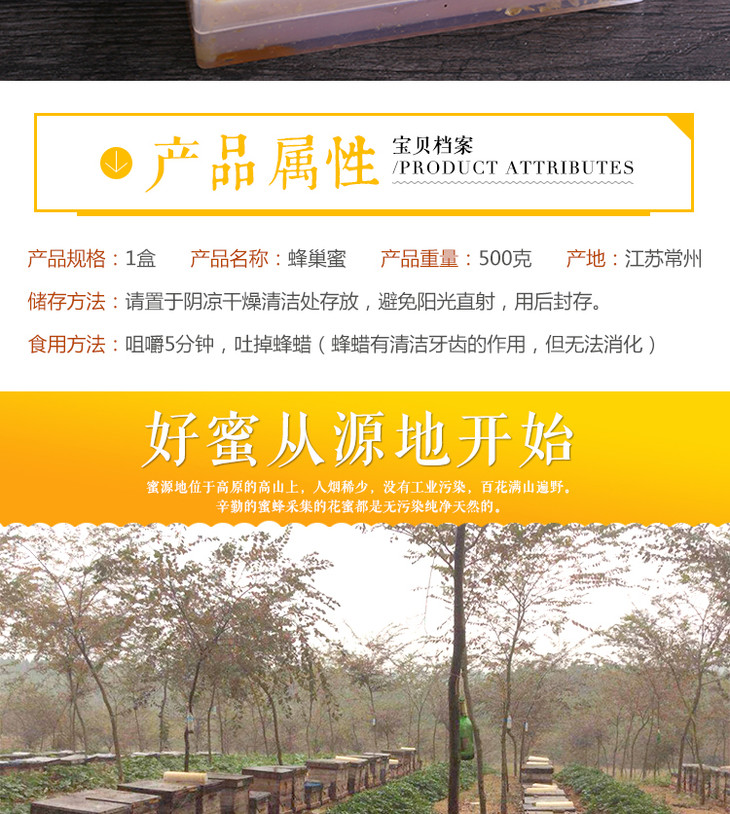 【常州馆】蜂巢蜜500g蜂巢蜜嚼着吃土蜂蜜纯正天然农家自产蜂窝蜜巢野生峰蜜