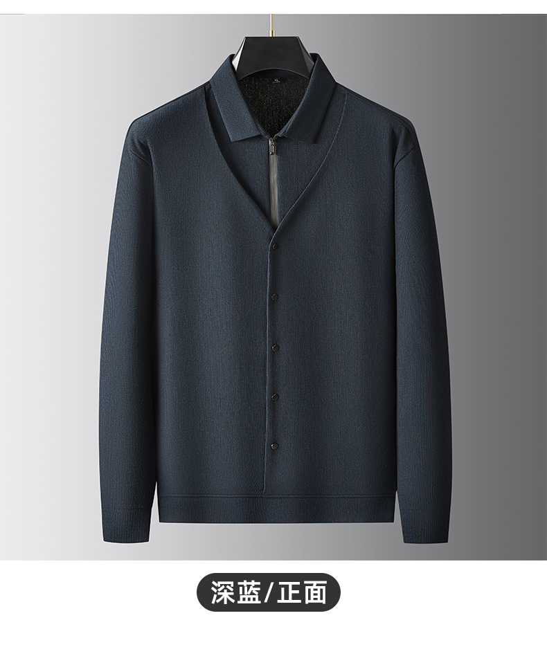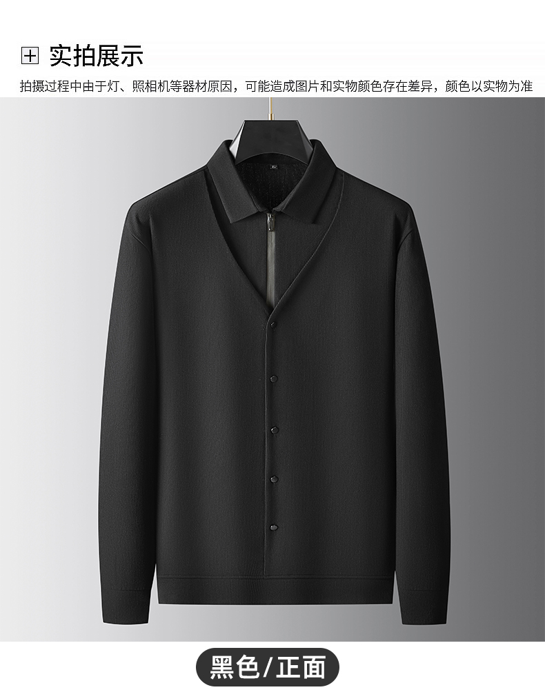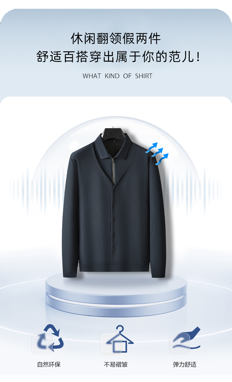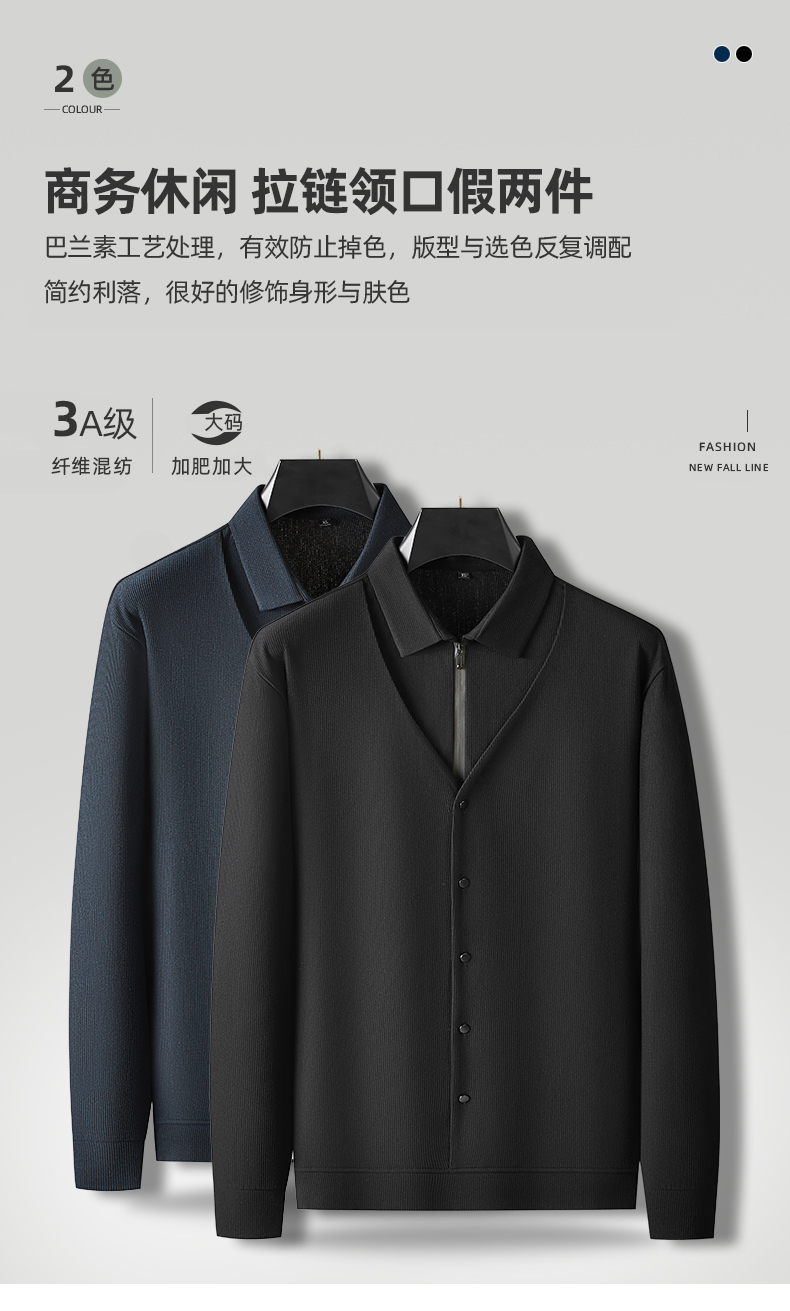 【假两件】【新款DDA】大依优型大码男士立领假两件长袖T恤商务休闲上衣加肥加大胖子舒适