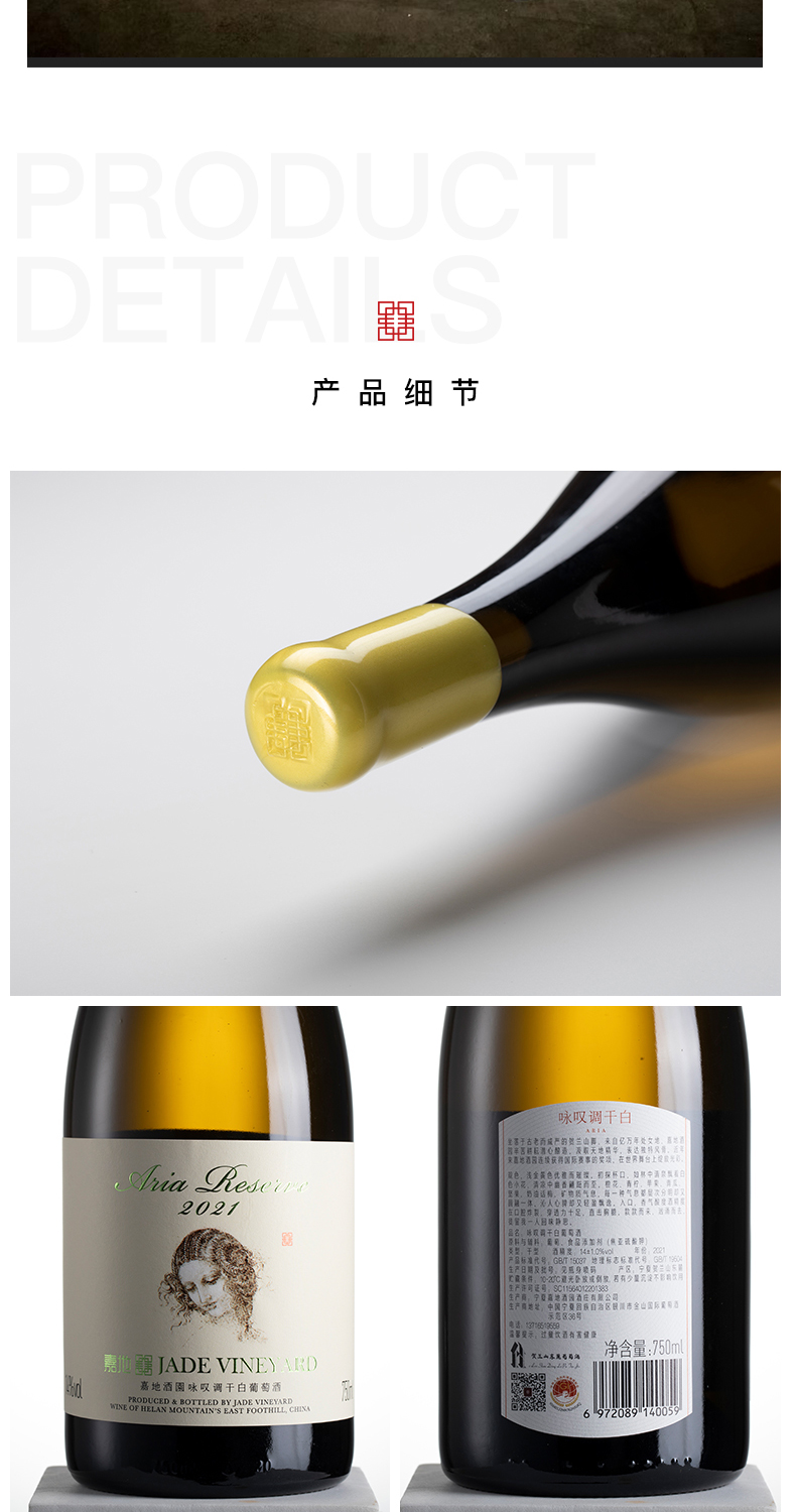 嘉地酒庄旗舰店咏叹调干白2021葡萄酒宁夏国产精品霞多丽