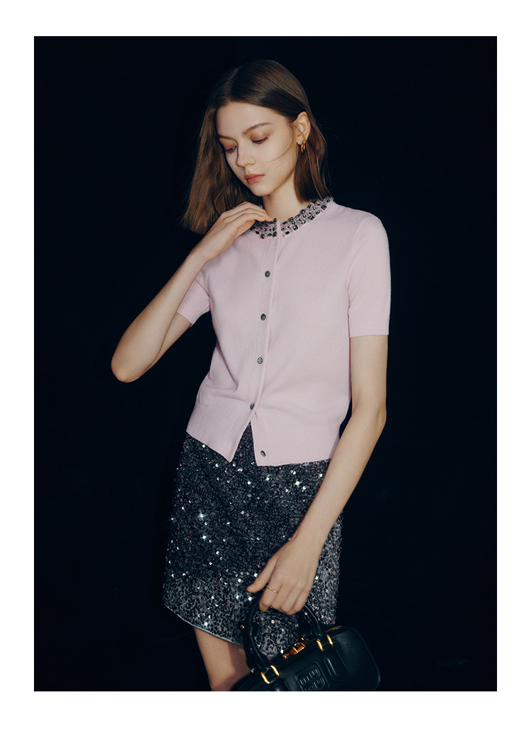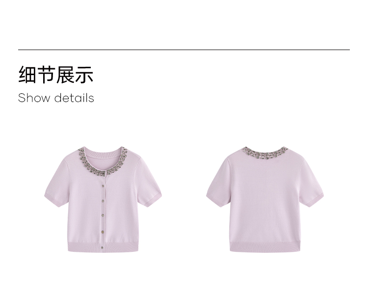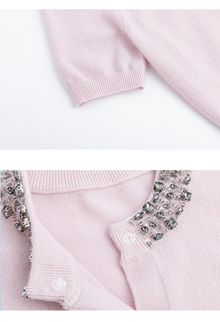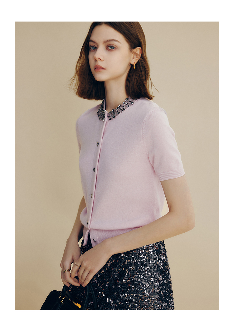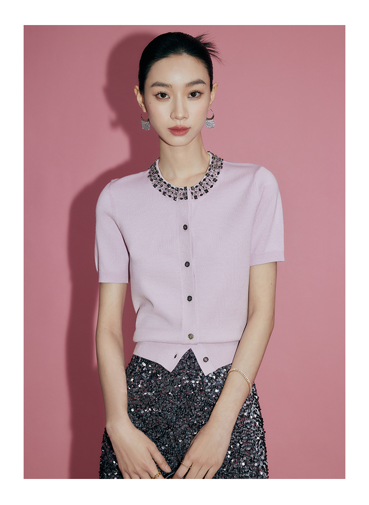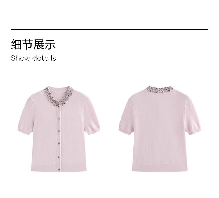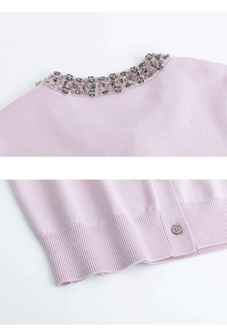 丁摩 【星钻系列】粉色钉珠针织开衫女短袖夏小香风毛衣miu系上衣5ZF-645871