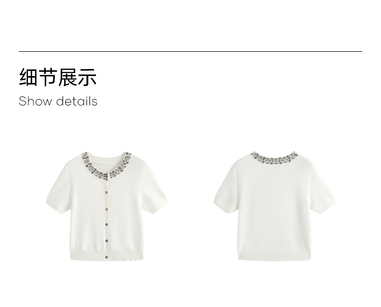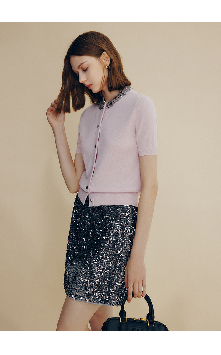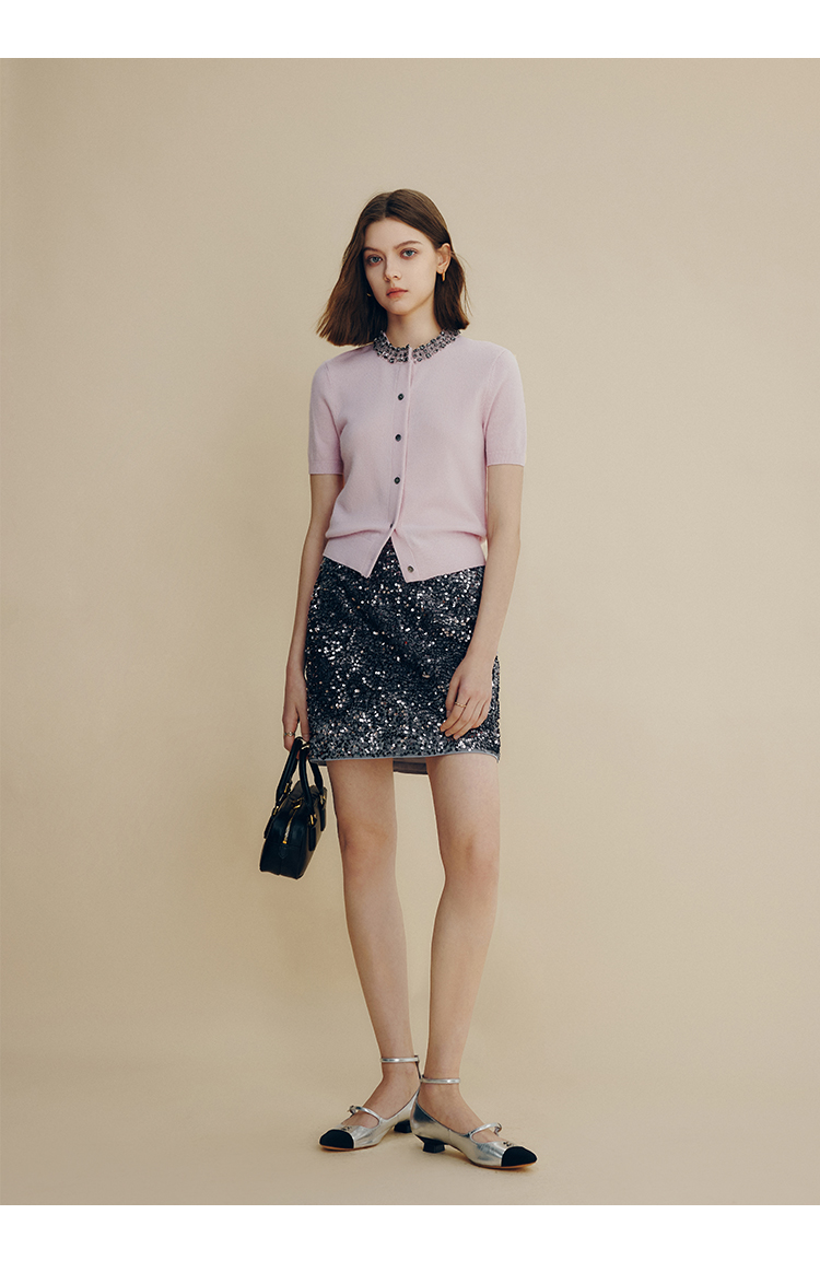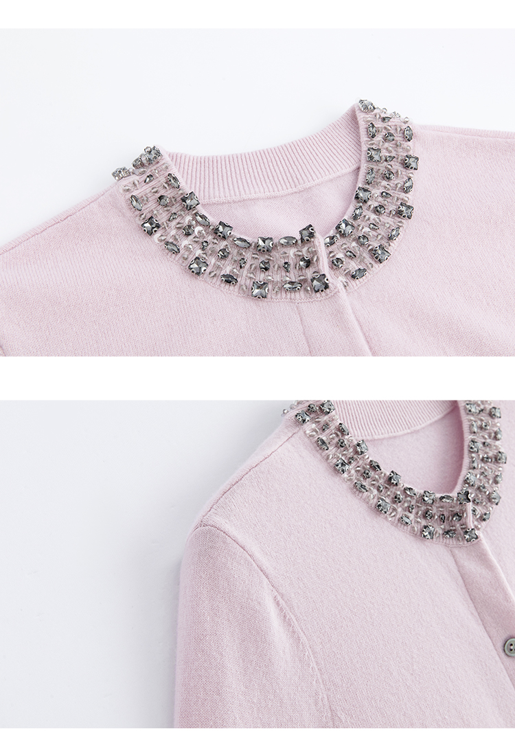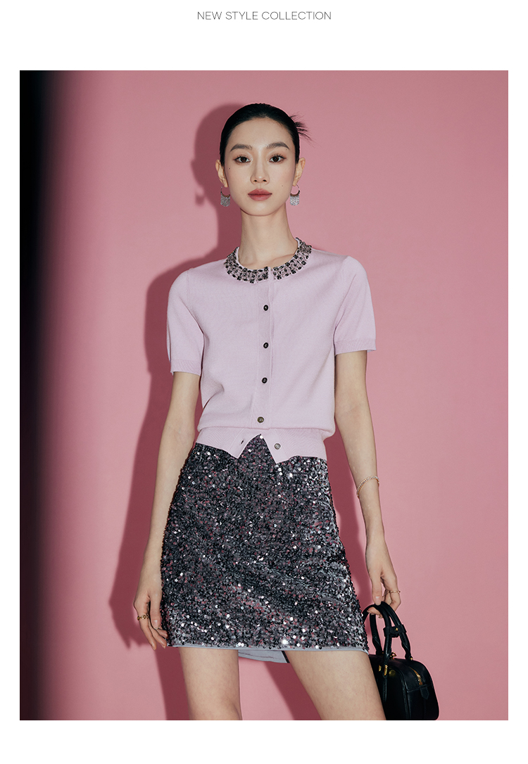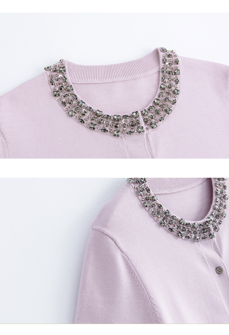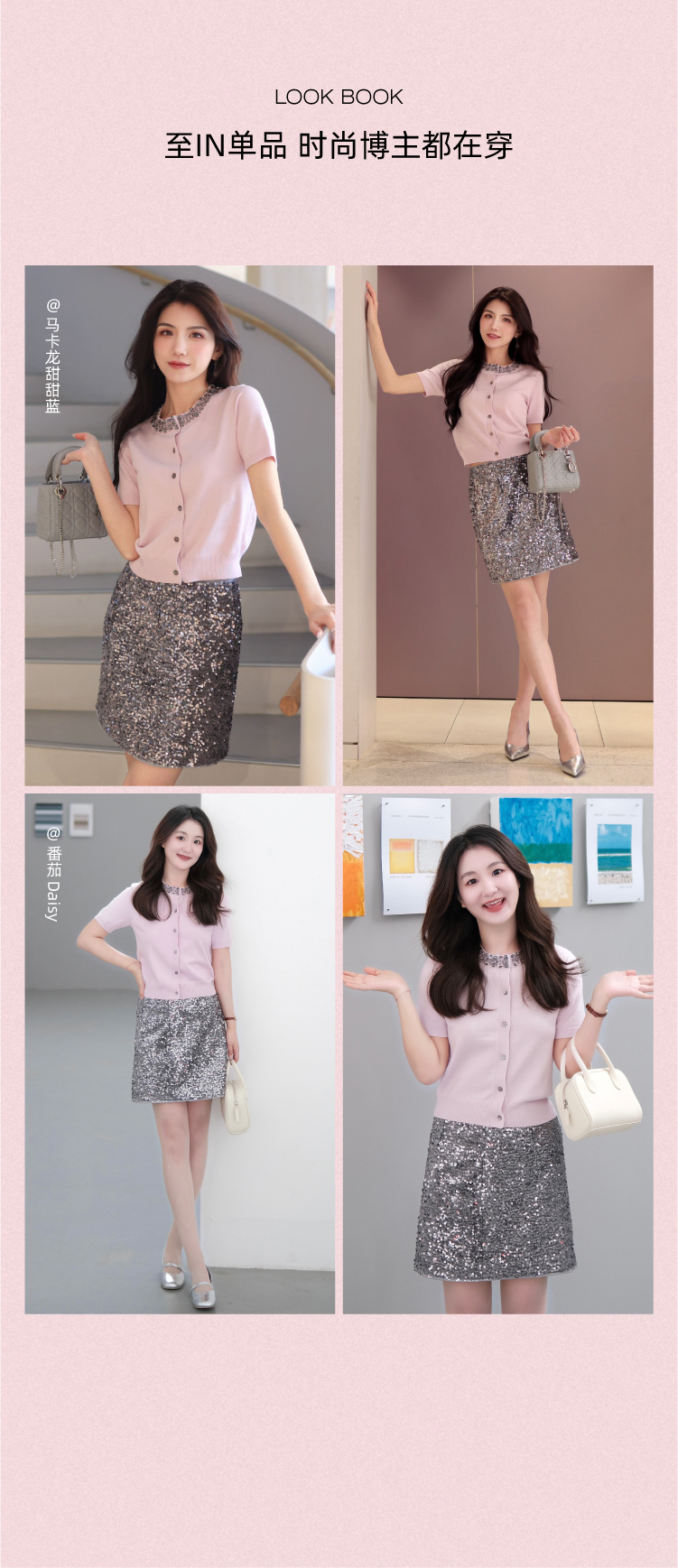 丁摩 【星钻系列】粉色钉珠针织开衫女短袖夏小香风毛衣miu系上衣5ZF-645871
