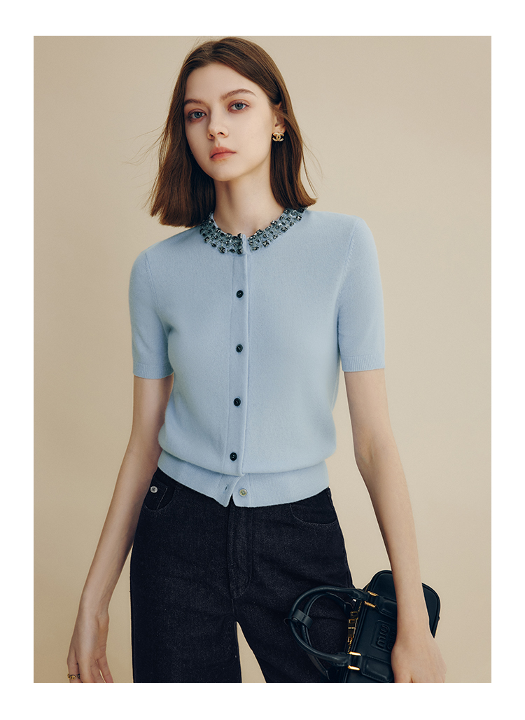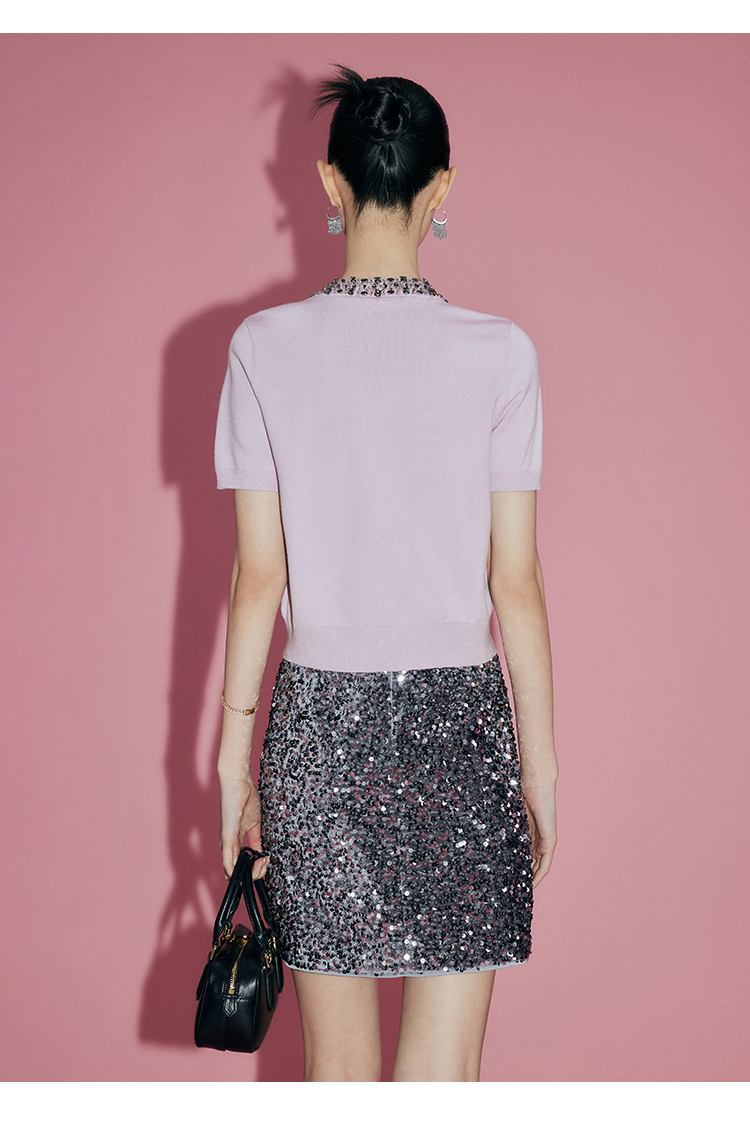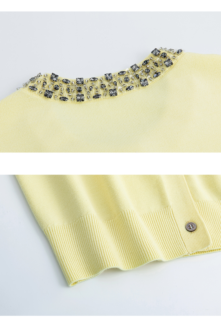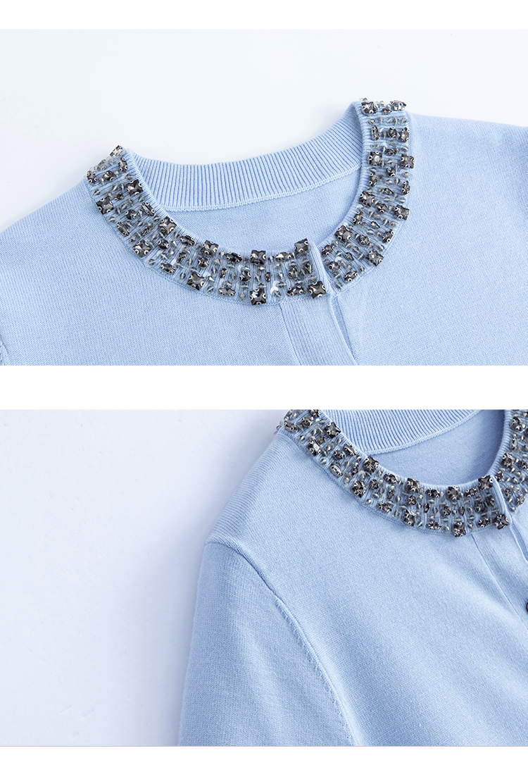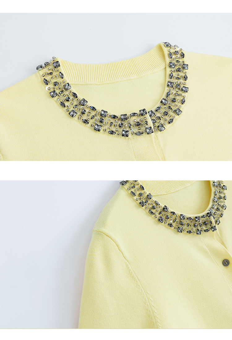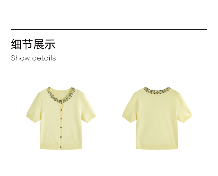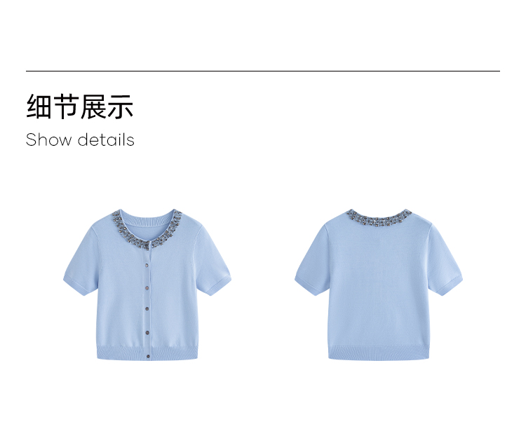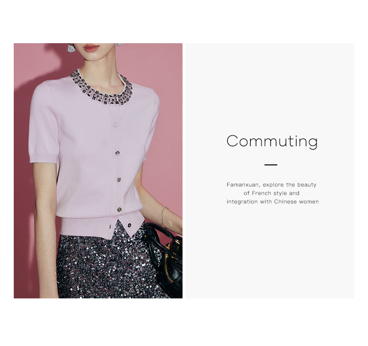 丁摩 【星钻系列】粉色钉珠针织开衫女短袖夏小香风毛衣miu系上衣5ZF-645871