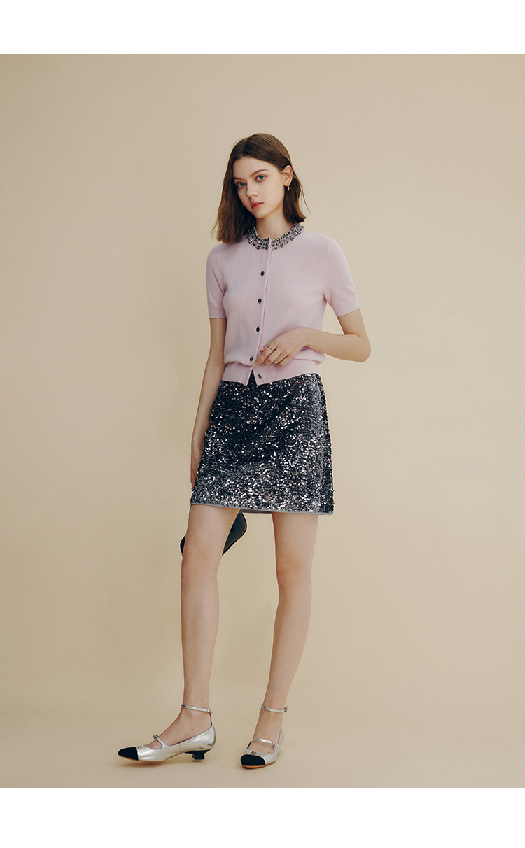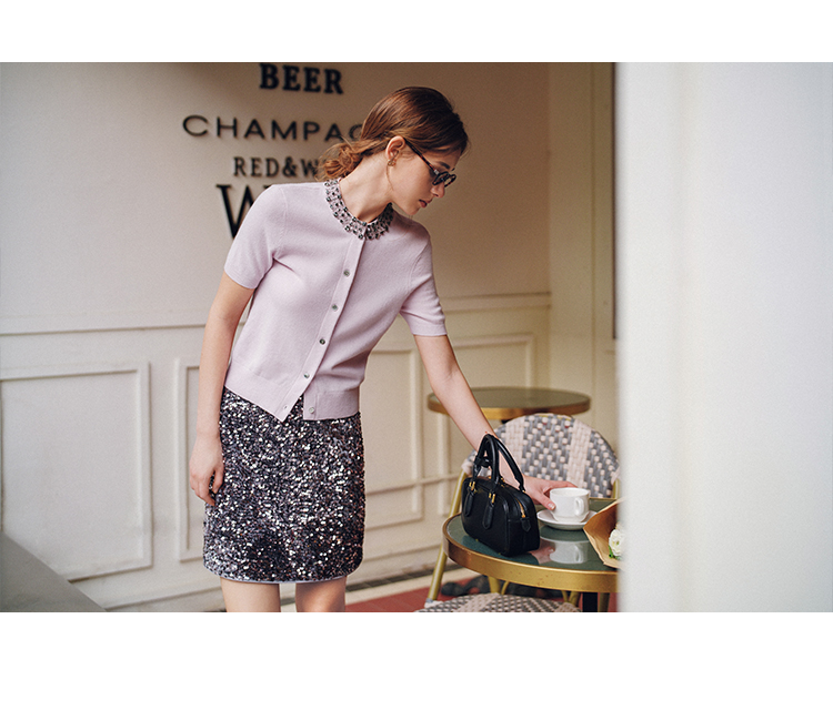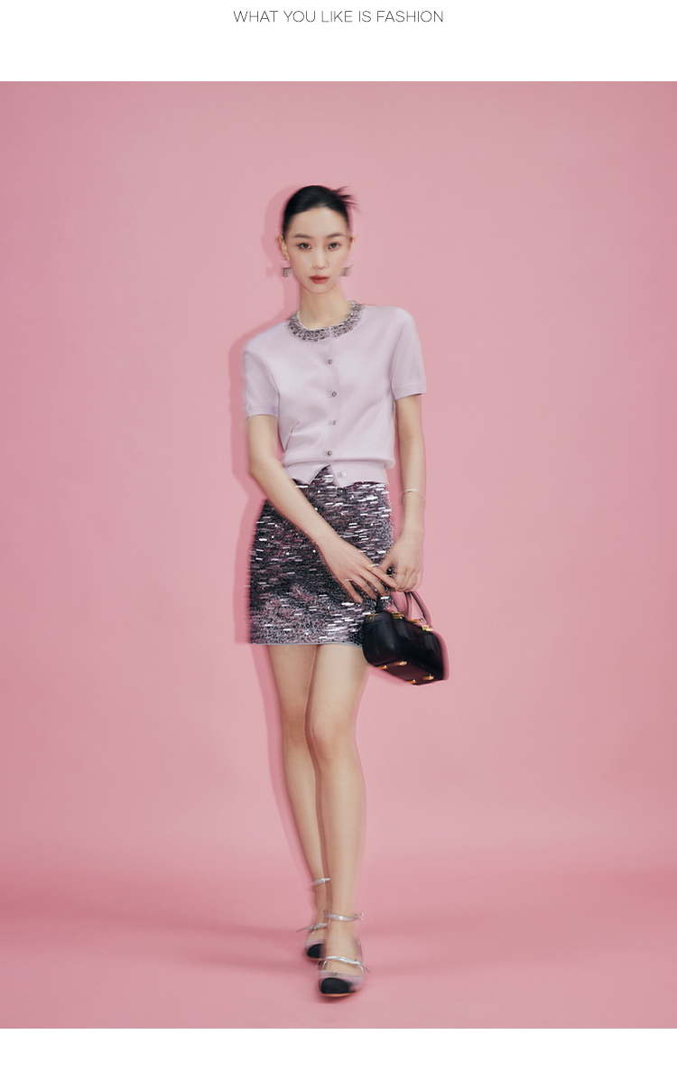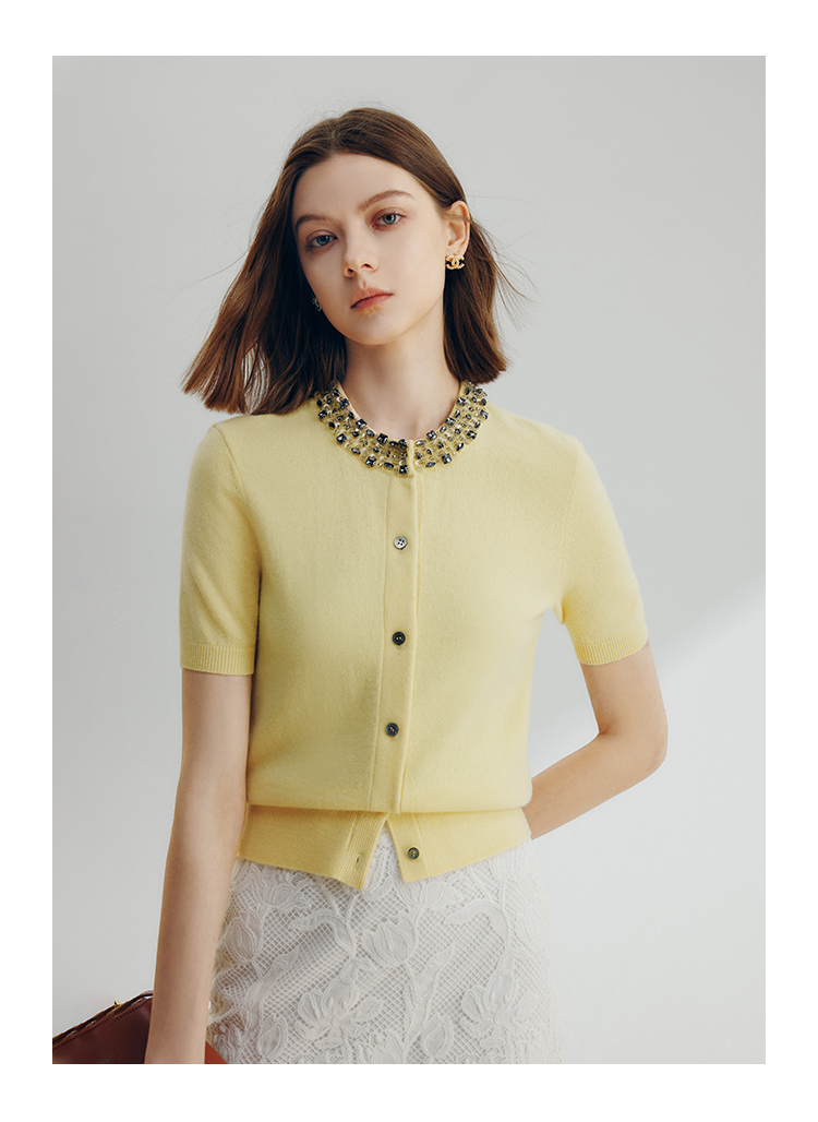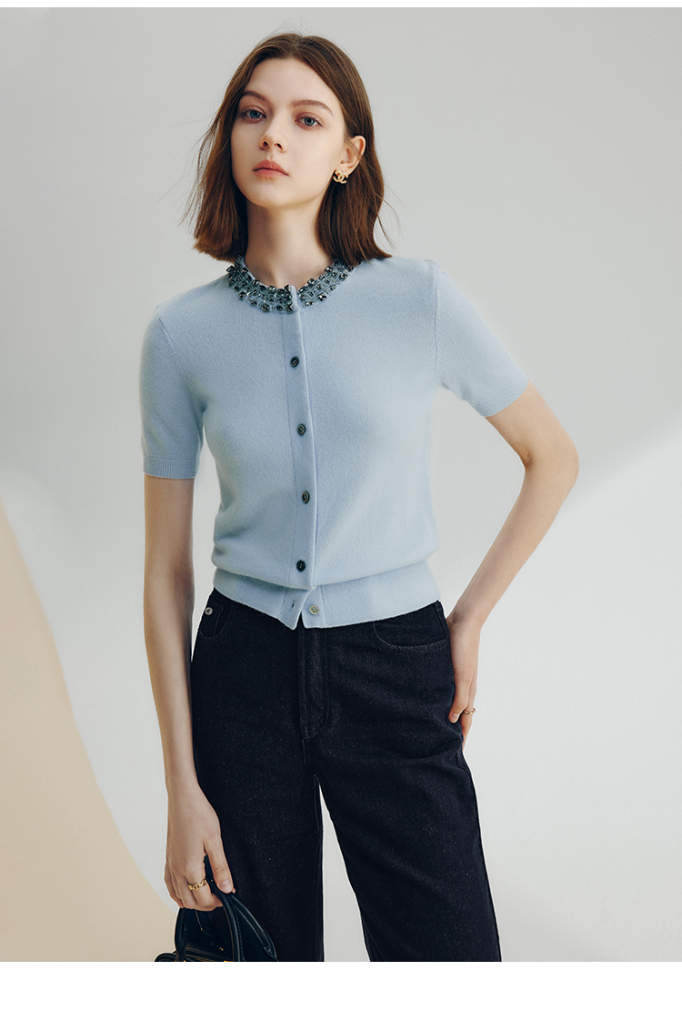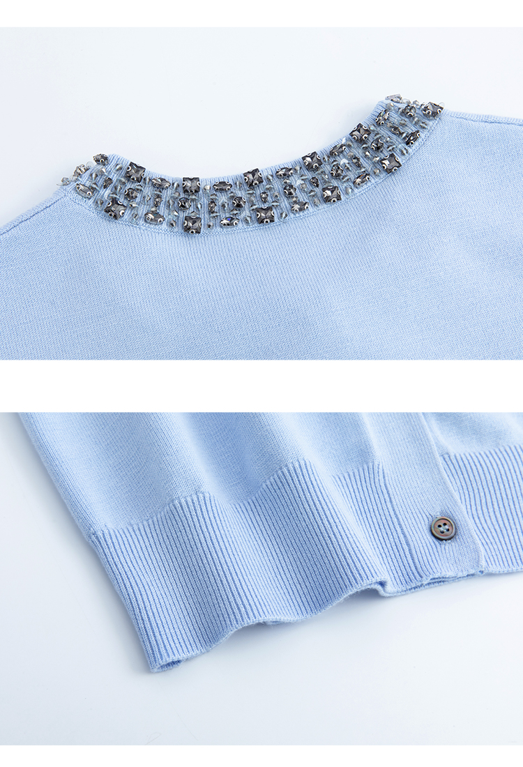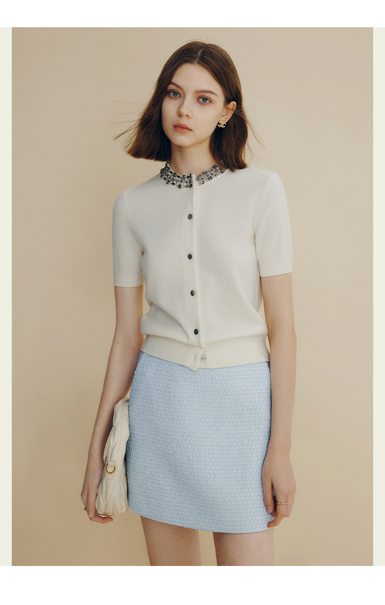 丁摩 【星钻系列】粉色钉珠针织开衫女短袖夏小香风毛衣miu系上衣5ZF-645871