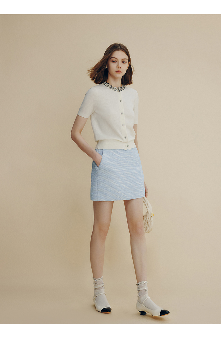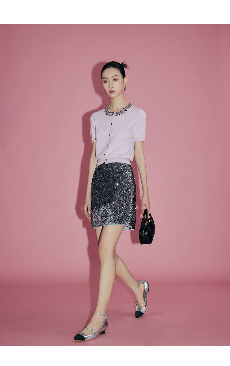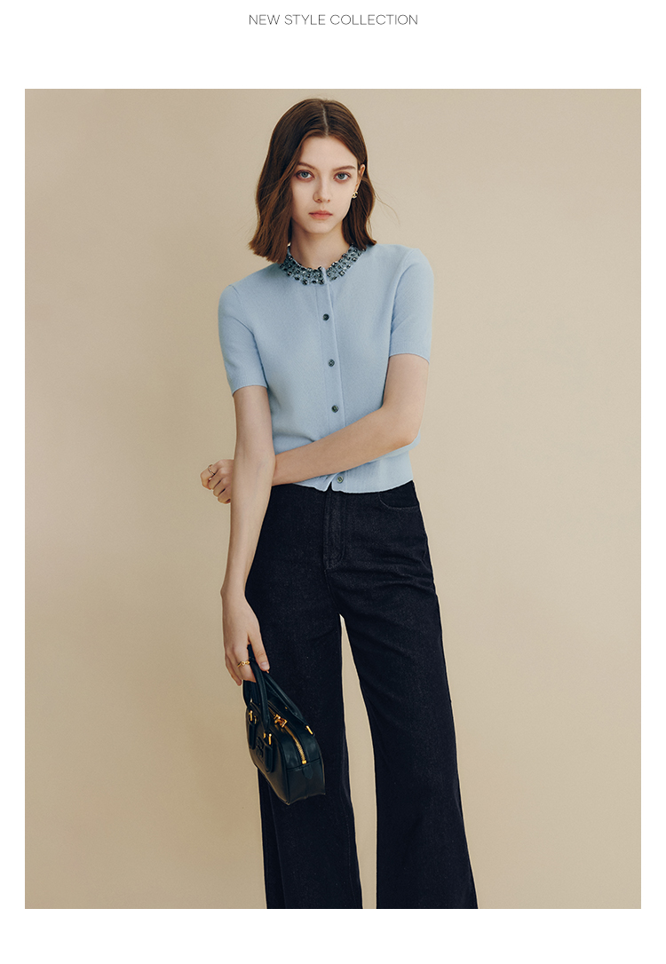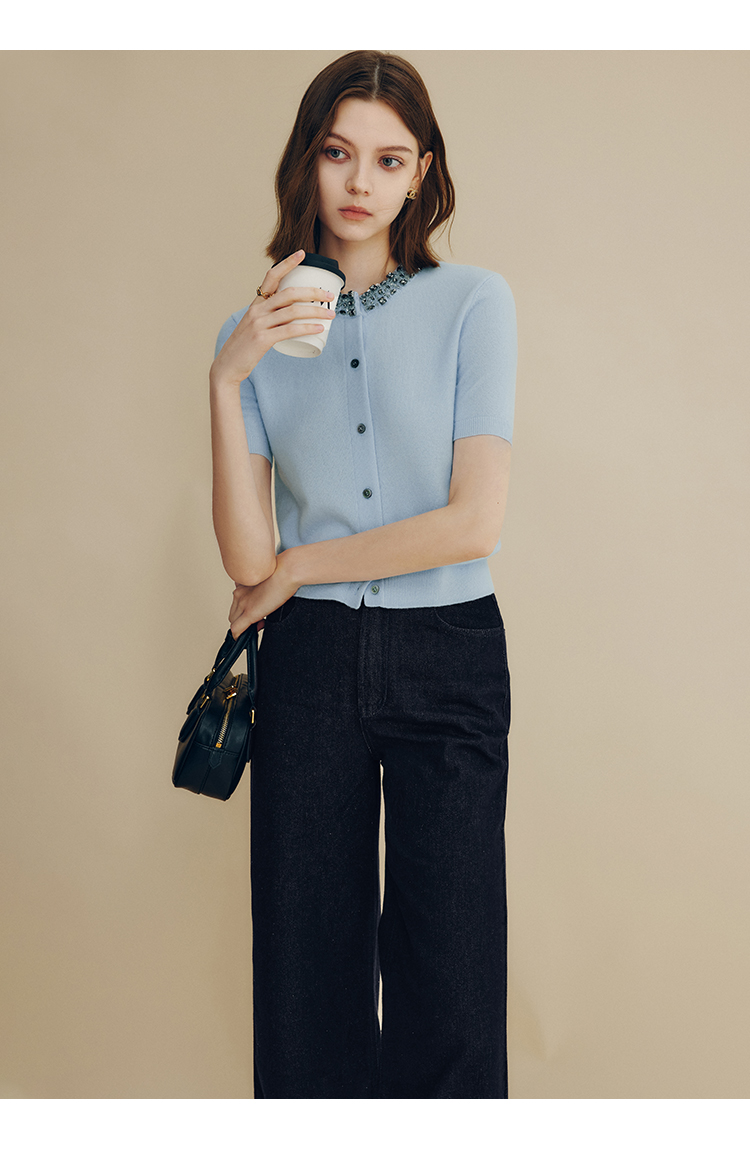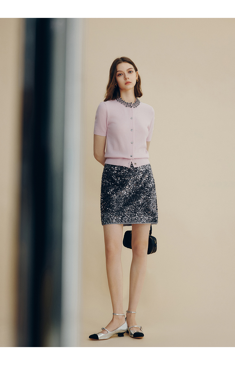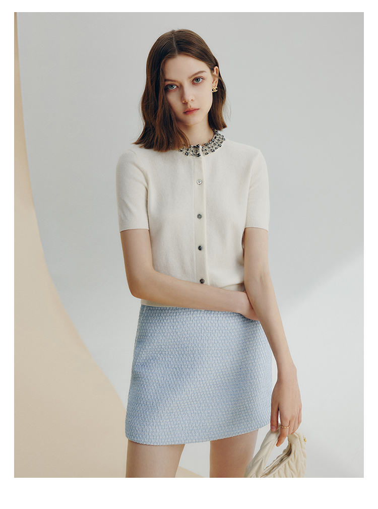丁摩 【星钻系列】粉色钉珠针织开衫女短袖夏小香风毛衣miu系上衣5ZF-645871