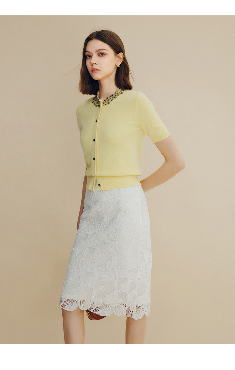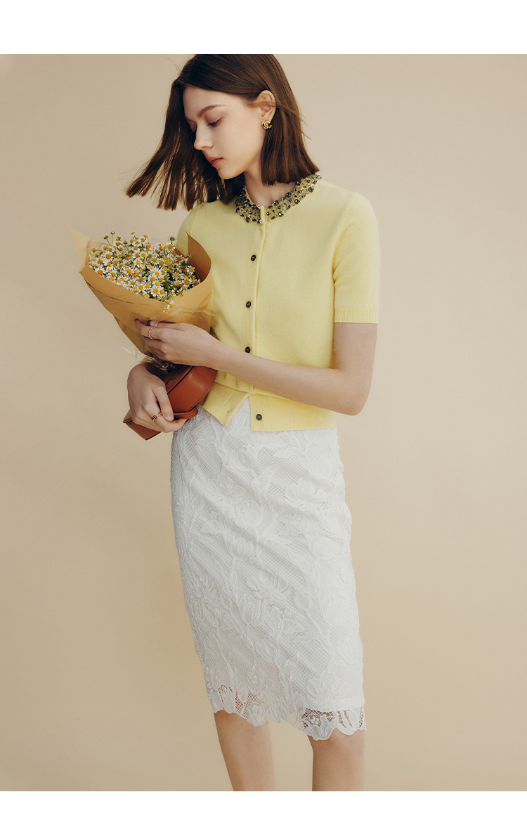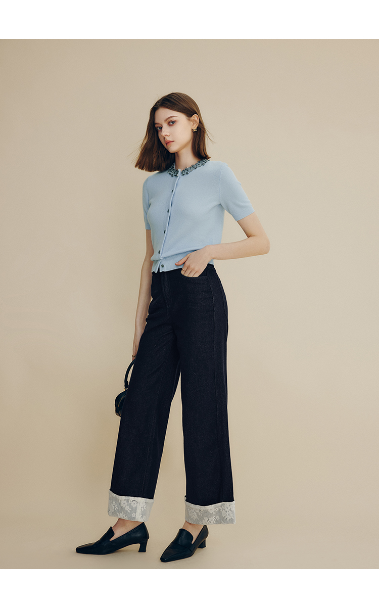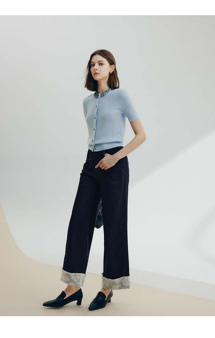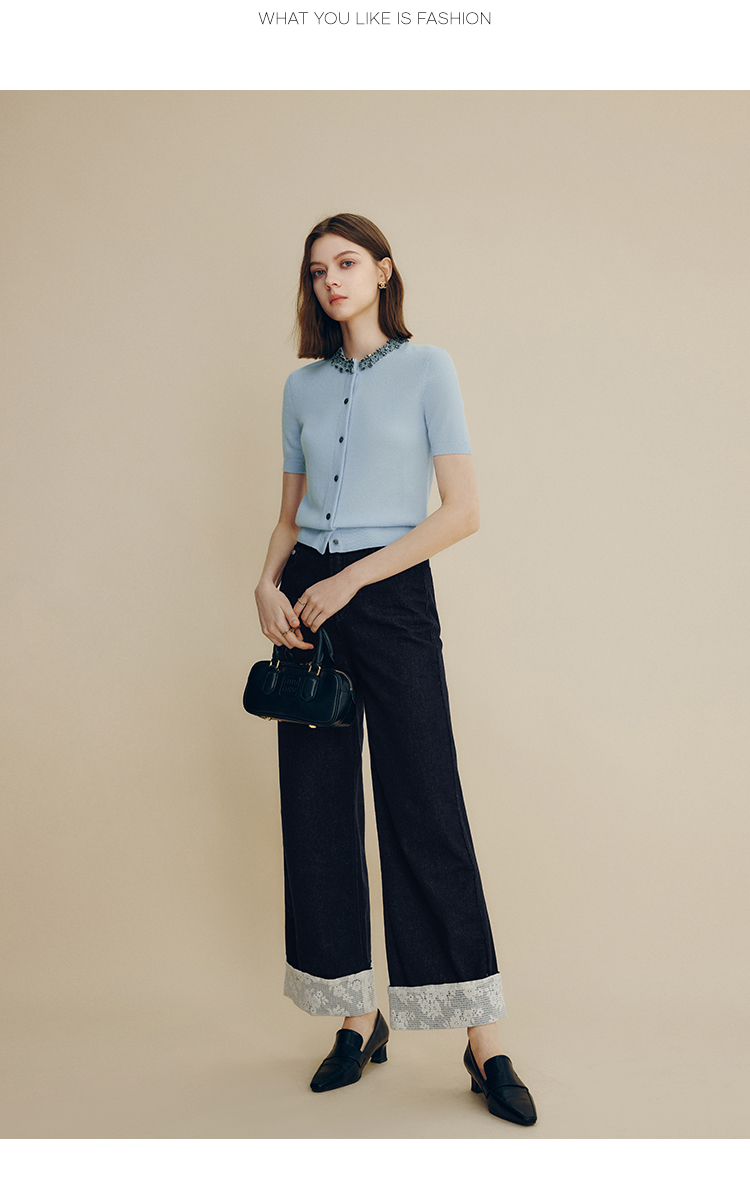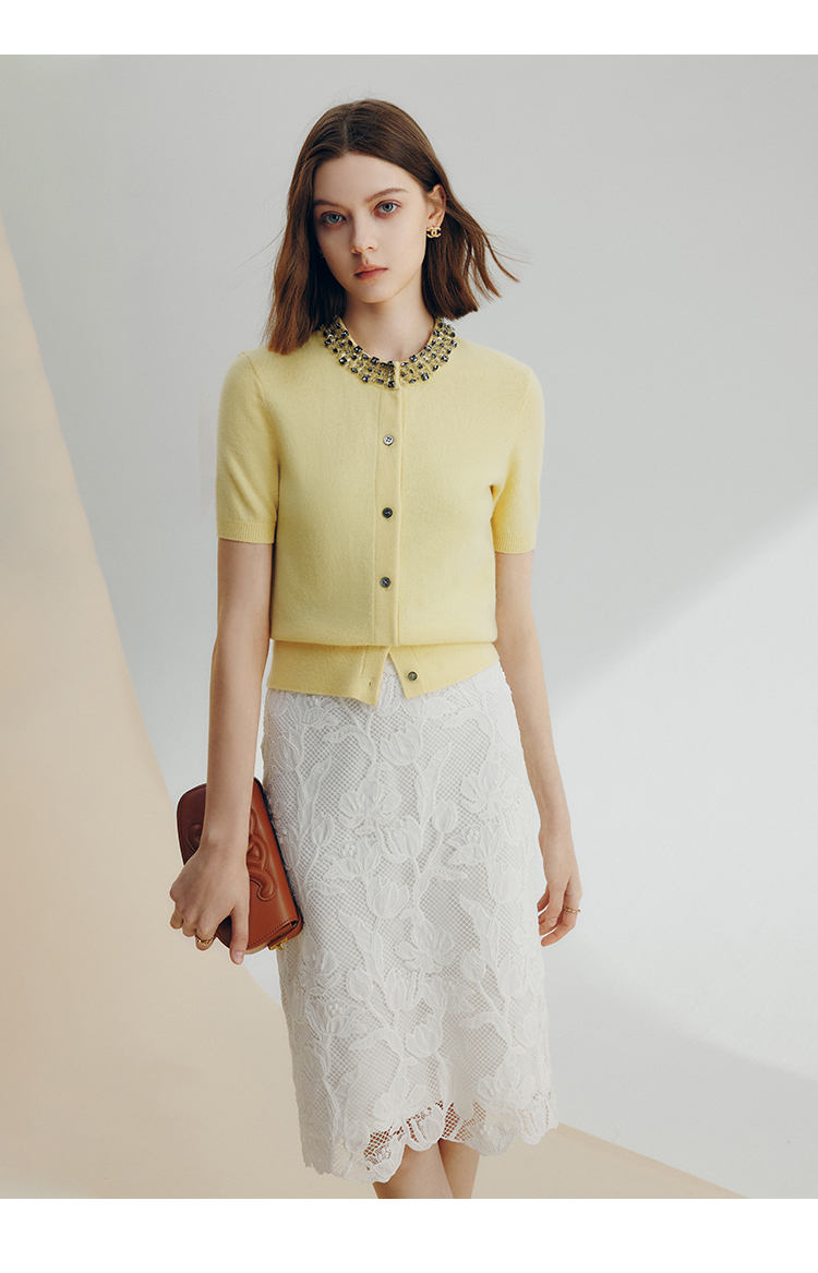 丁摩 【星钻系列】粉色钉珠针织开衫女短袖夏小香风毛衣miu系上衣5ZF-645871