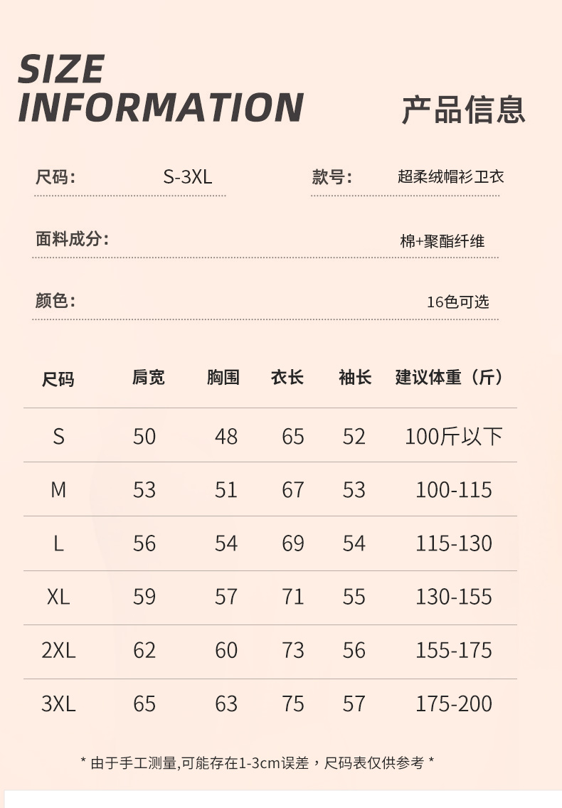 【秋冬必备】【超柔绒内里,巨暖】秋冬新款男女16色华棉加绒加厚连帽卫衣日系复古情侣休闲连帽上衣