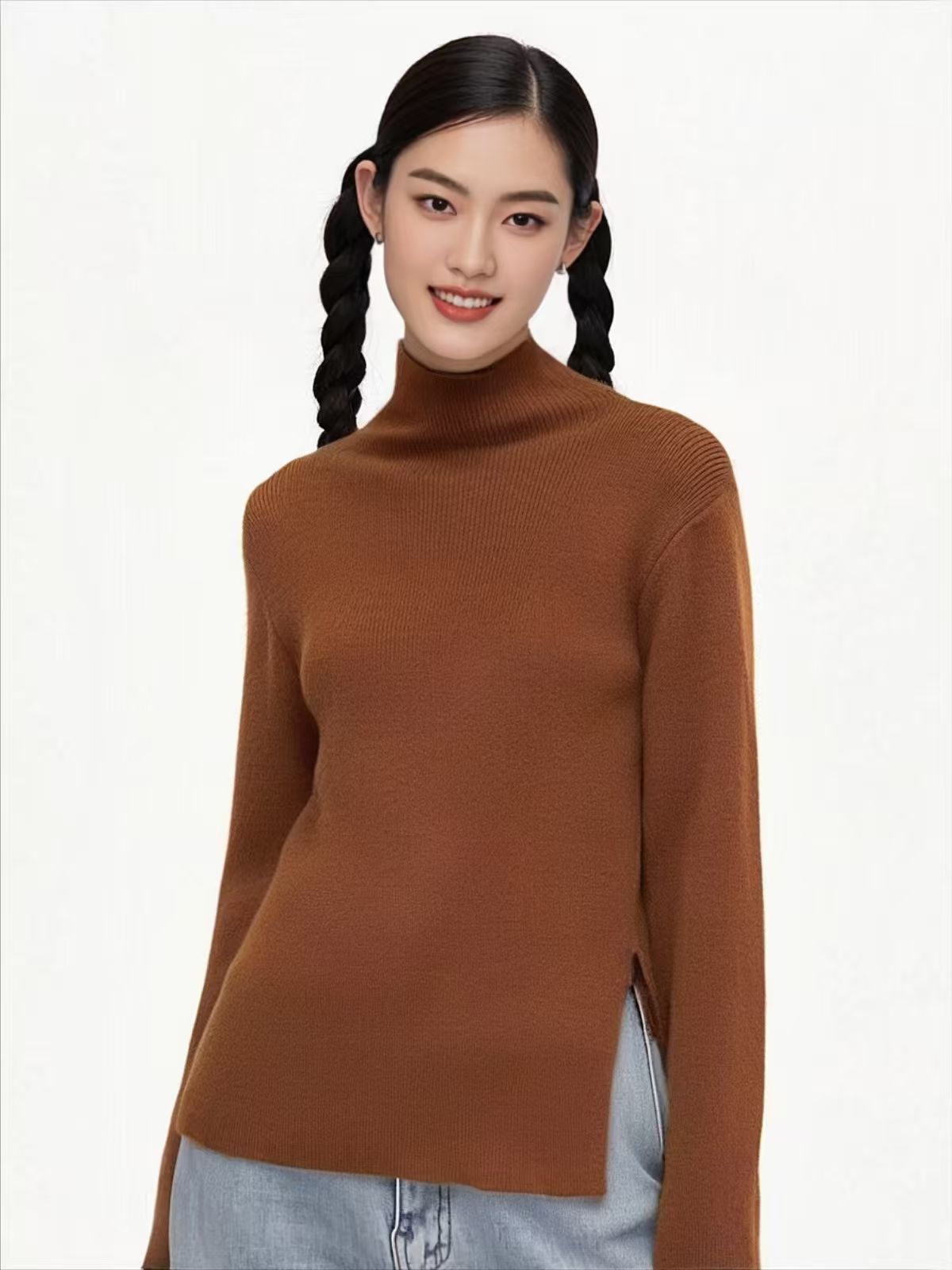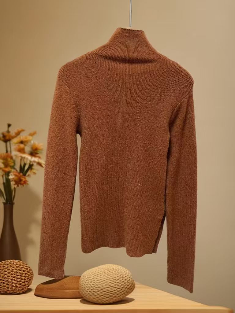 【孤品捡漏】G27侧开叉半高领深咖针织毛衫-喜出