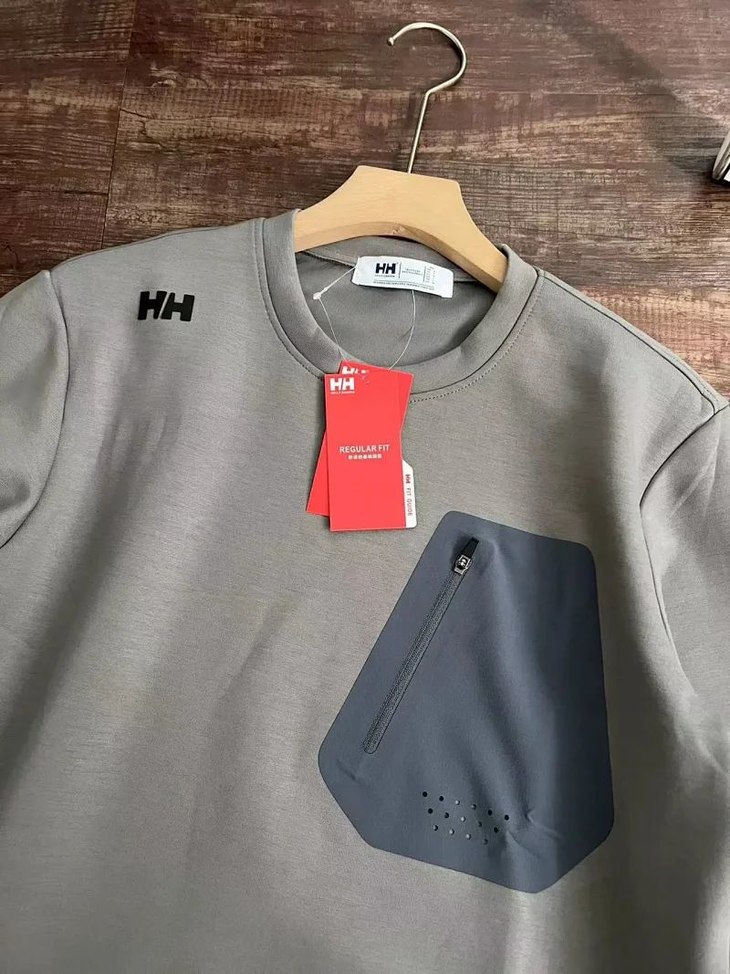 少见的空气层面料,轻盈舒适,透气排汗!上身挺括有型!胸口激光打孔压胶工艺口袋装饰!前后3D立体HHlogo点缀!