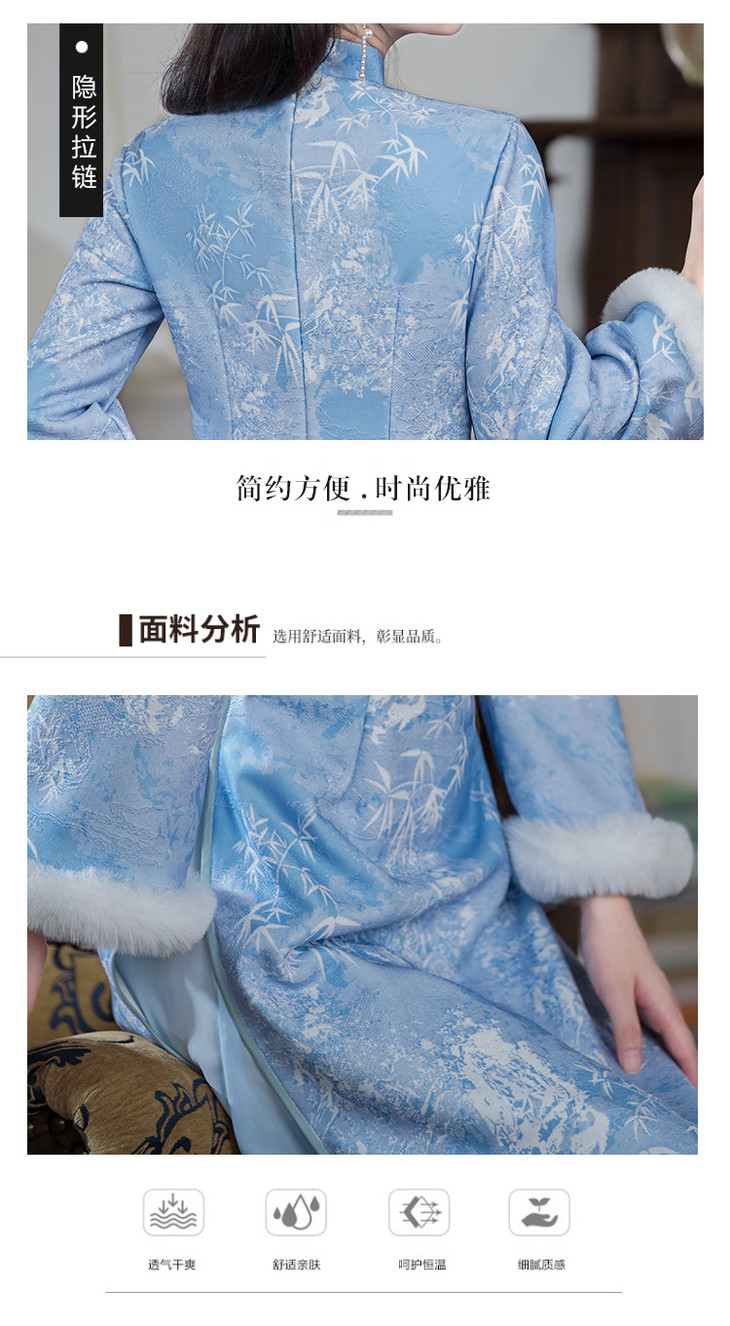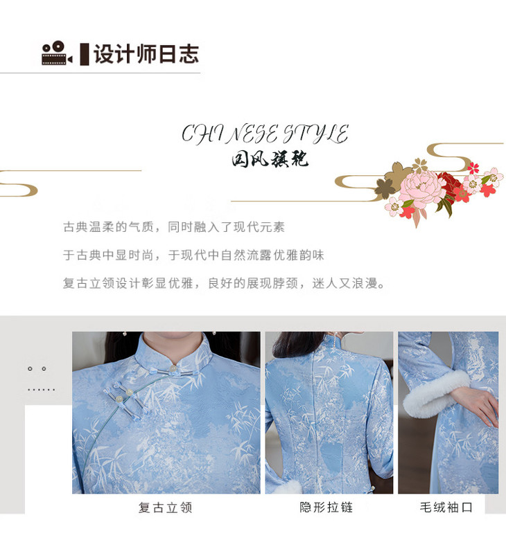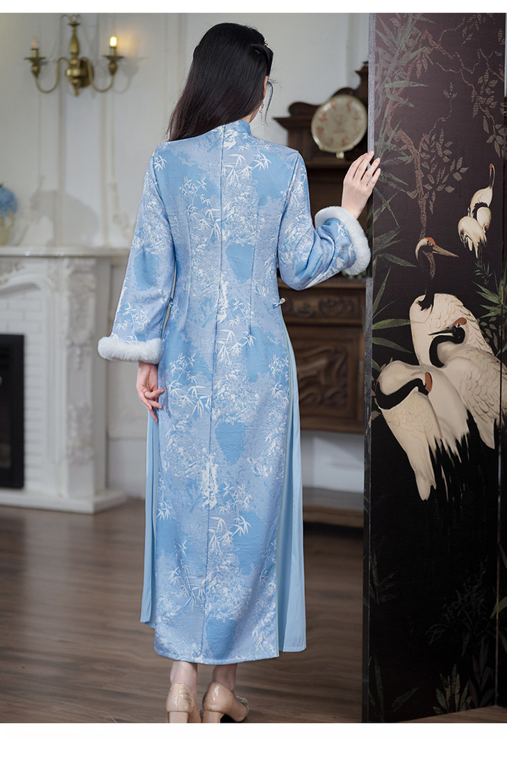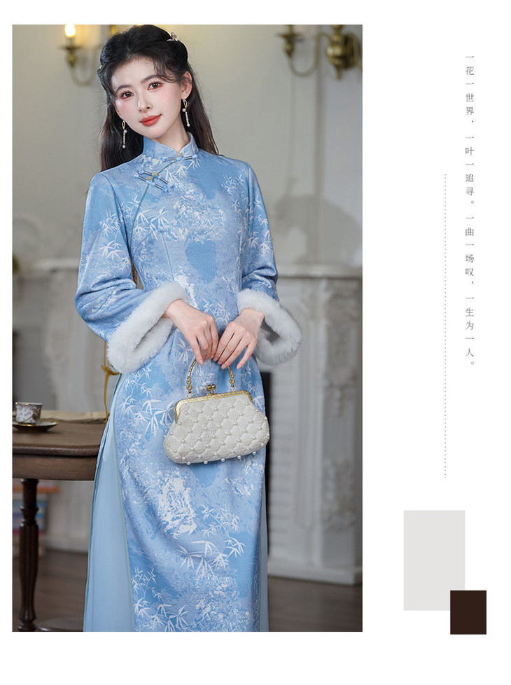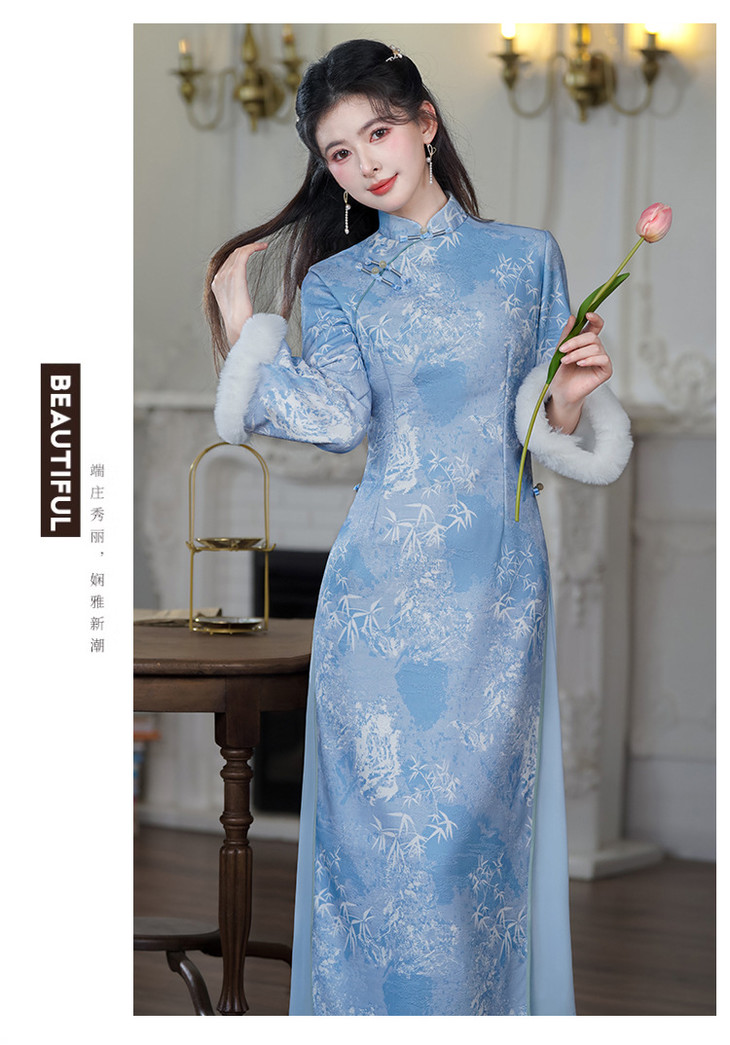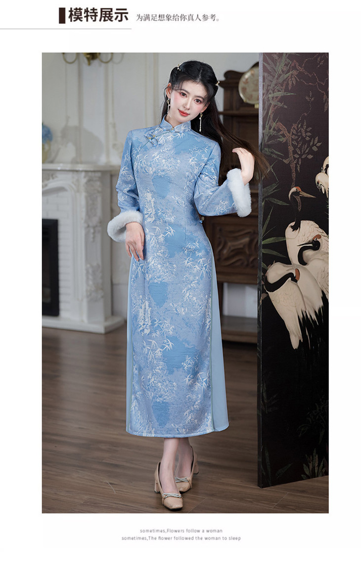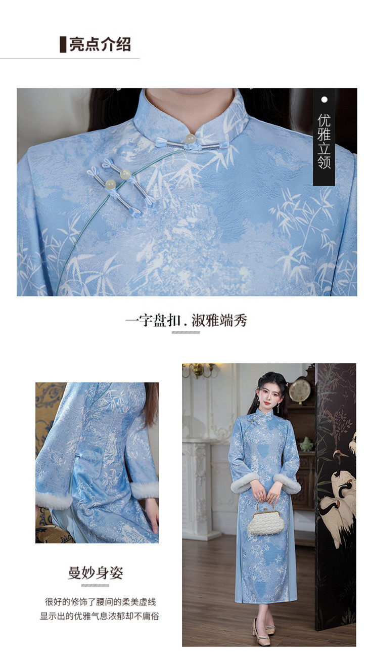 新款蓝色淑女改良大袖奥黛旗袍TM7940