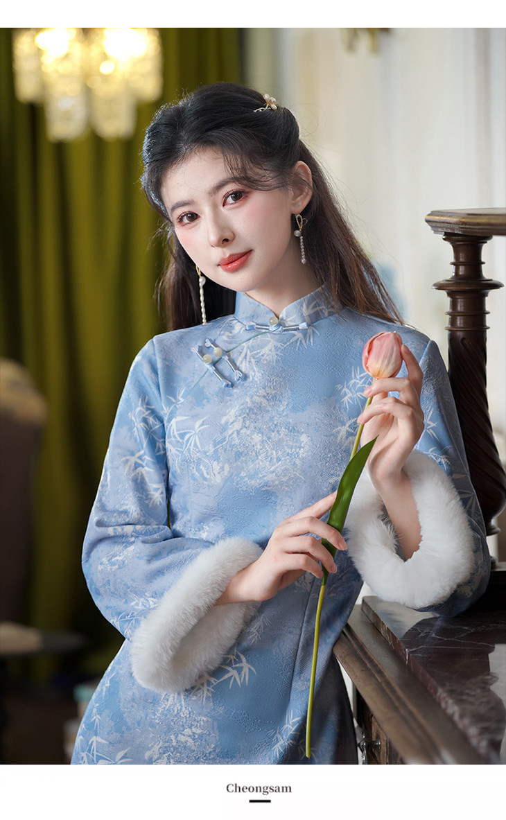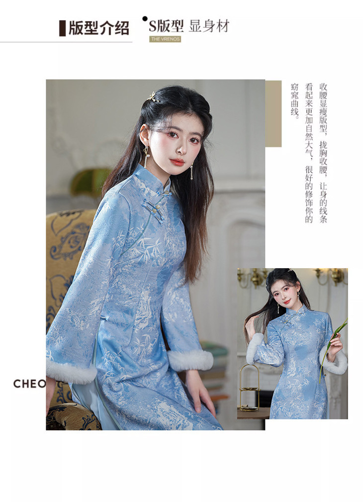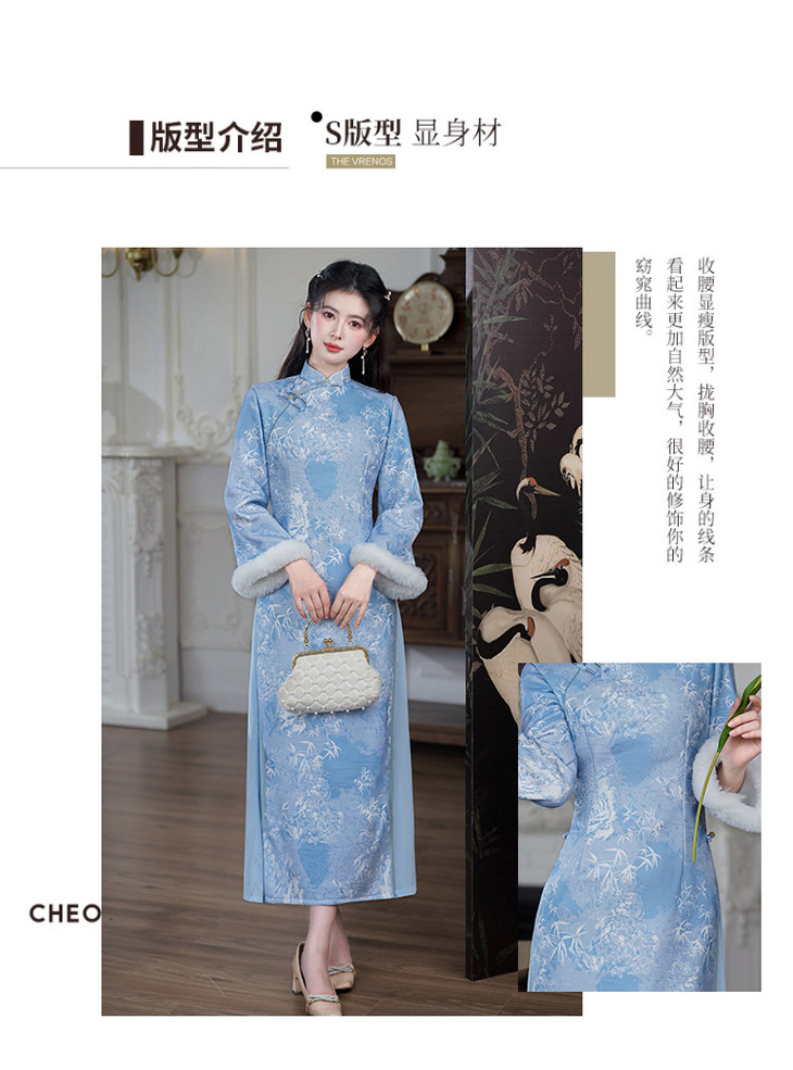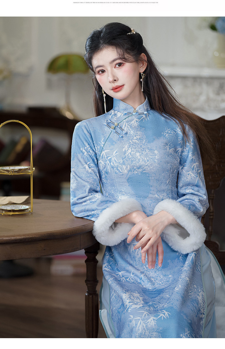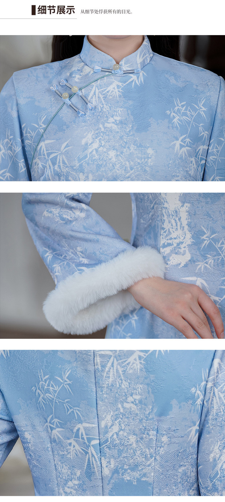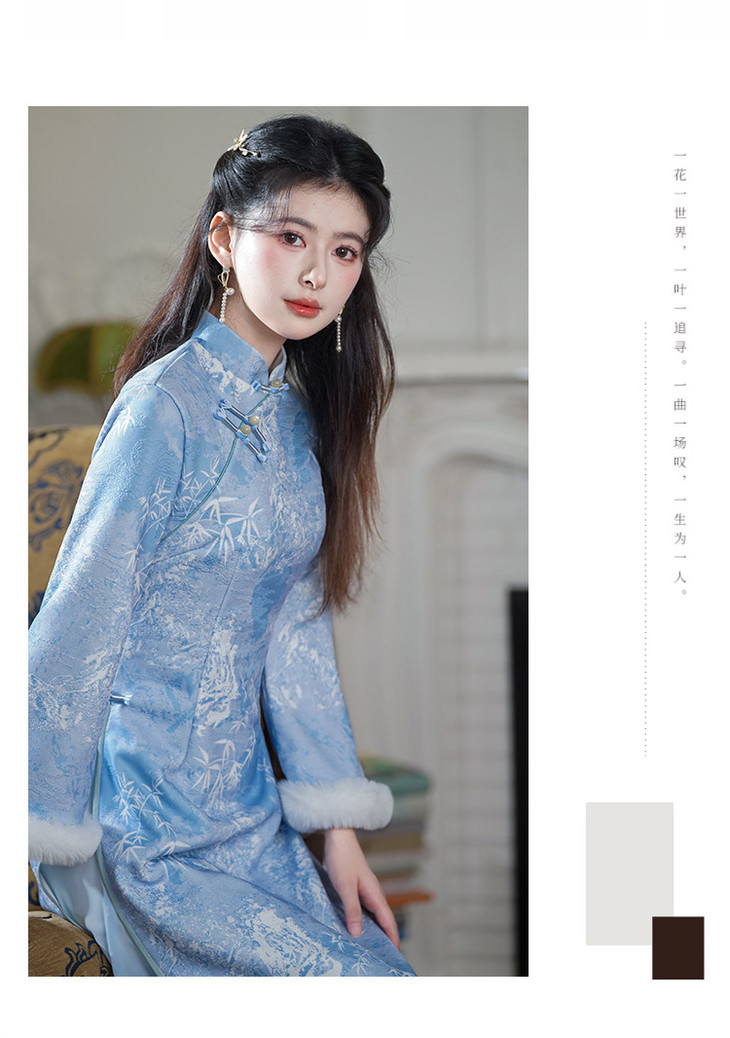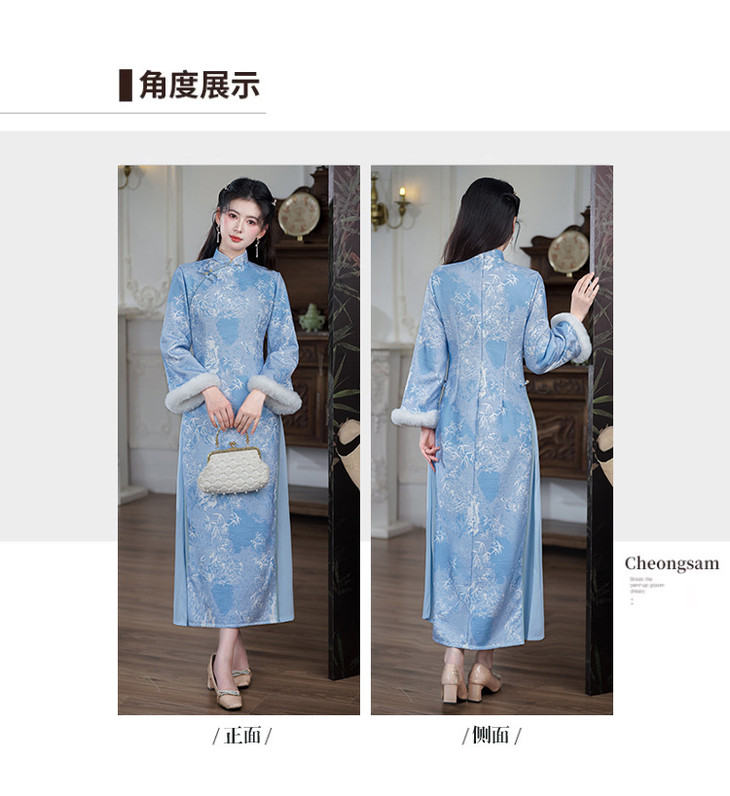 新款蓝色淑女改良大袖奥黛旗袍TM7940