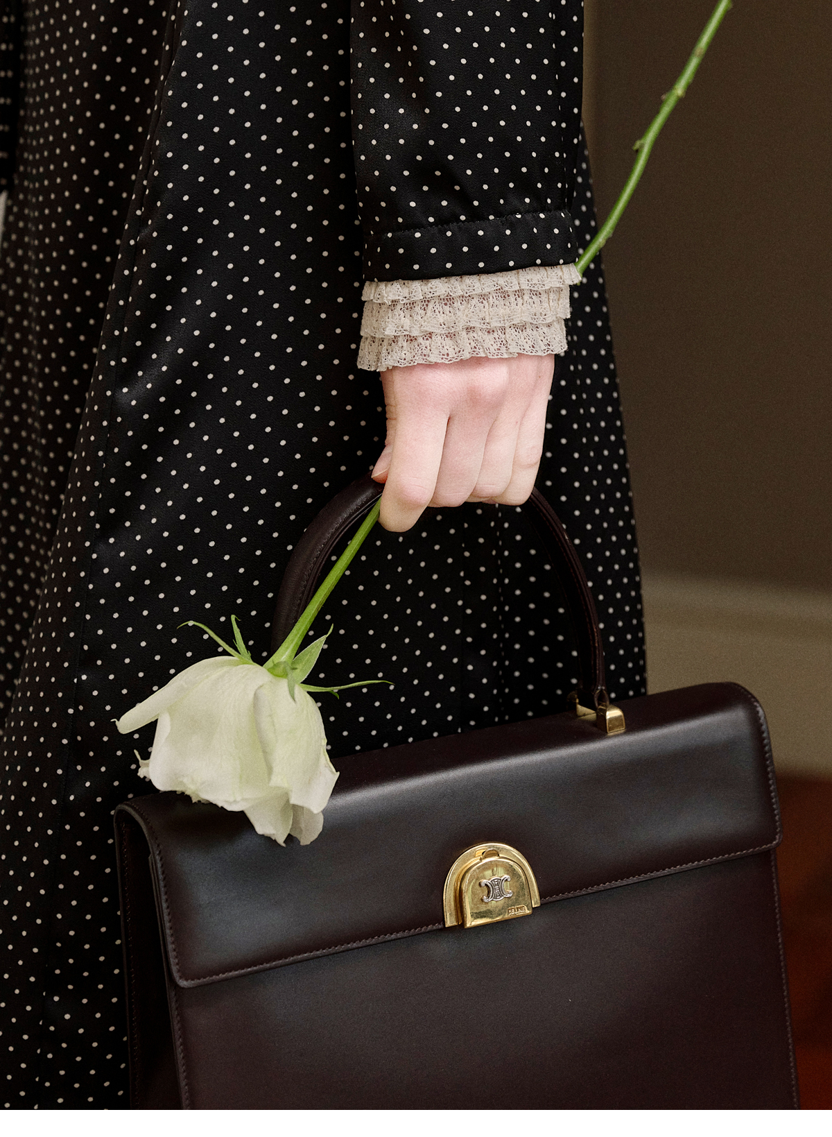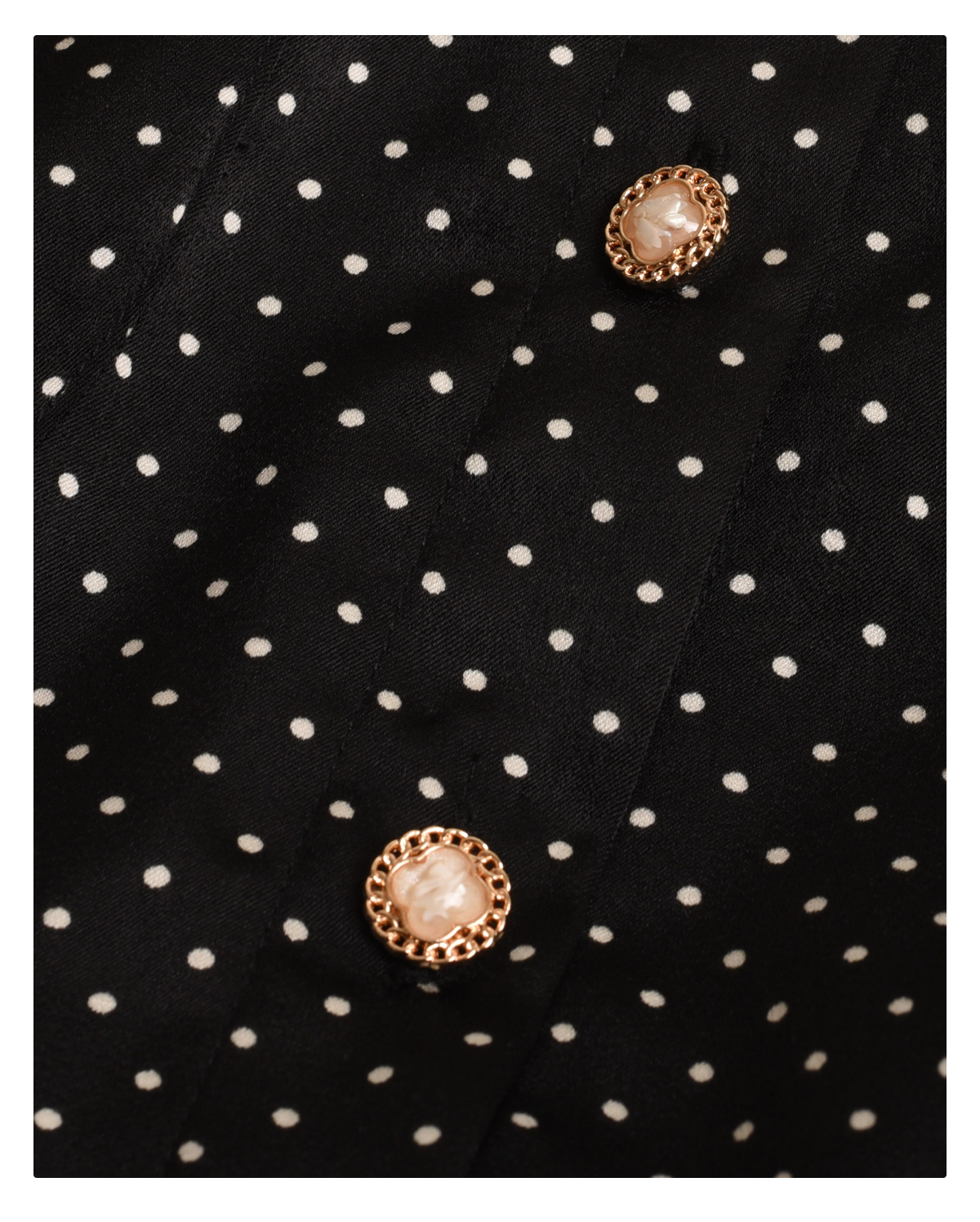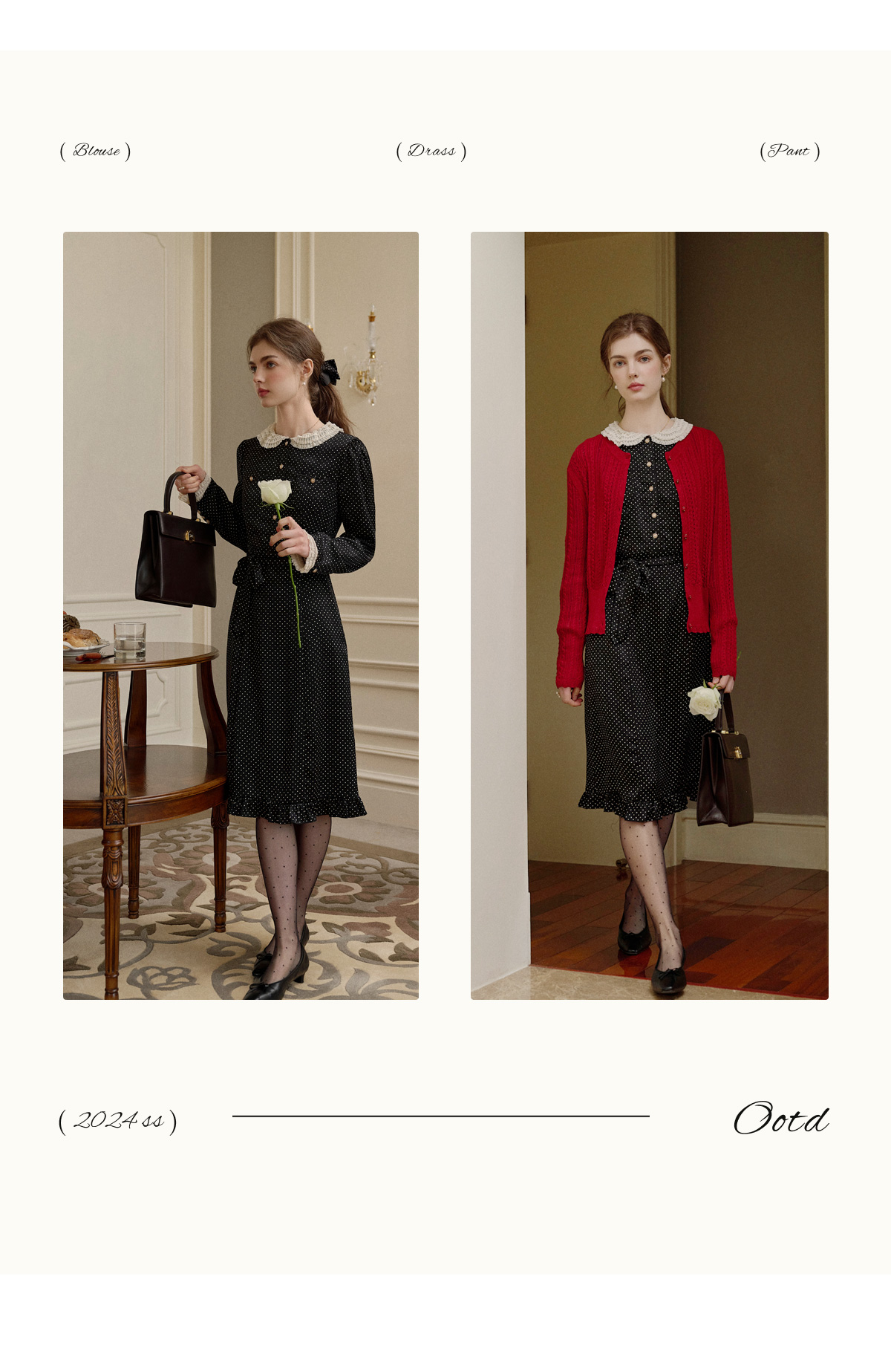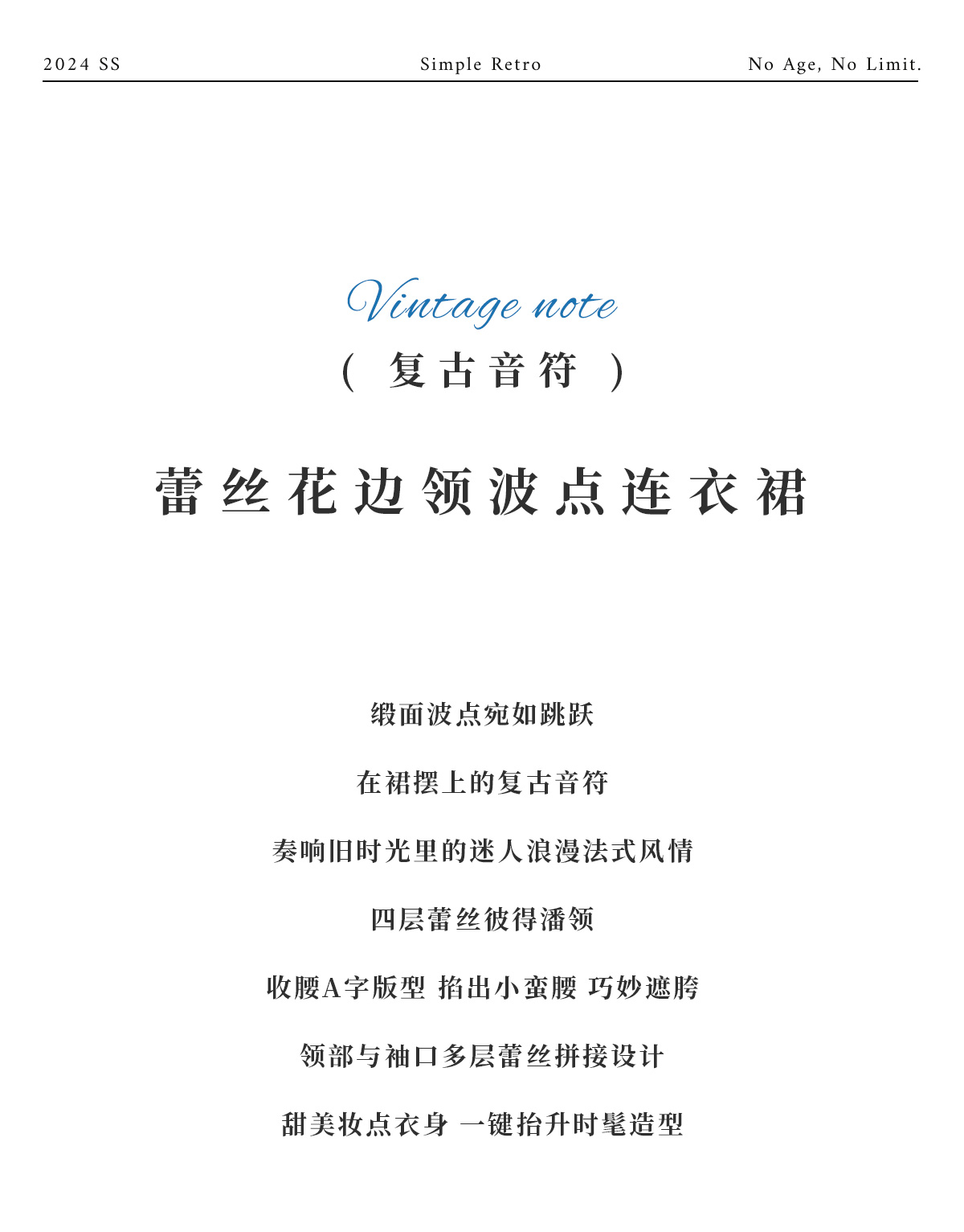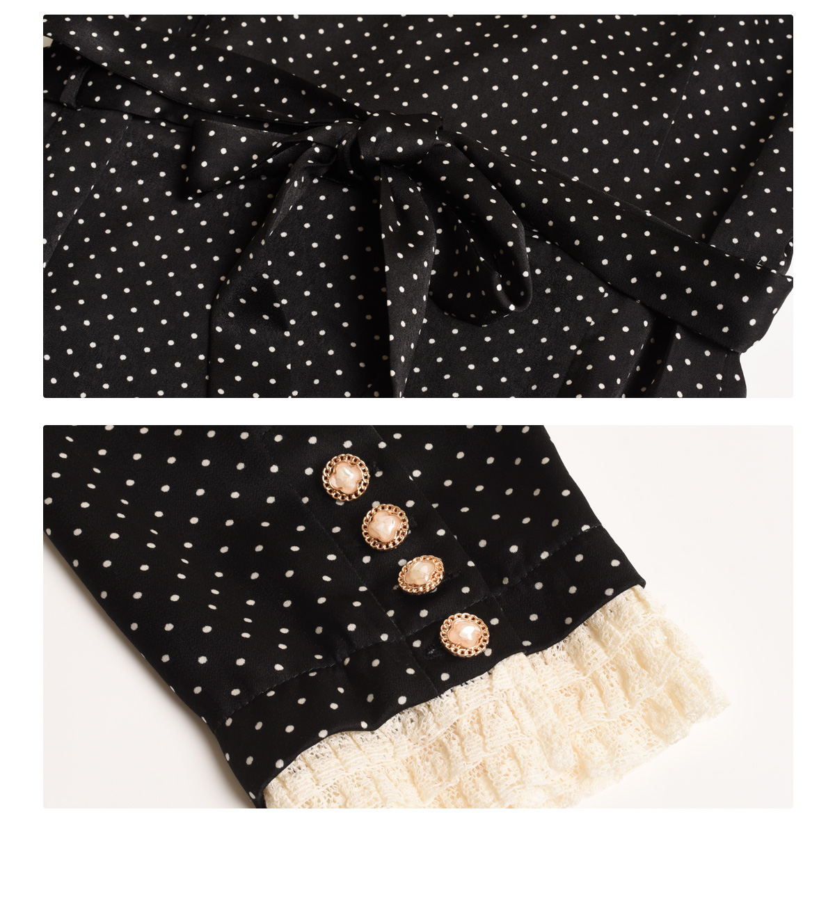 SimpleRetro复古音符 蕾丝花边领波点连衣裙女长袖显瘦气质小黑裙