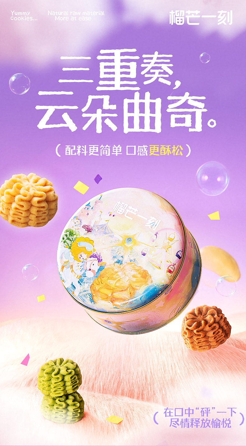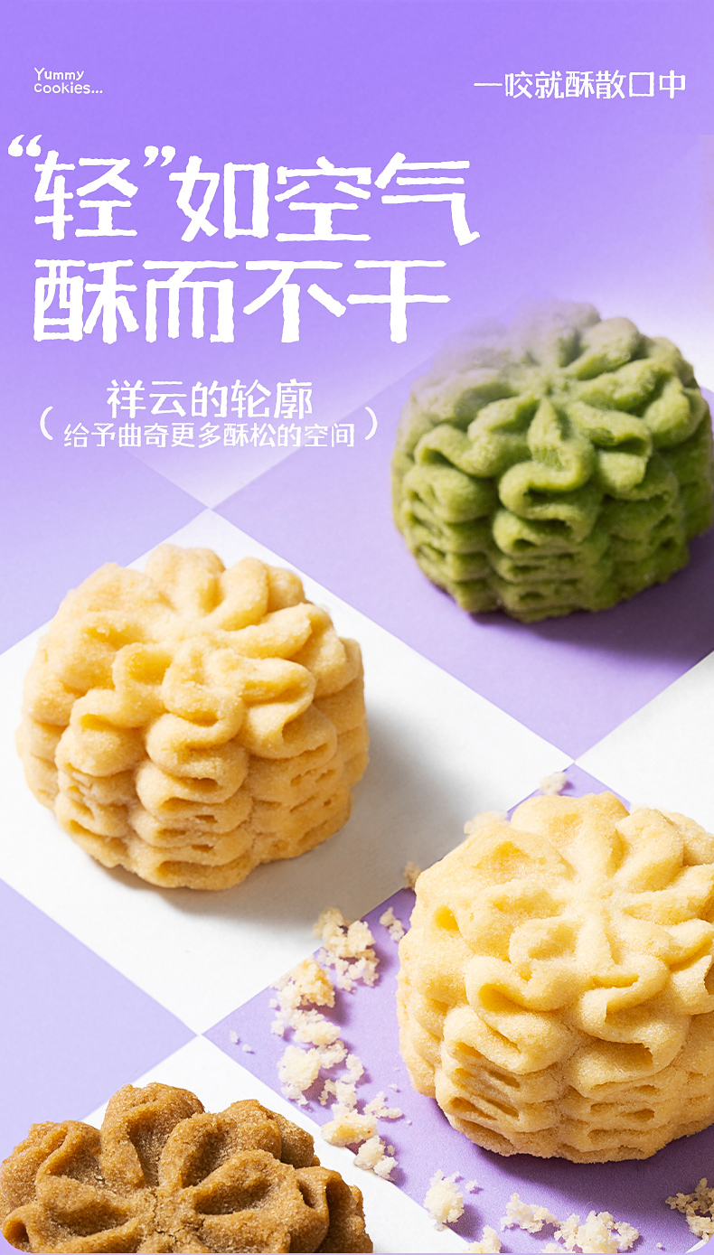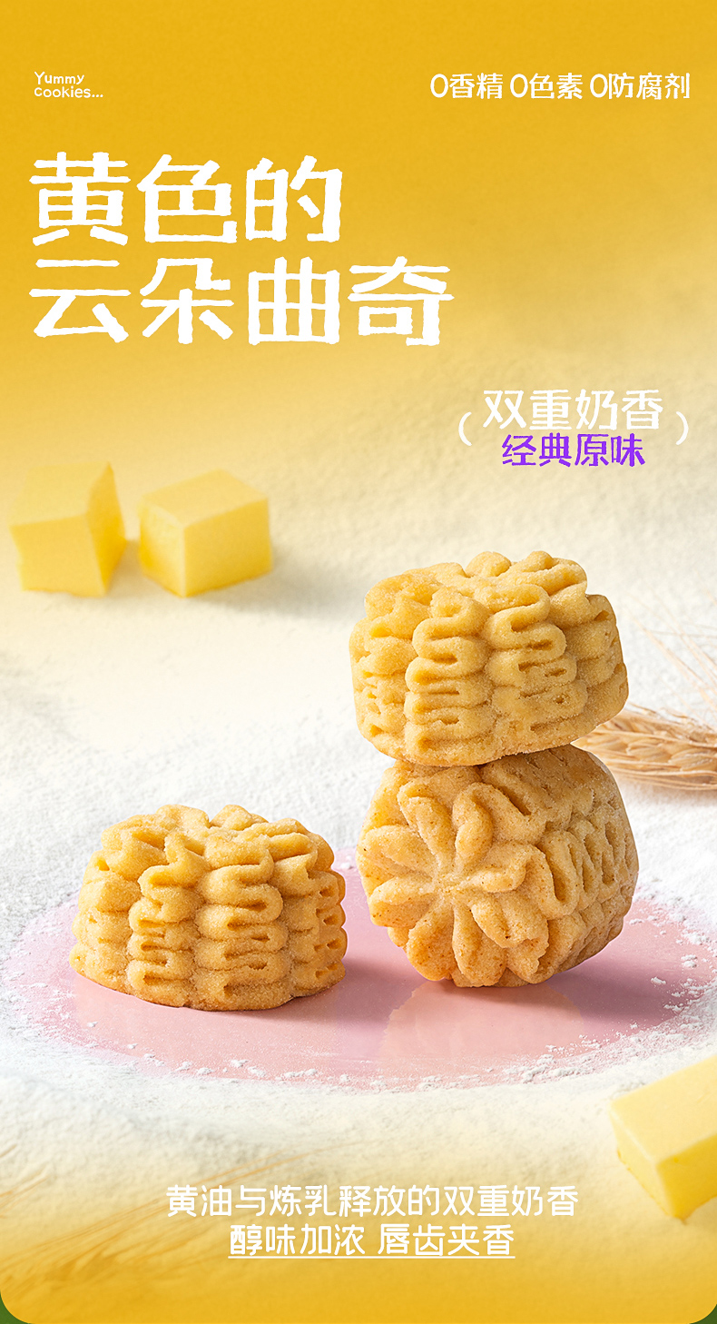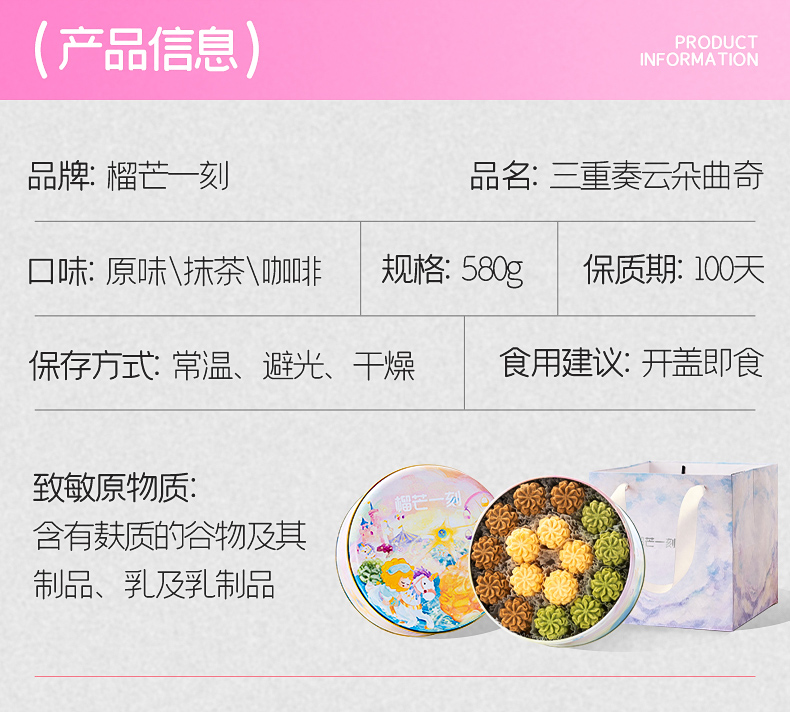 【榴芒一刻】三重奏云朵曲奇饼干三拼原味抹茶咖啡580g/榴莲云朵曲奇饼干580g双层