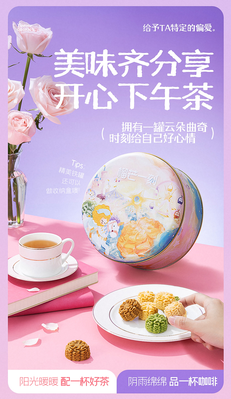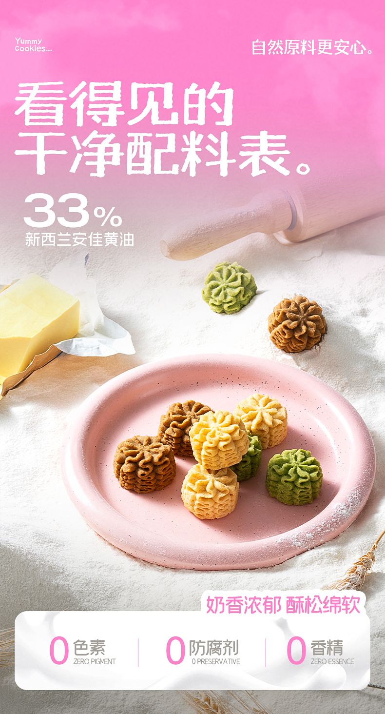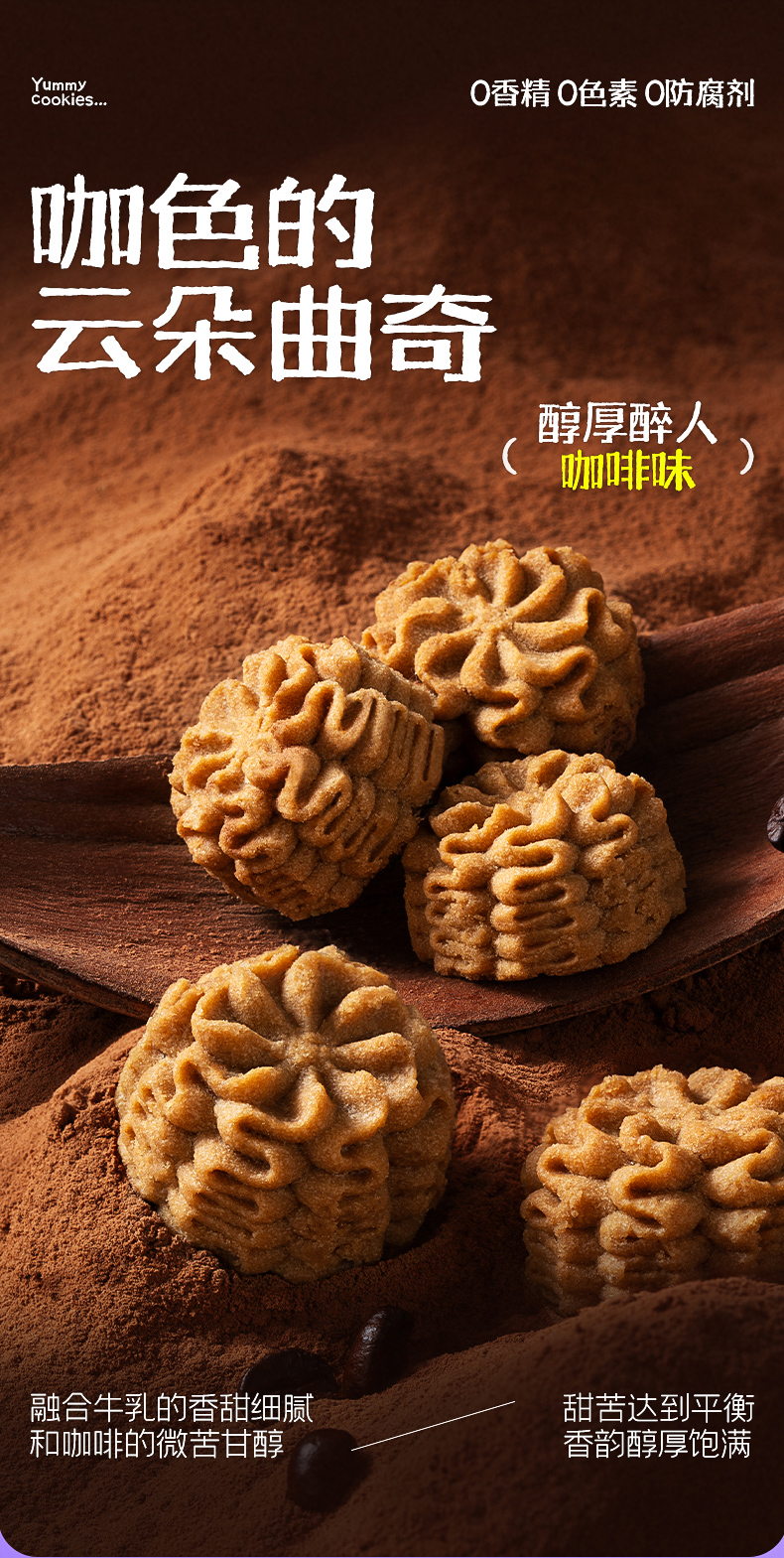 【榴芒一刻】三重奏云朵曲奇饼干三拼原味抹茶咖啡580g/榴莲云朵曲奇饼干580g双层