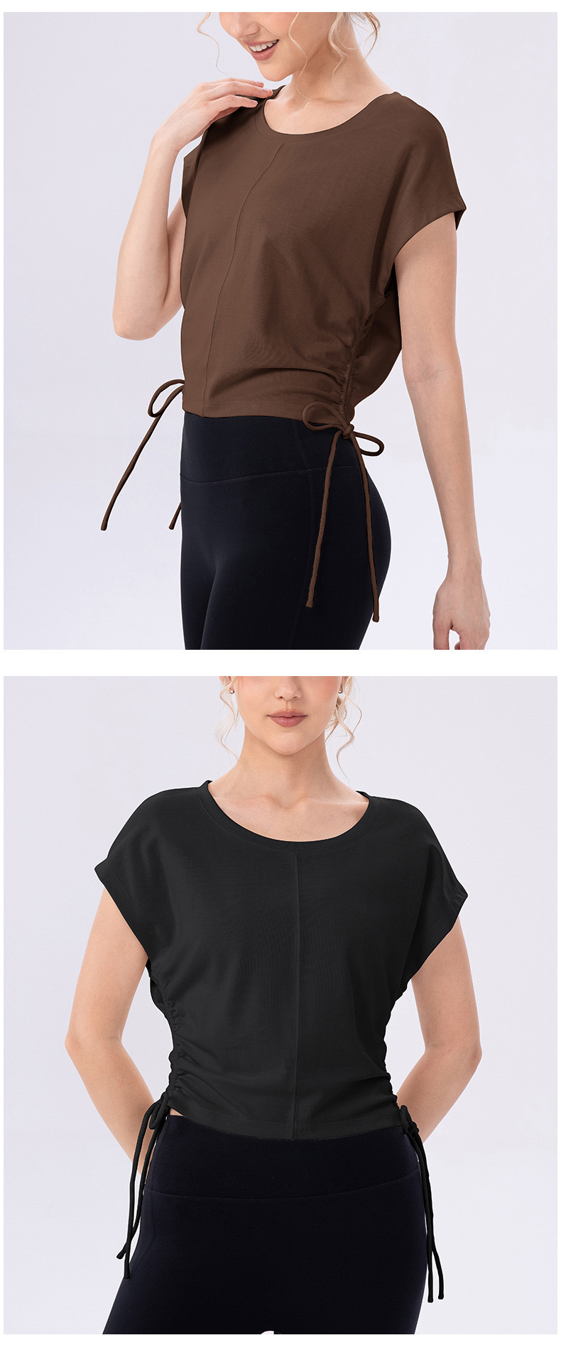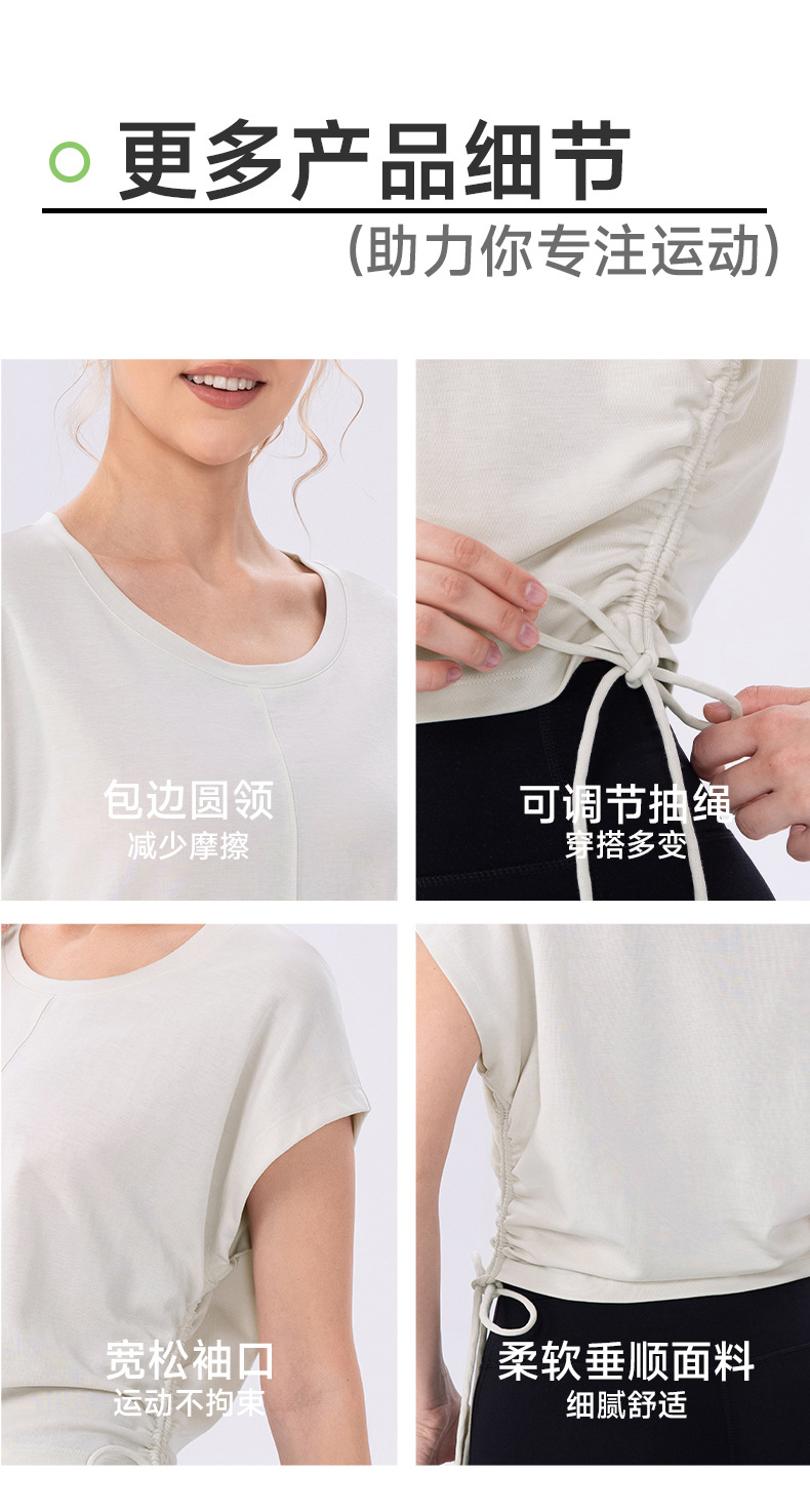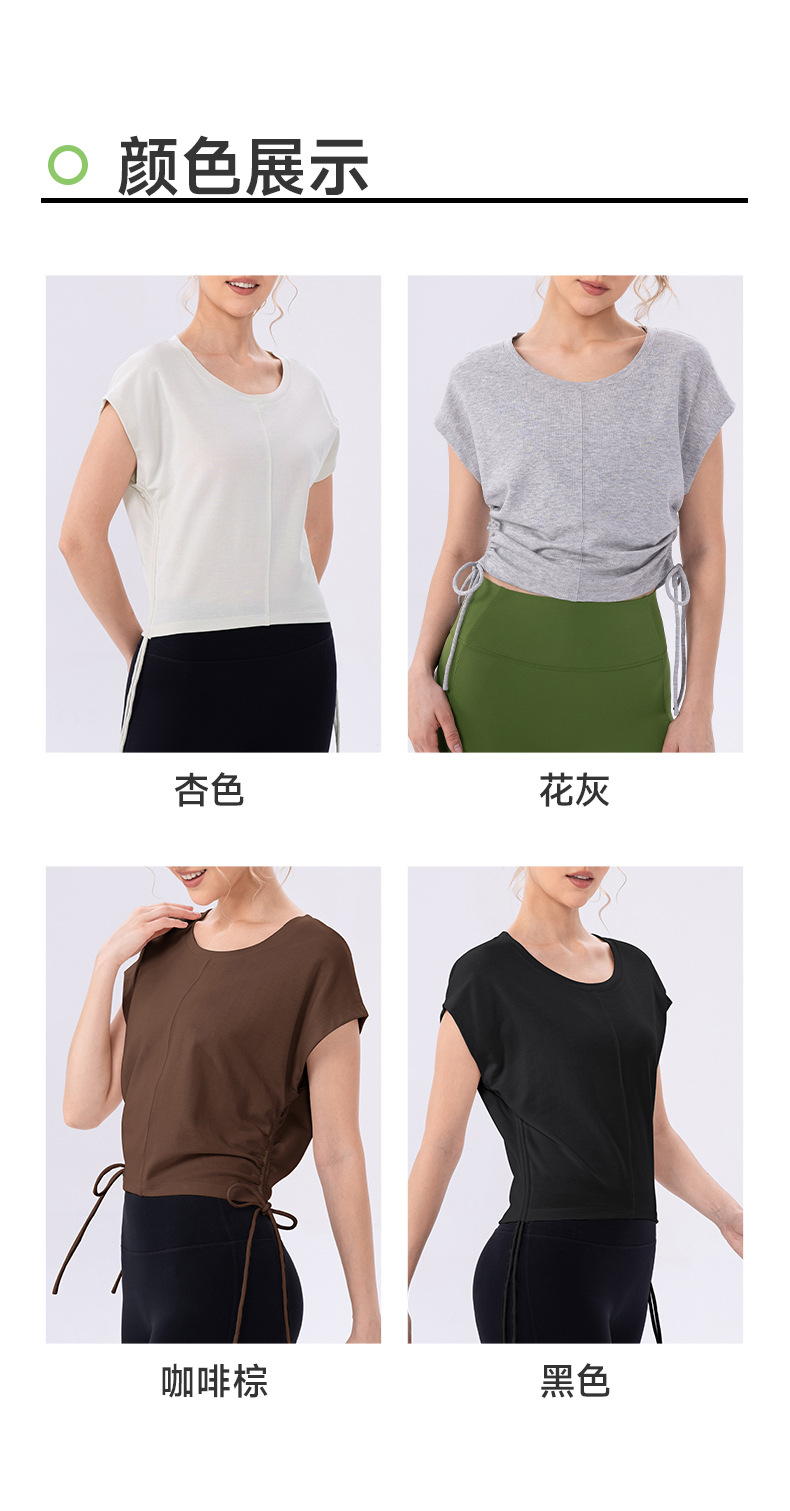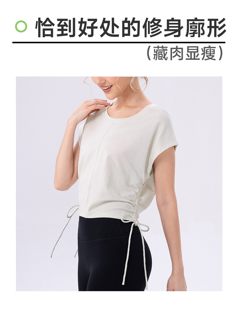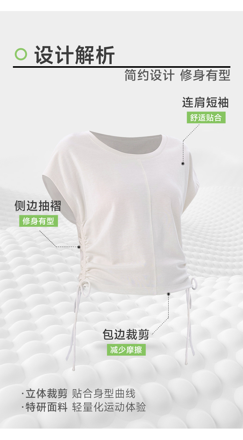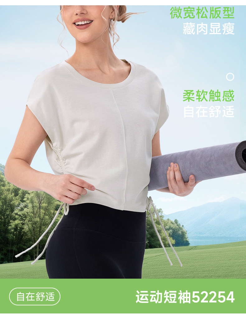 跃牌【欲动春风】系列 新款瑜伽服上衣女侧腰收褶显瘦圆领运动短袖户外健身休闲t恤52254