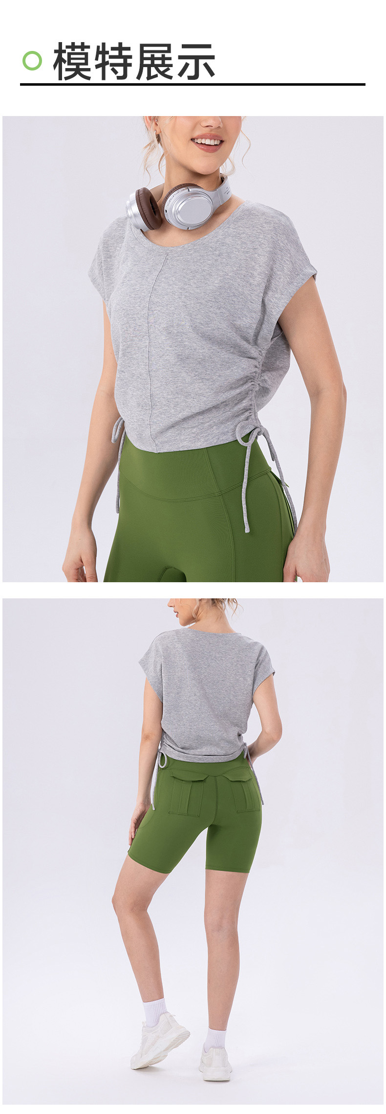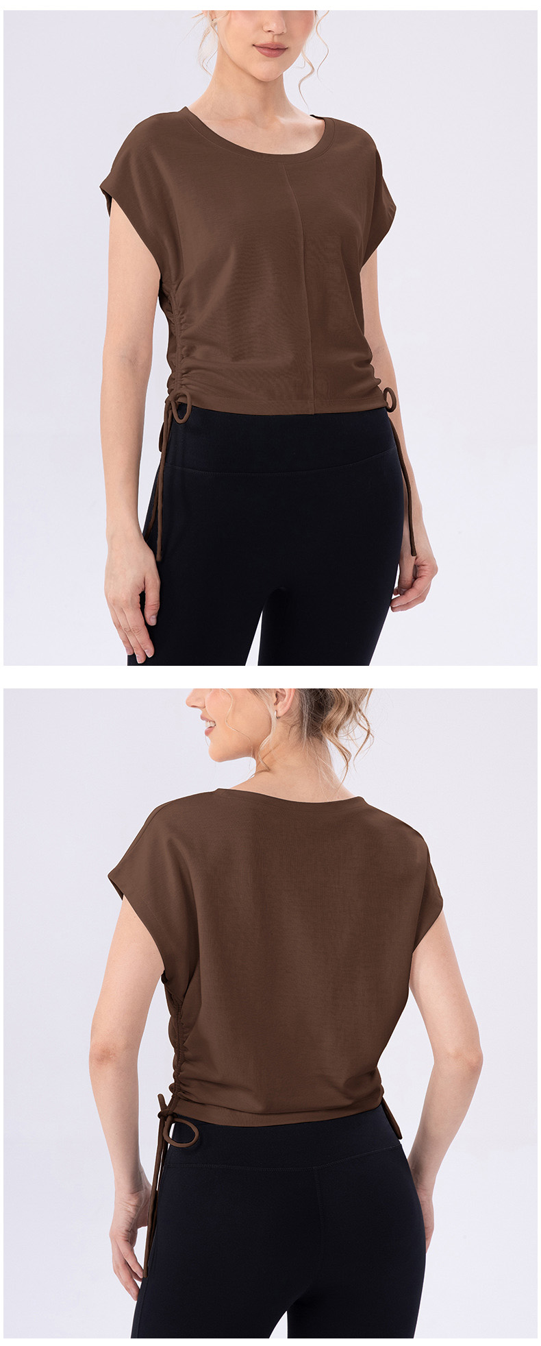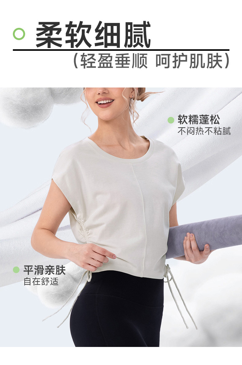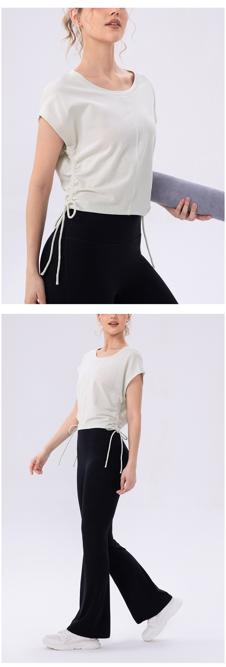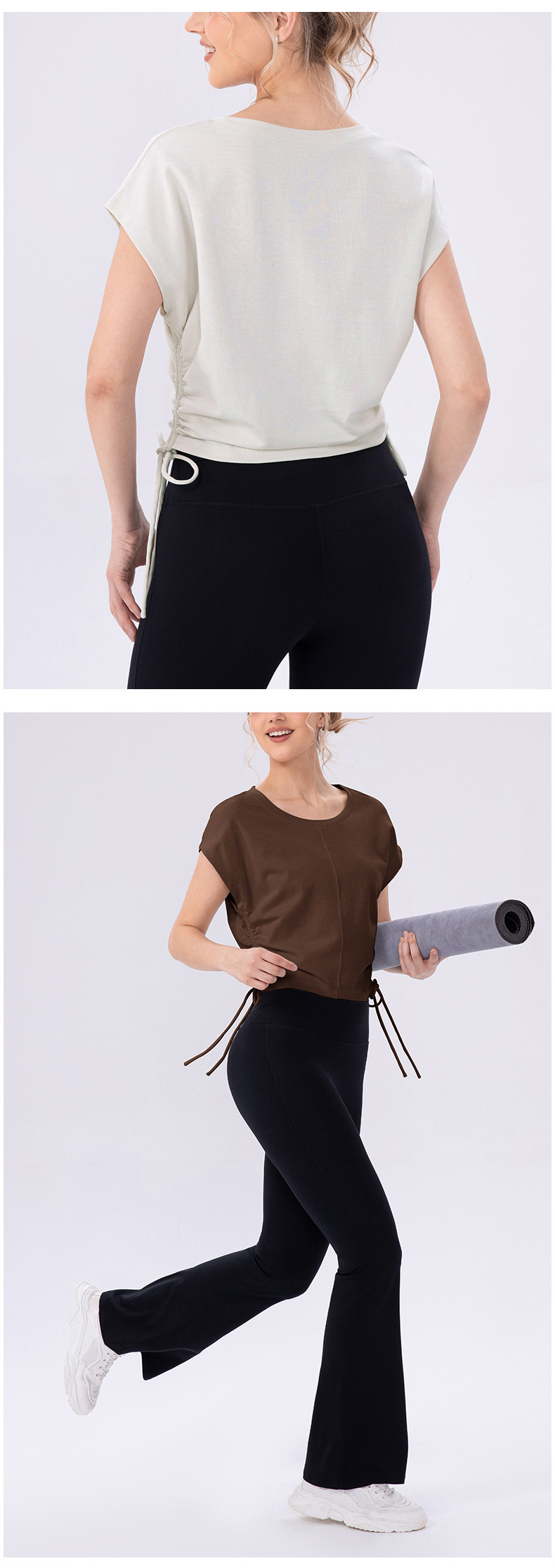 跃牌【欲动春风】系列 新款瑜伽服上衣女侧腰收褶显瘦圆领运动短袖户外健身休闲t恤52254