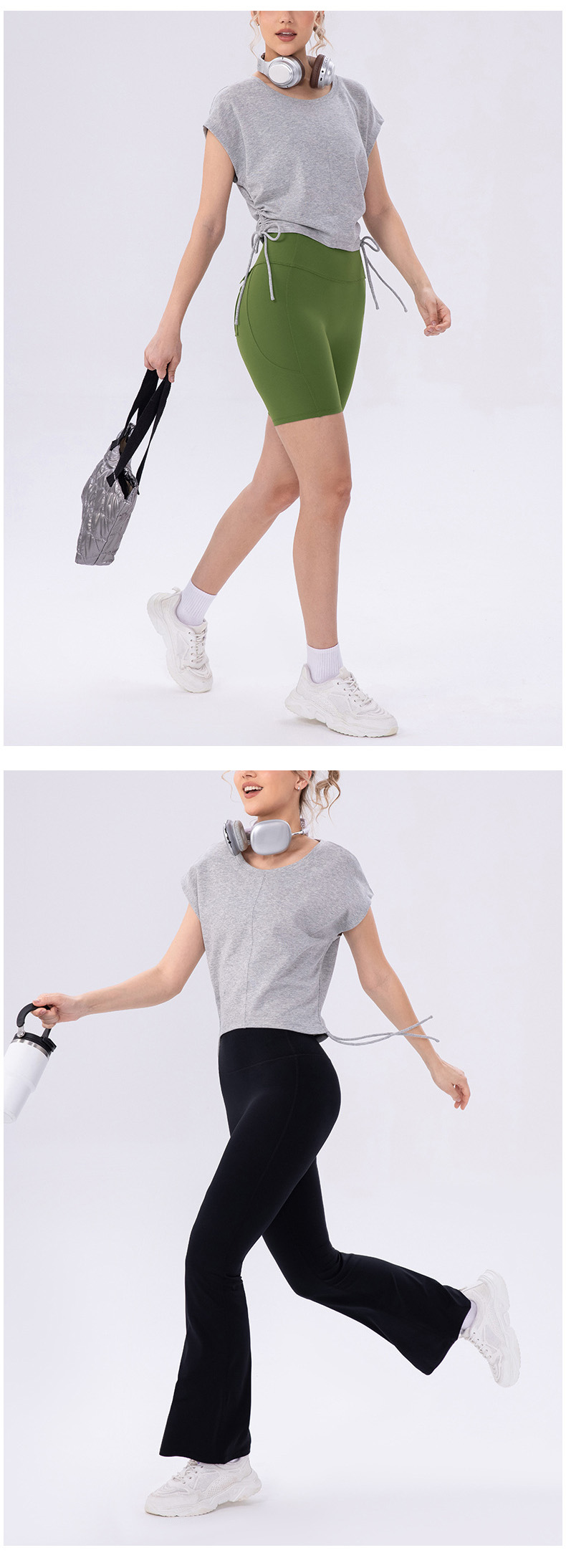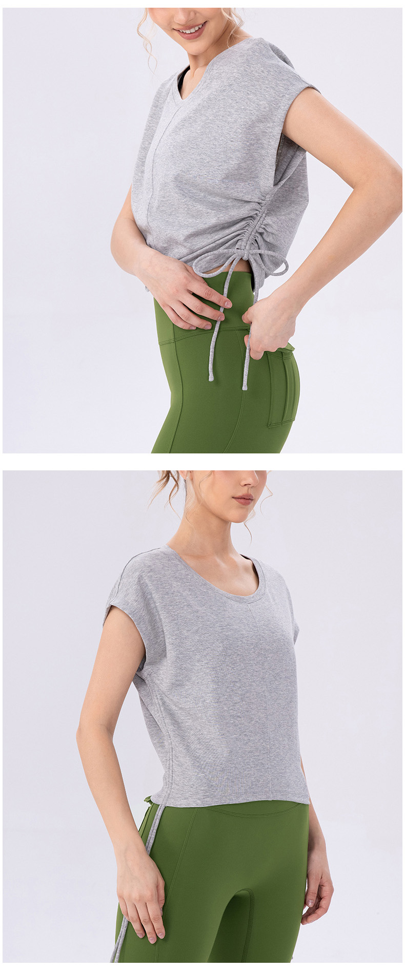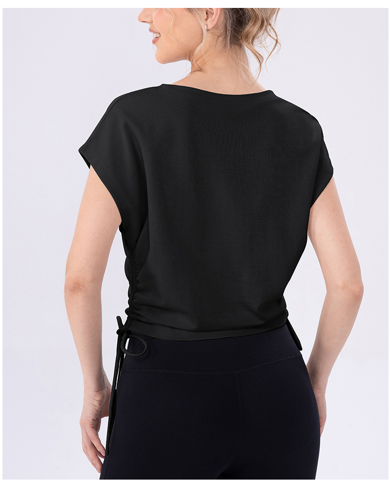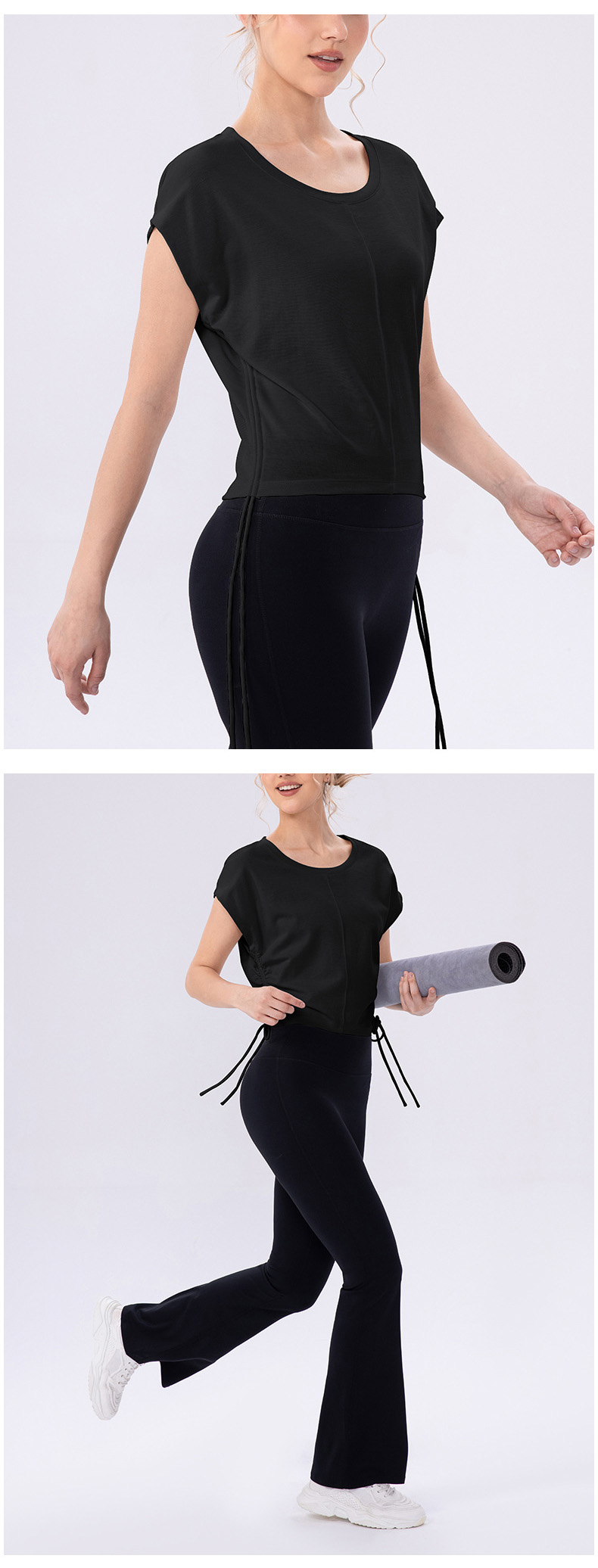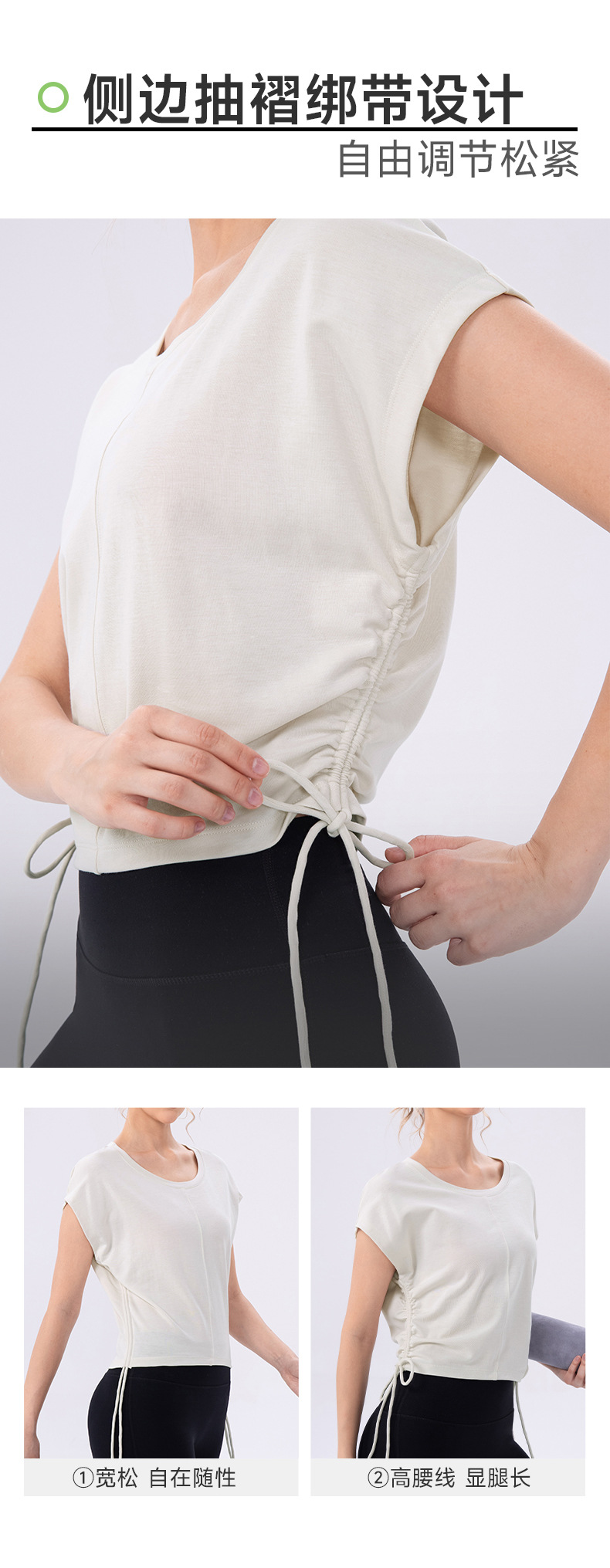 跃牌【欲动春风】系列 新款瑜伽服上衣女侧腰收褶显瘦圆领运动短袖户外健身休闲t恤52254