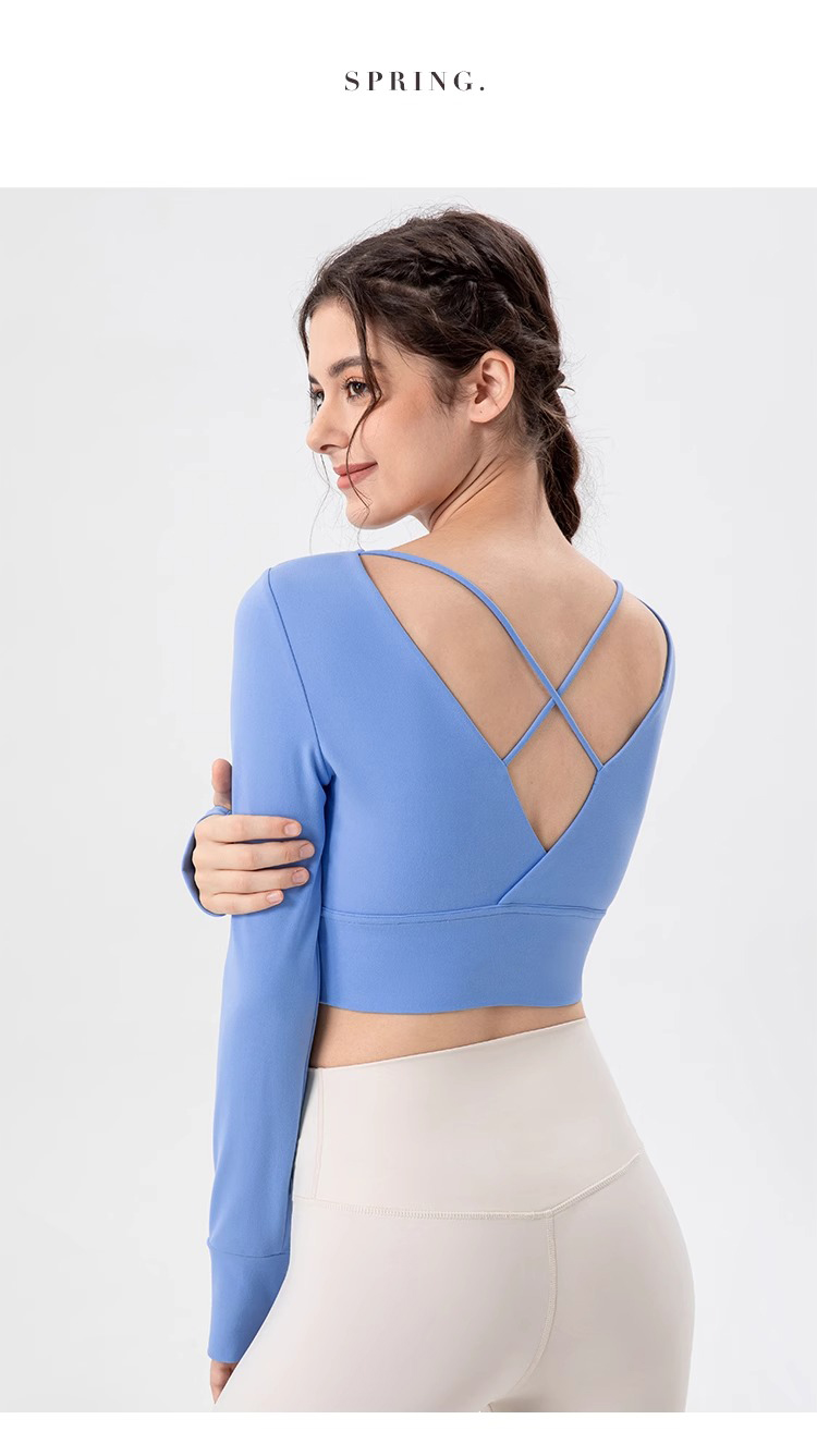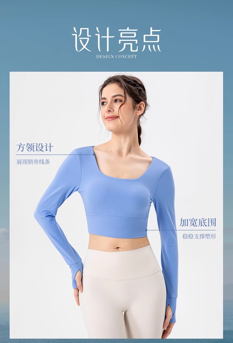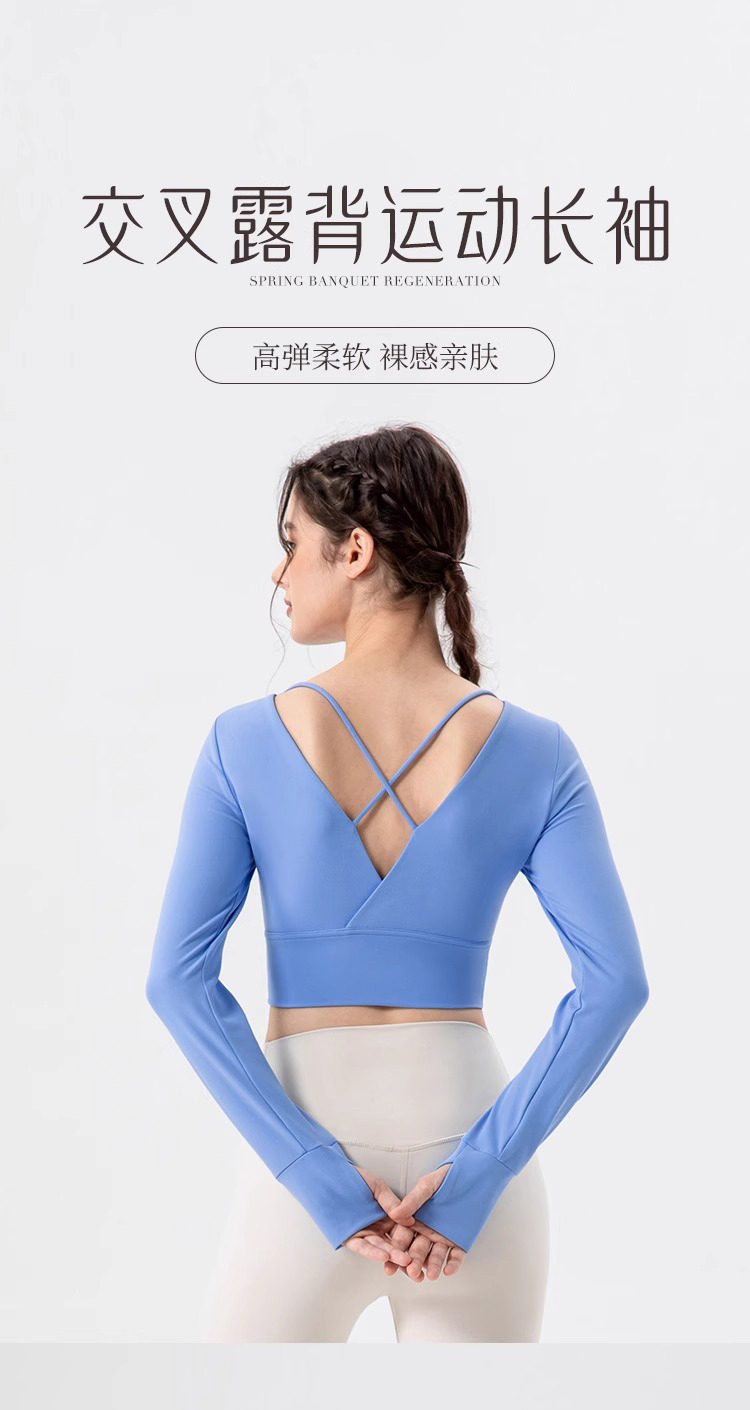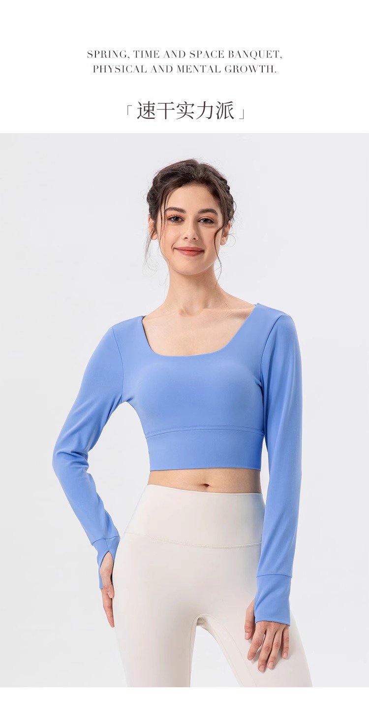 跃牌【欲动春风】系列 瑜伽服女带胸垫健身跑步上衣裸感透气运动长袖32539