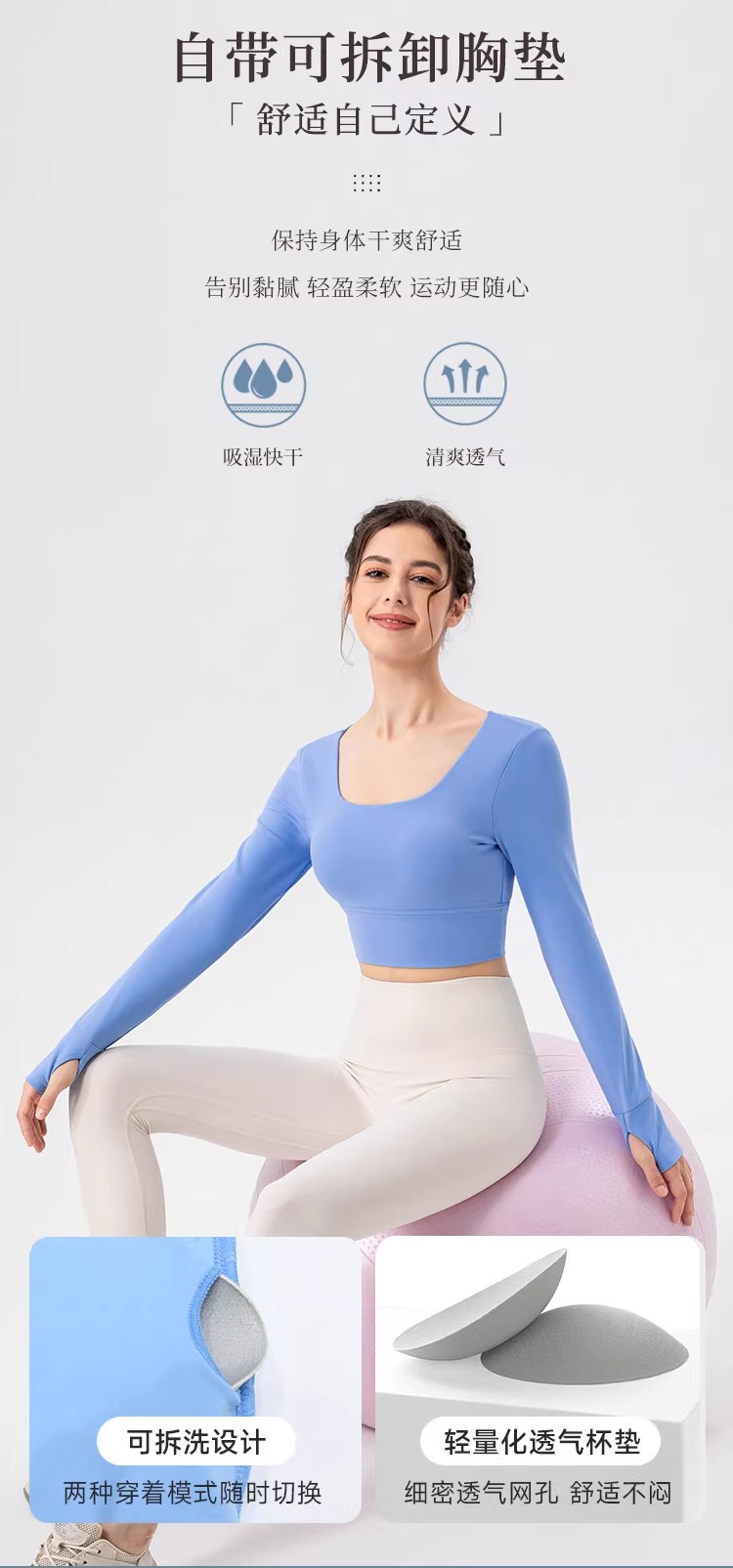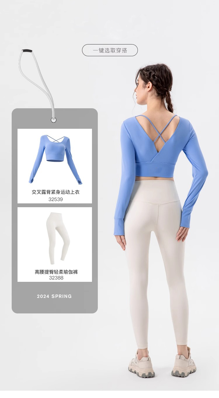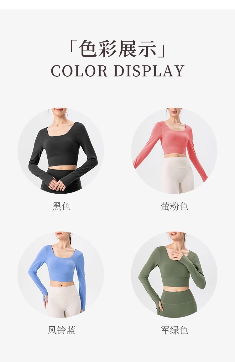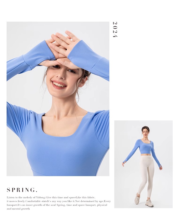 跃牌【欲动春风】系列 瑜伽服女带胸垫健身跑步上衣裸感透气运动长袖32539