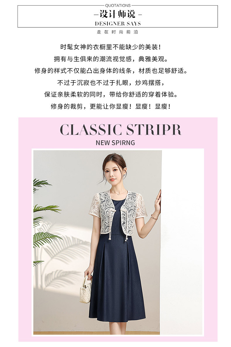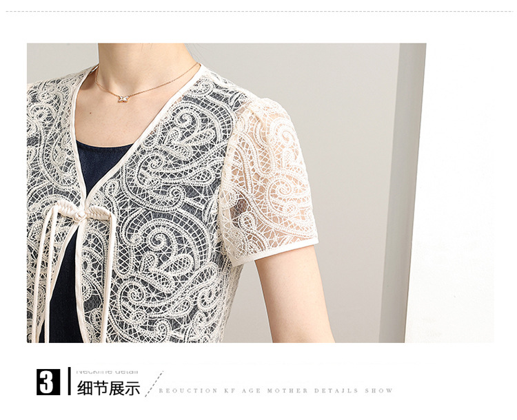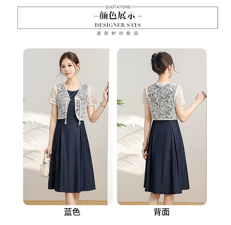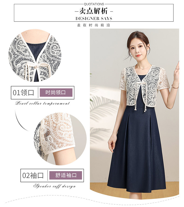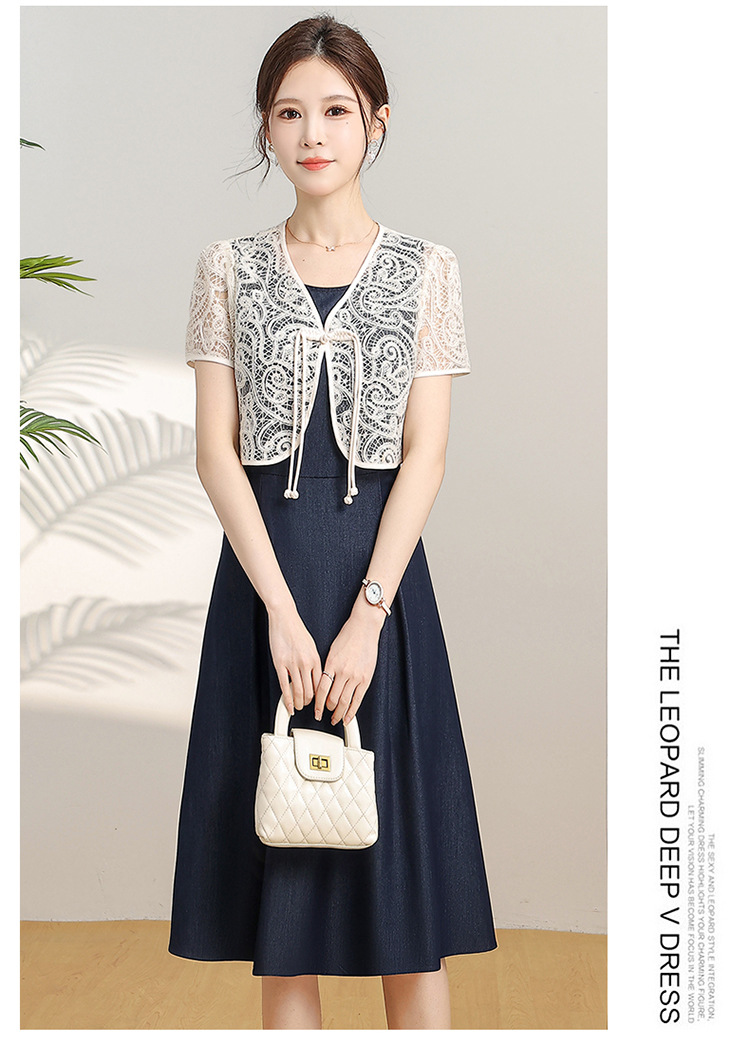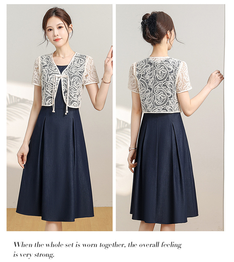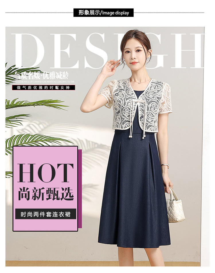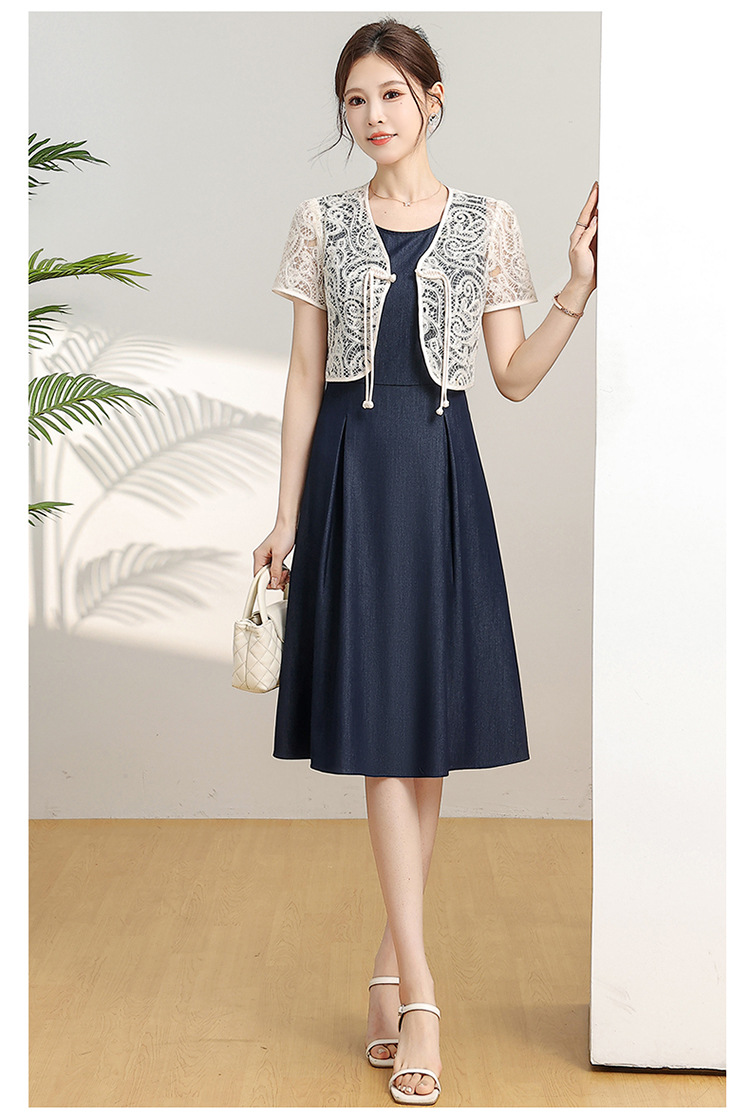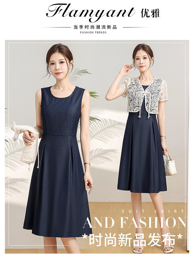 优雅新中式,无袖打底中长裙+网纱蕾丝外披两件套QYM-XY-24DB35-Y