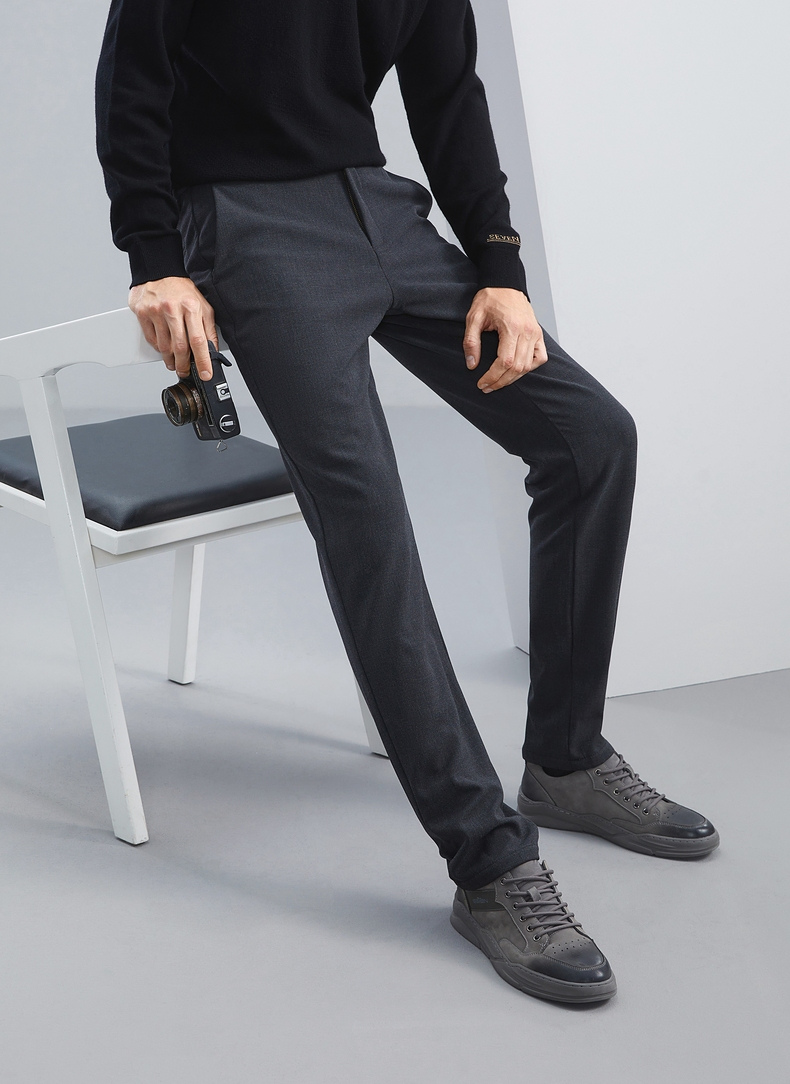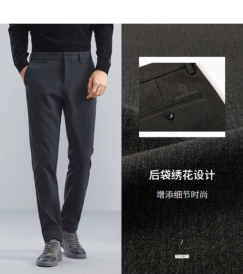 柒牌男装休闲裤商务通勤刺绣冬季加绒厚款梭织长裤直筒便装男裤子 125H70400